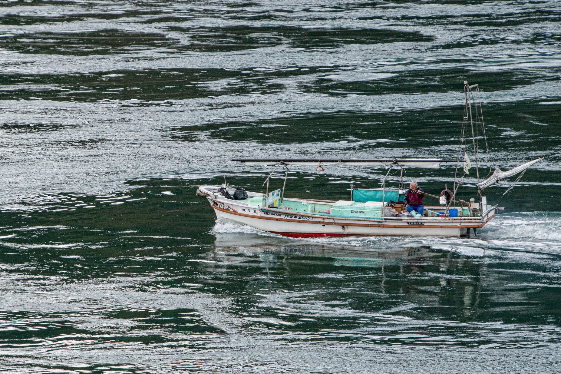 船に自転車を積み込んで、Y氏と自分、船長のK部長、船の離発着を手伝ってくれるKさんとS嬢の5人でクルージングの始まり。