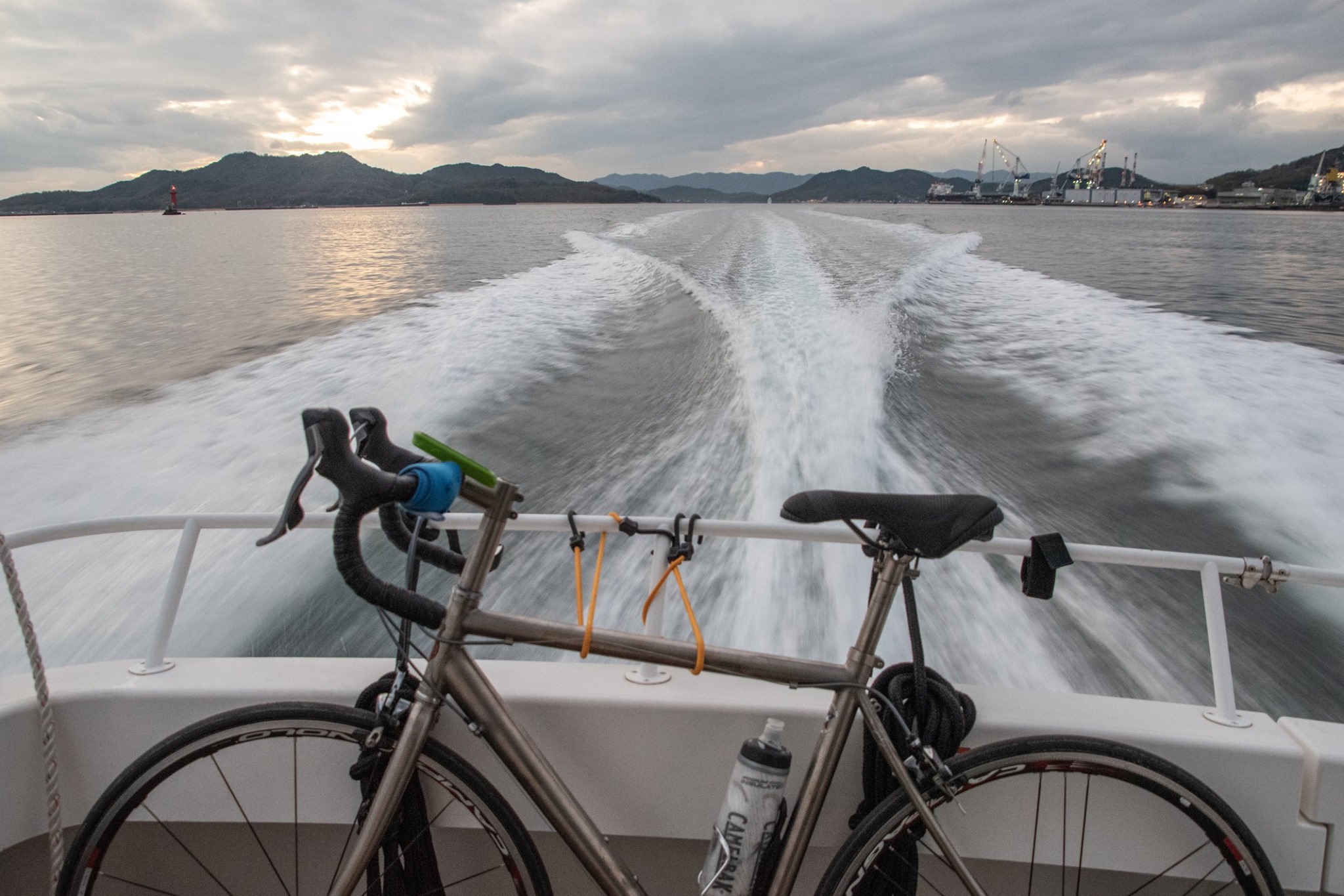 正月休暇に自転車を抱えて瀬戸内アイランドホッピングをしようと目論んでいたところ、バルコム広島へ転職したばかりのY氏から、チャーター船でのクルージングの提案をいただいた。