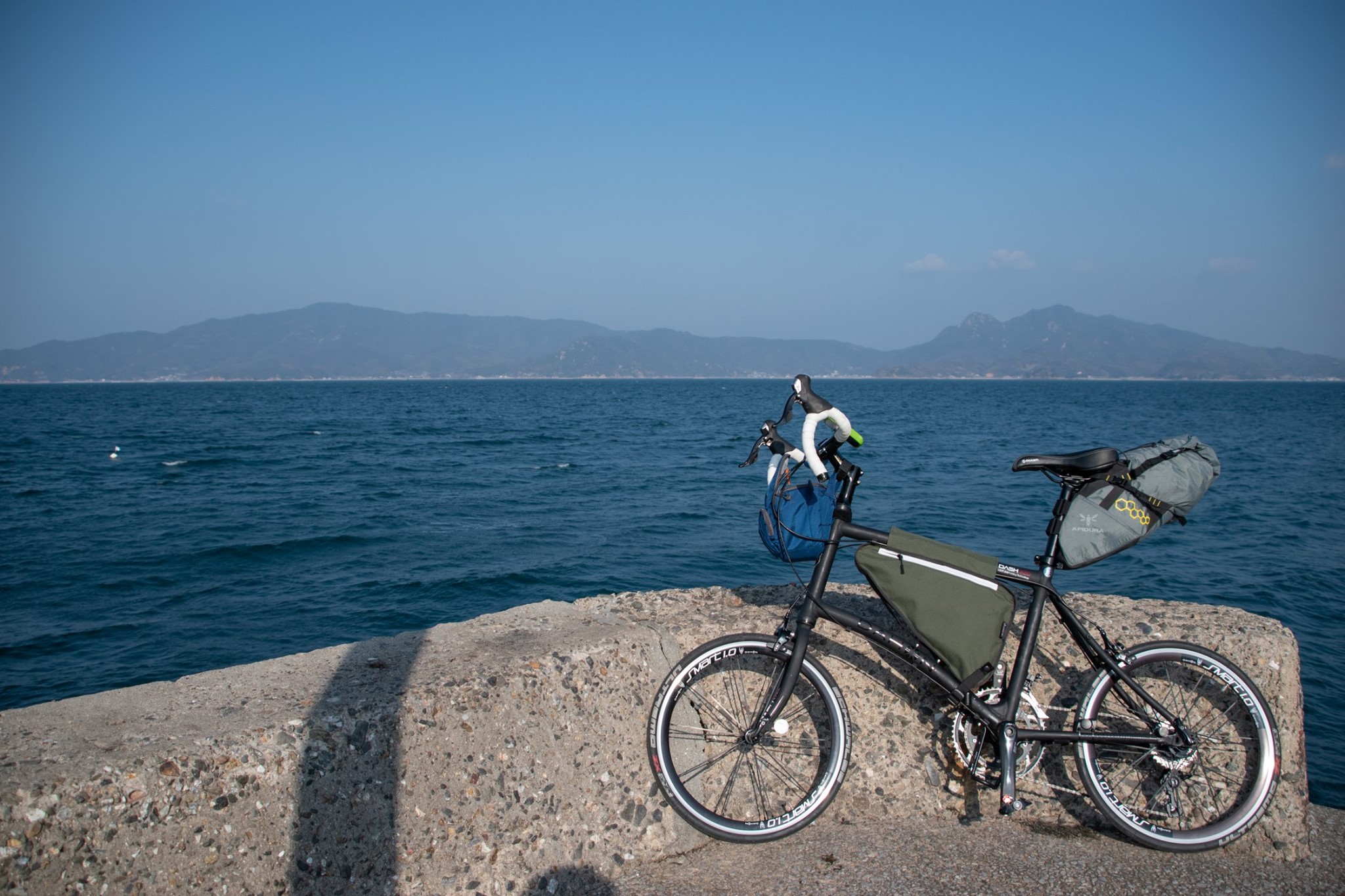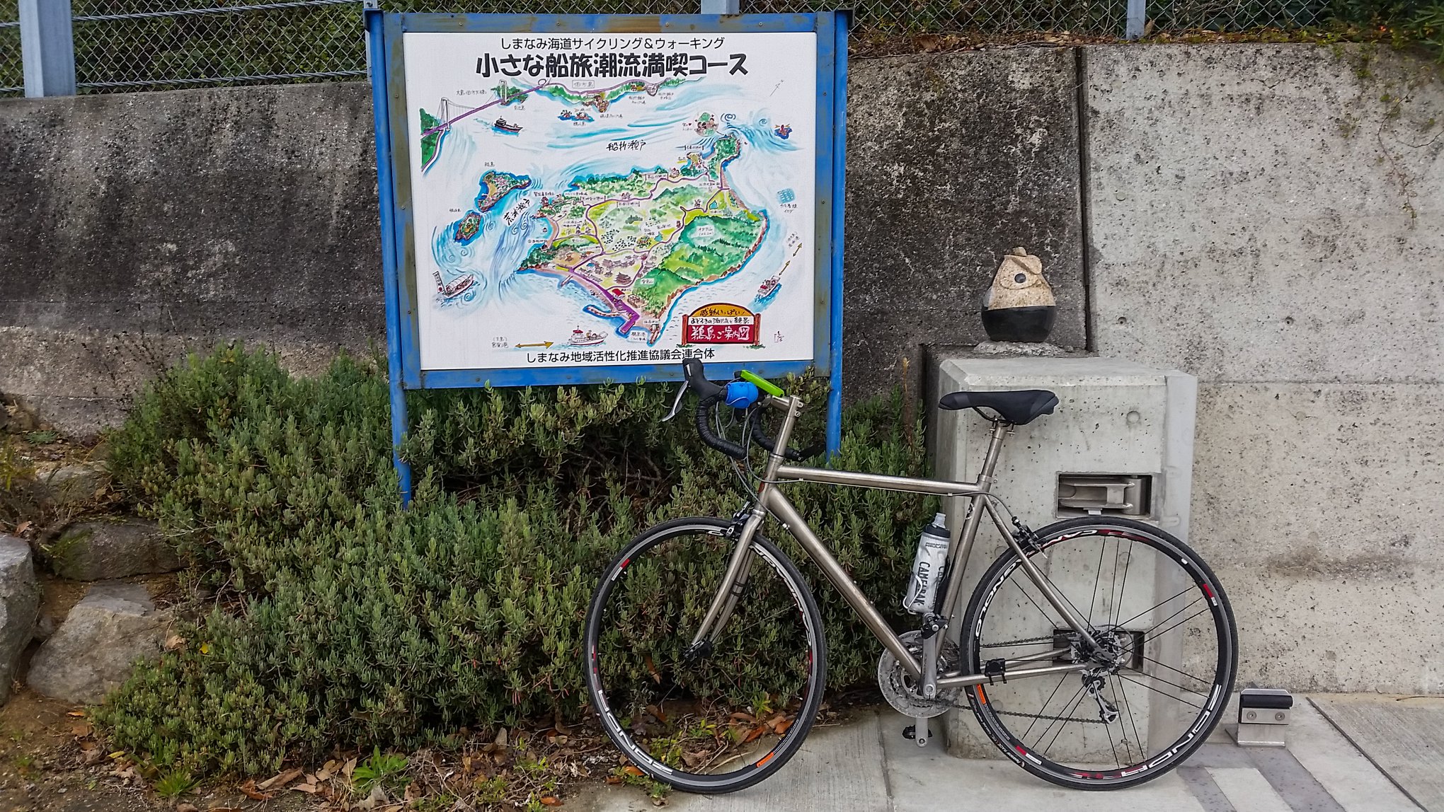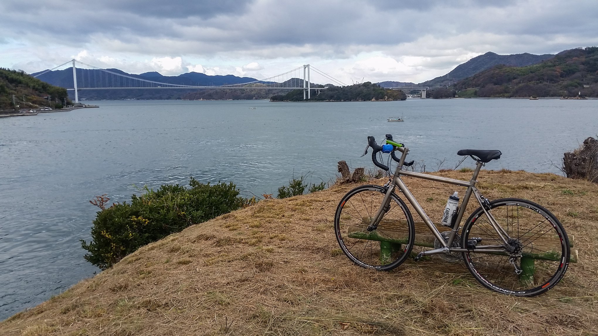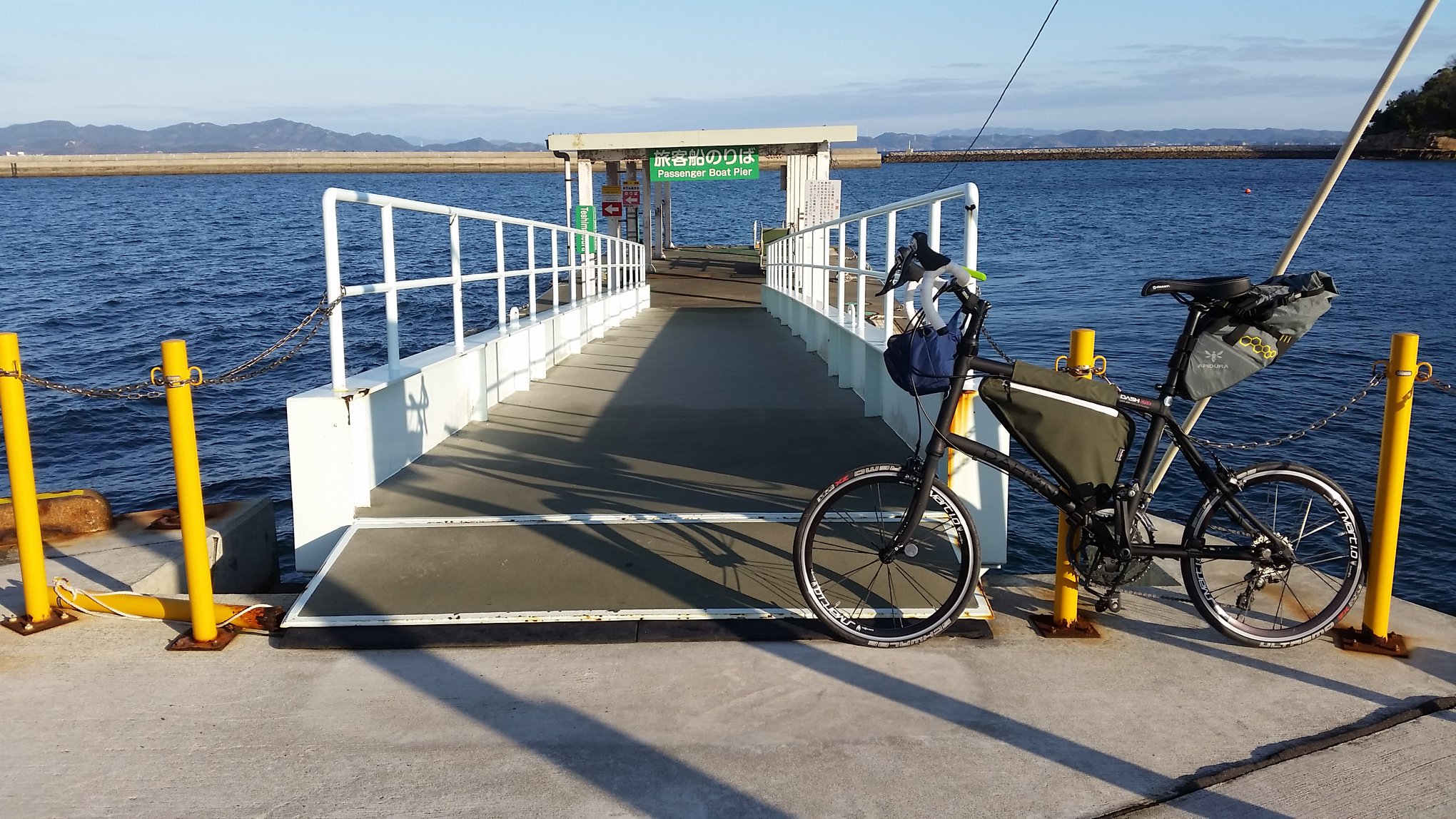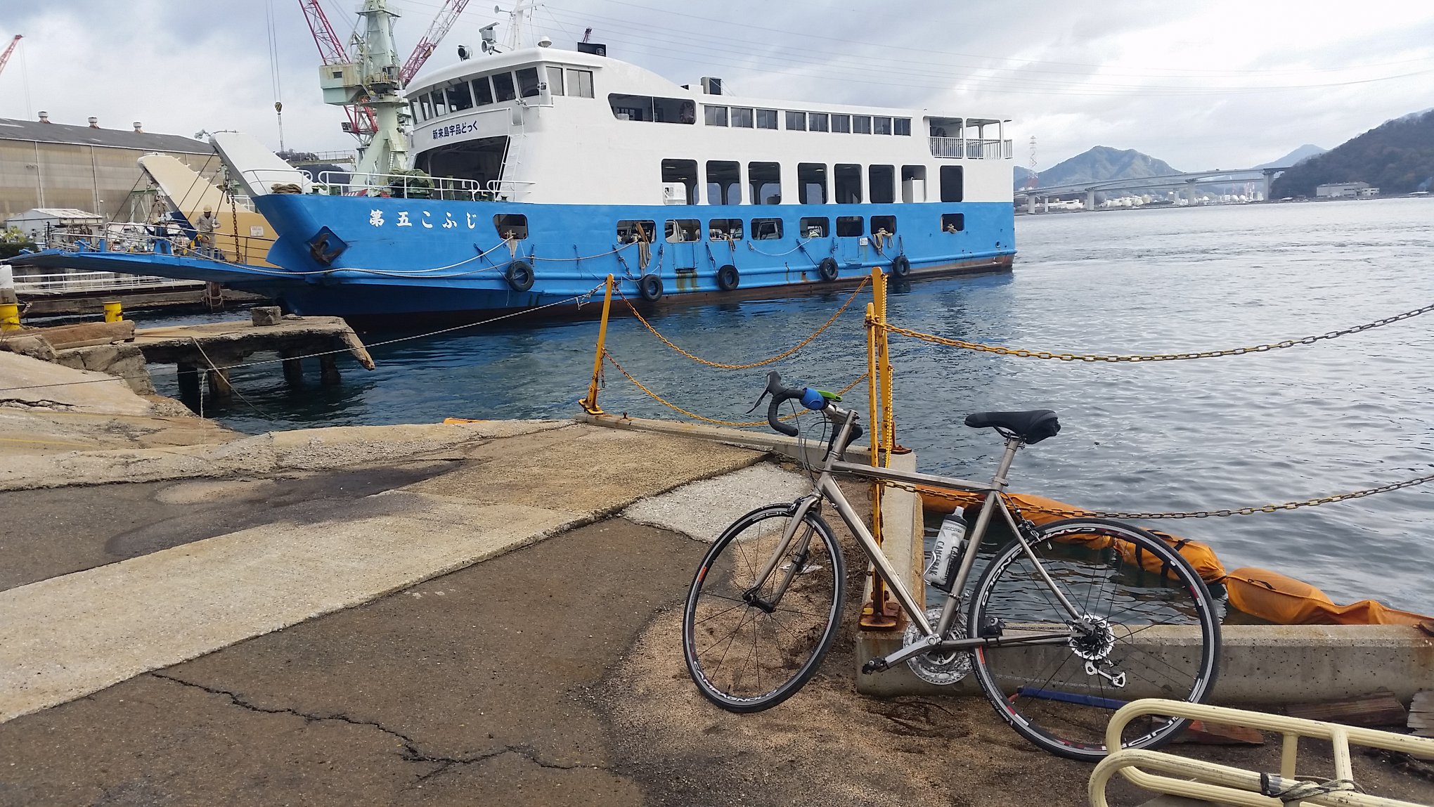 まずは山陽本線・呉線輪行にて呉まで移動。呉駅からタクシーで鹿島の行き止まりまで移動。そこで自転車を組んで鹿島、鹿老渡島、倉橋島、沖野島、江田島と走る。