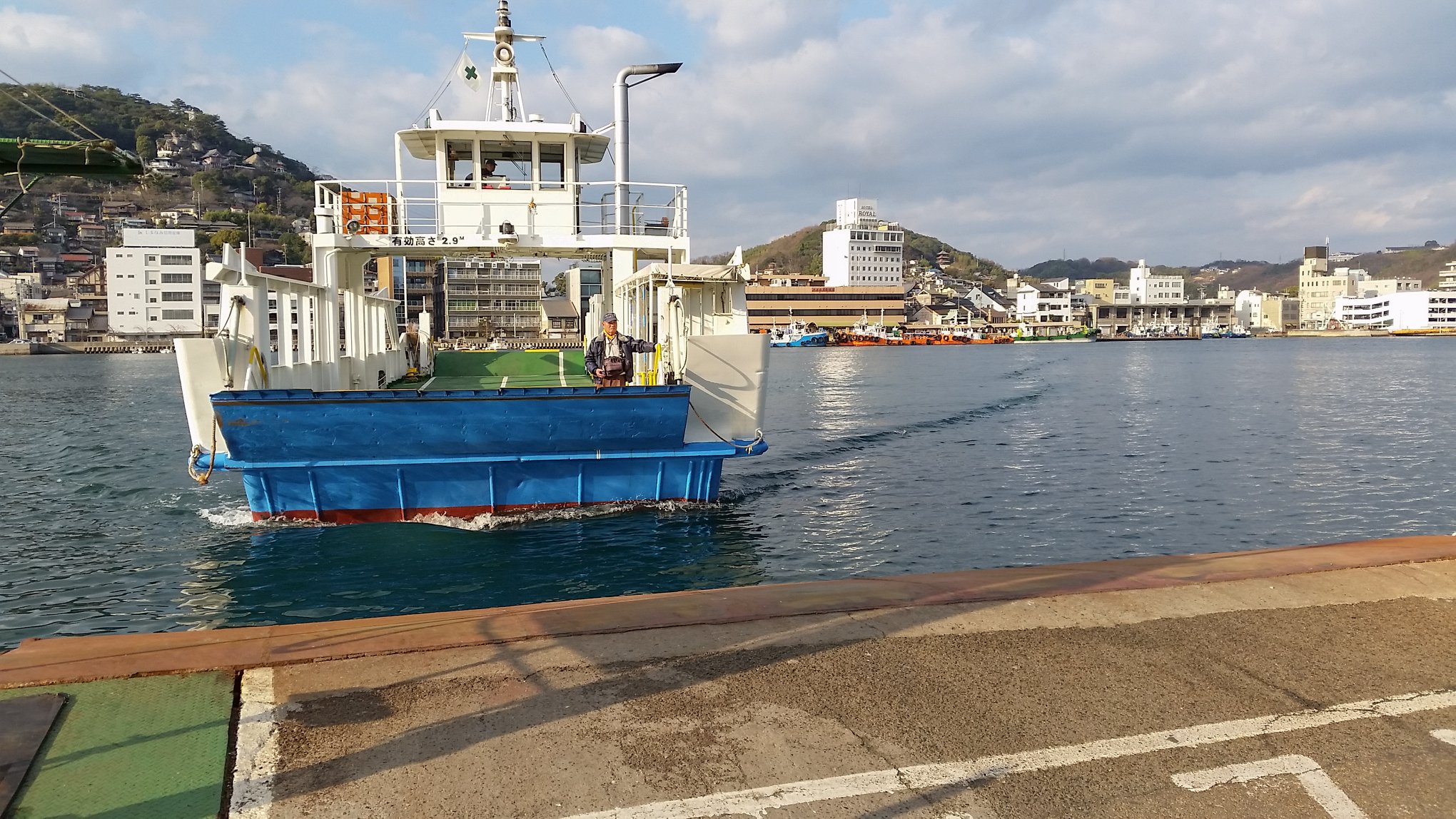 江田島の中町桟橋からフェリーに乗って、広島港(宇品)まで。