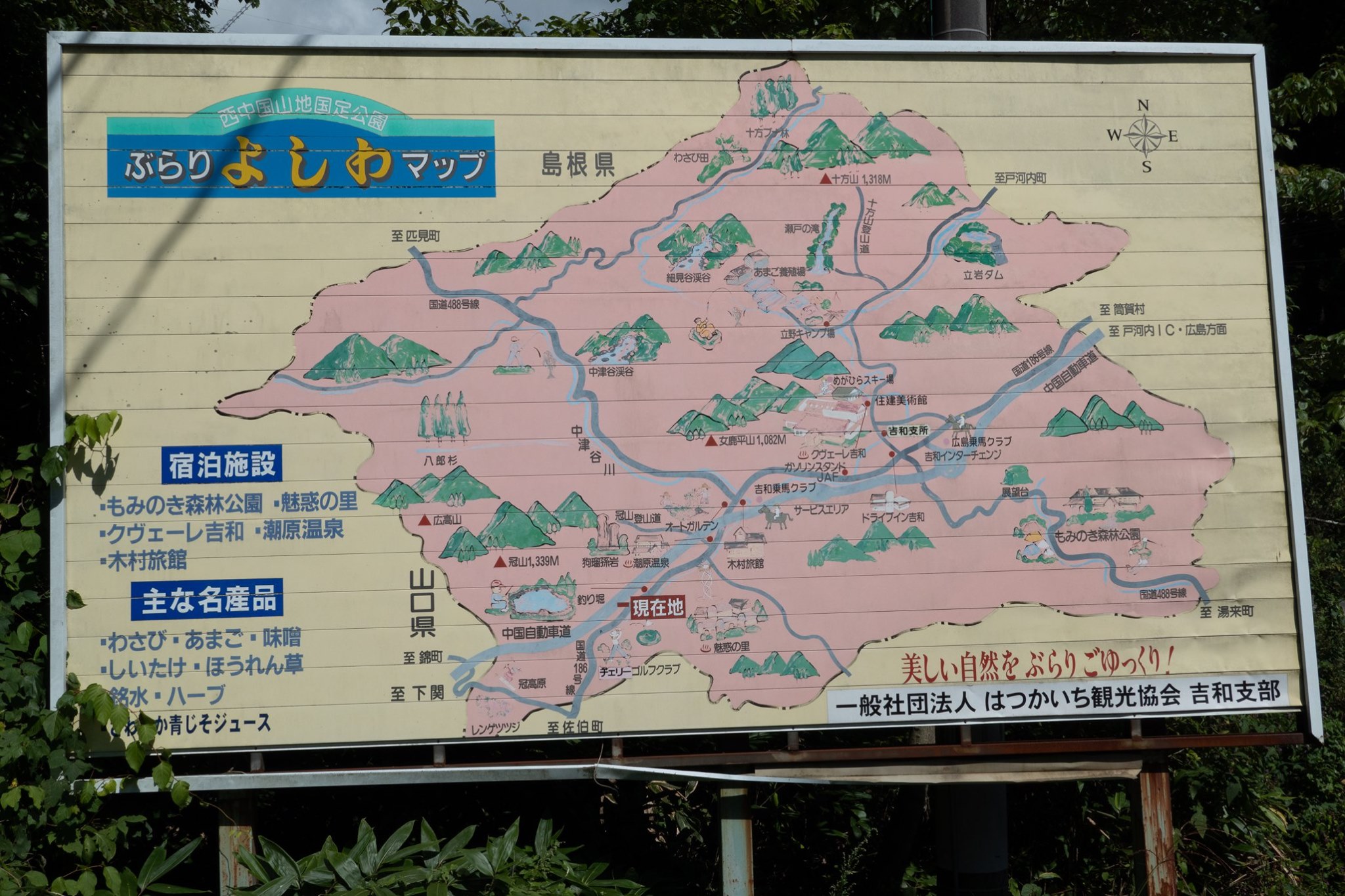 スマホのGoogleMapの交通情報と併せてみると島根県側の山沿いルートは、豪雨災害を引きずって通行止め箇所が多く、平地を迂回しないと東へ進めない。広島県側のルートを進むことにする。