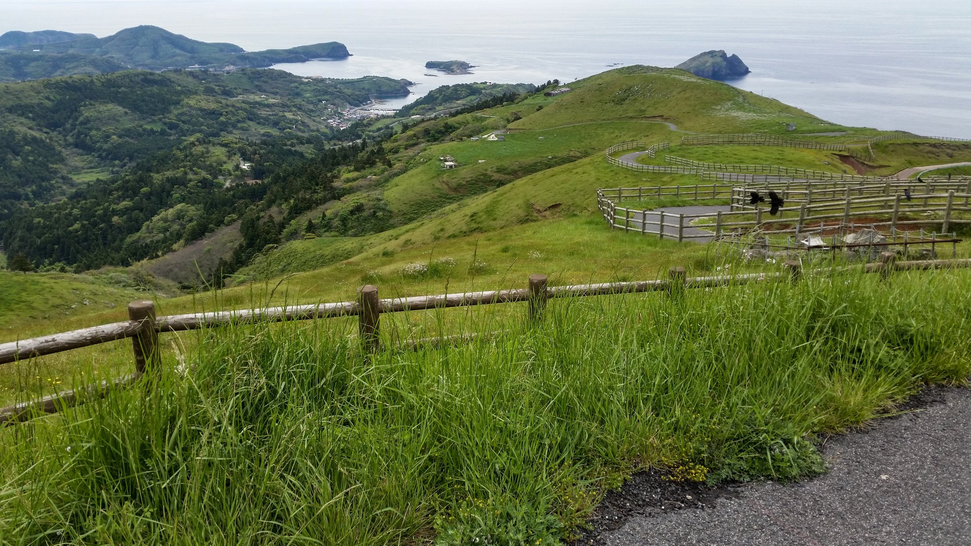 西の島へ到着後、前夜に予約しておいた「鏡谷タクシー」で鬼舞展望所まで移動。そこで自転車を組み上げ走り出す。