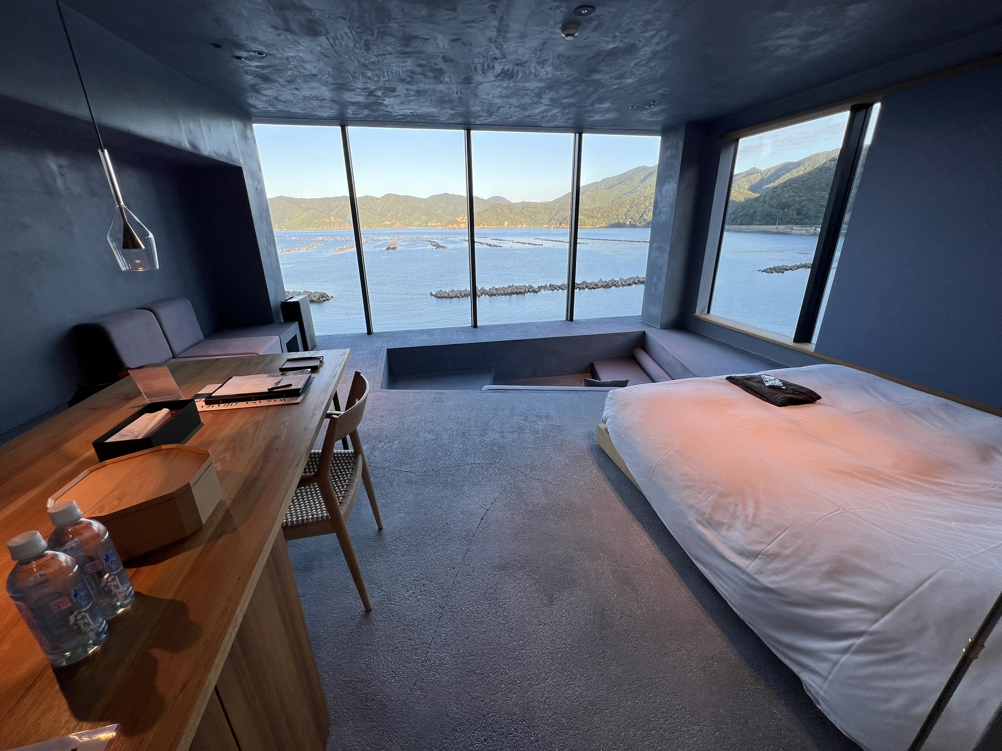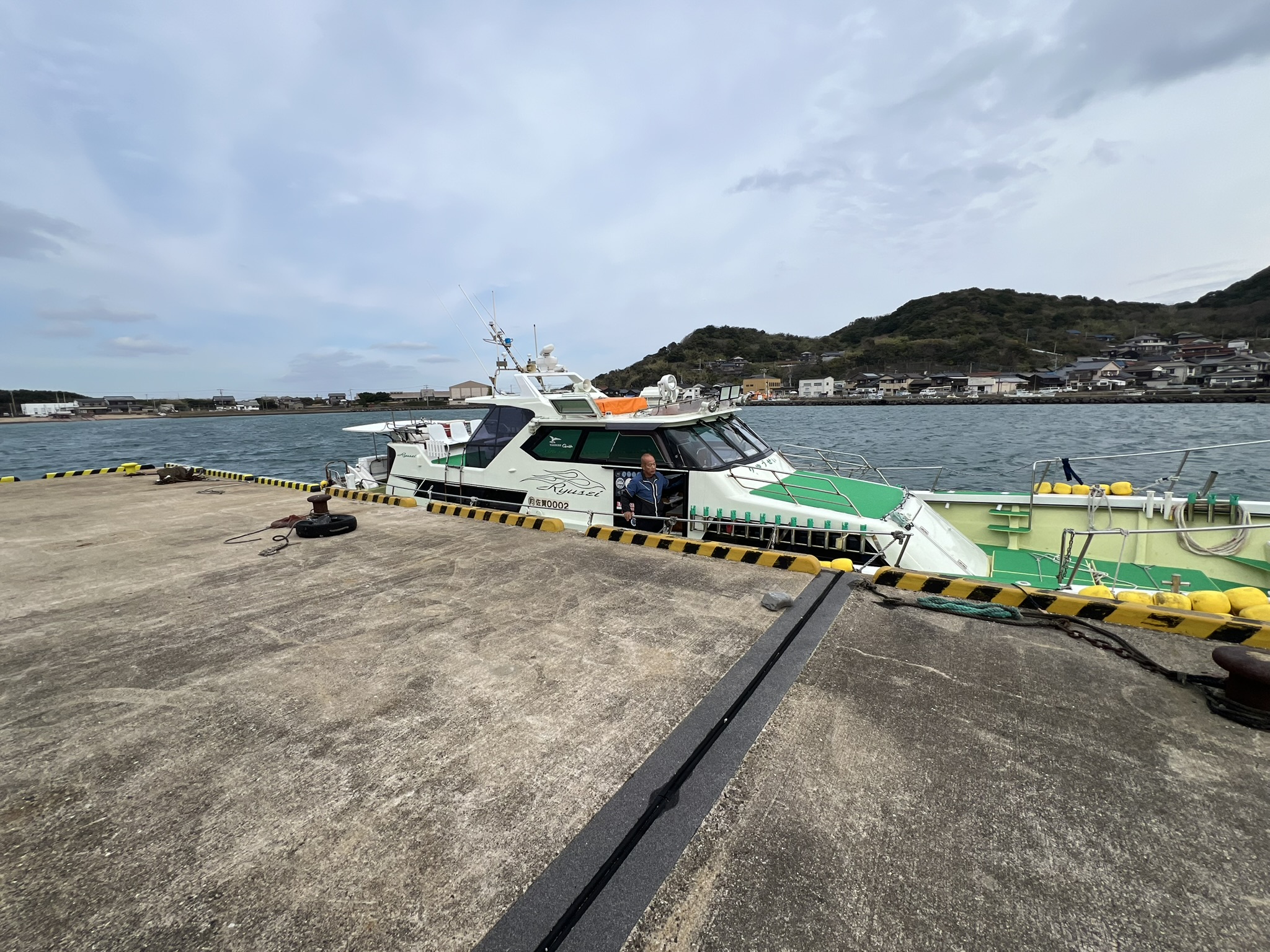 ゲストハウスが島内にあり、自家用船で送迎してくれるらしい。