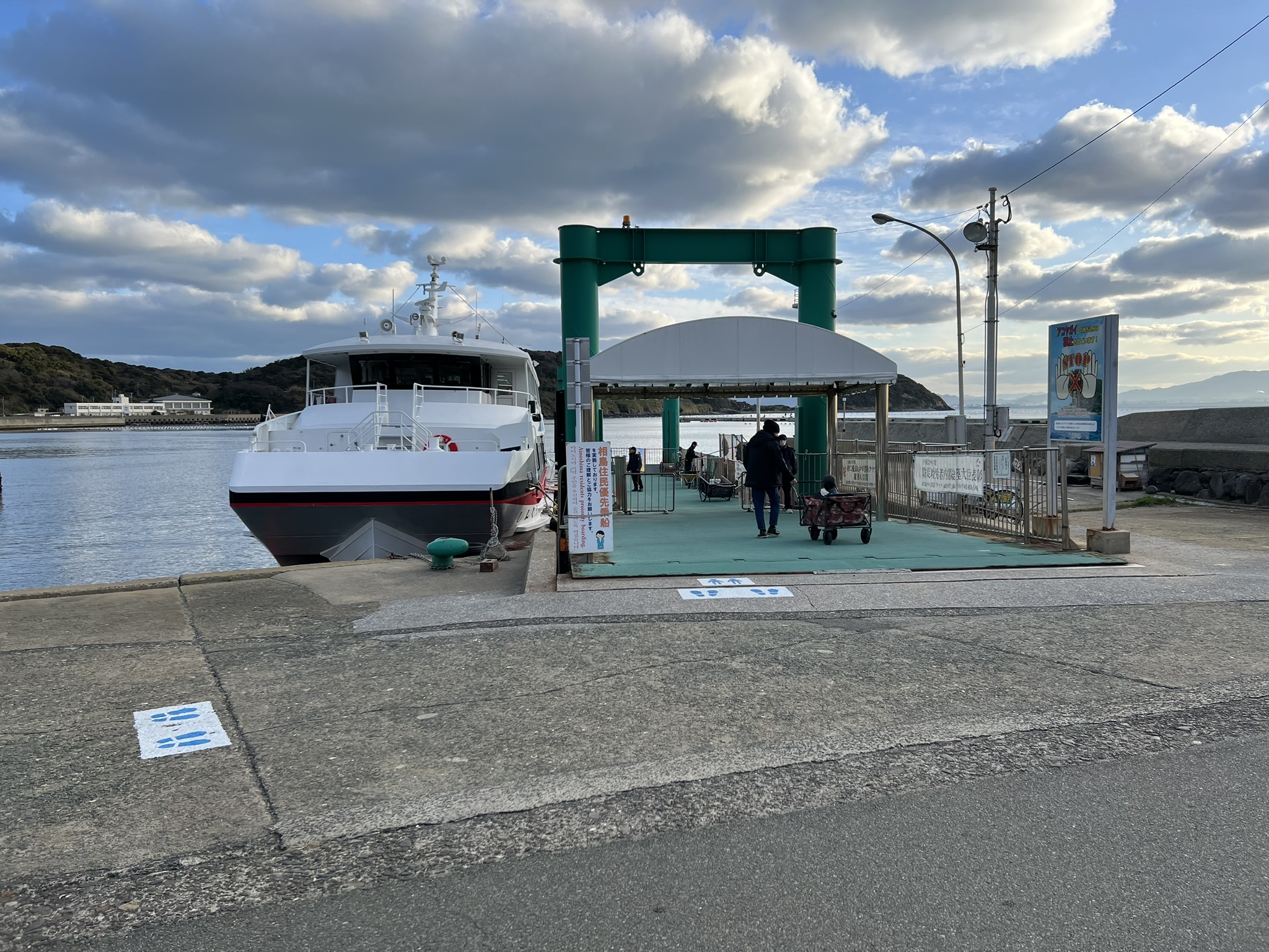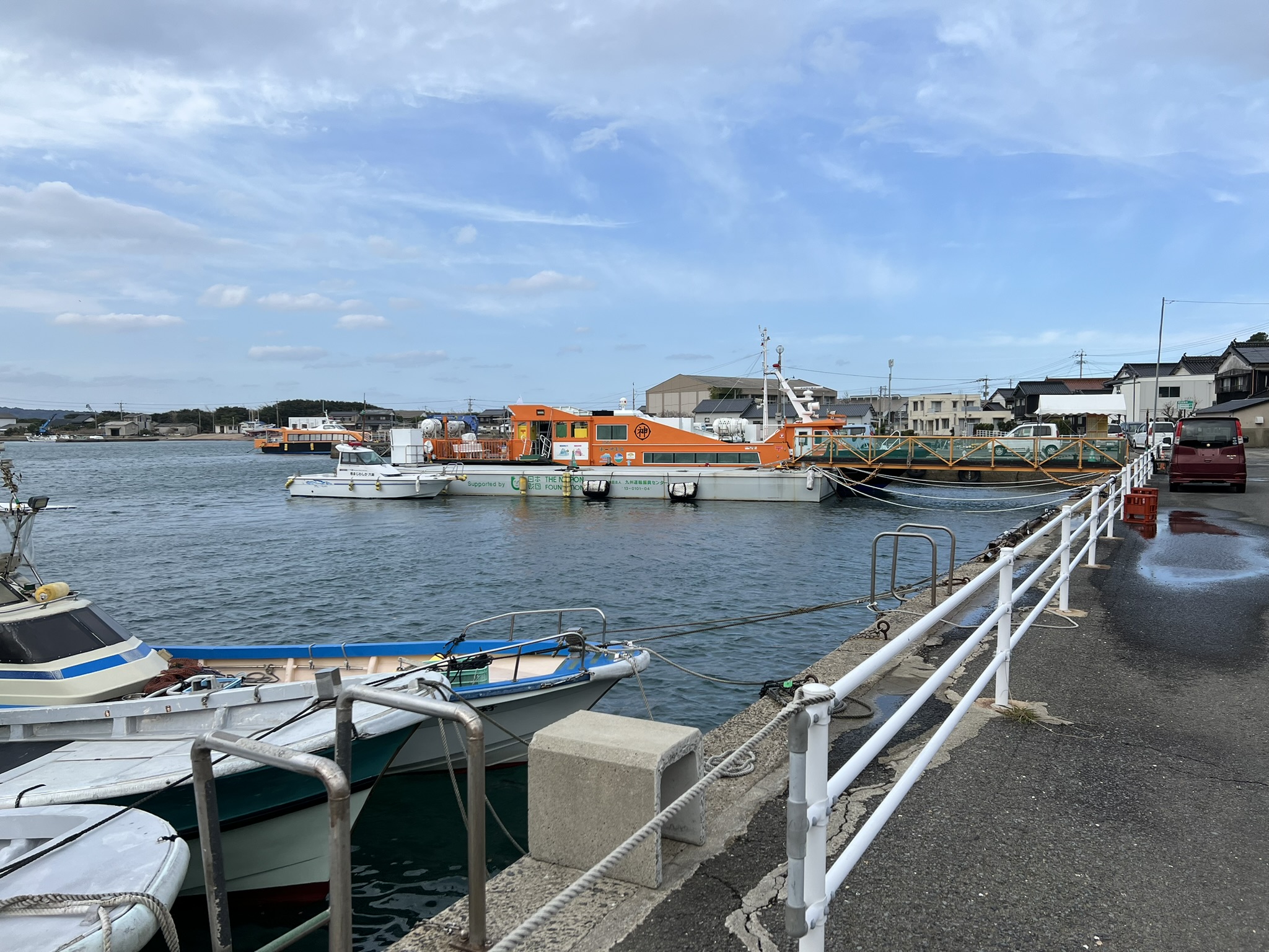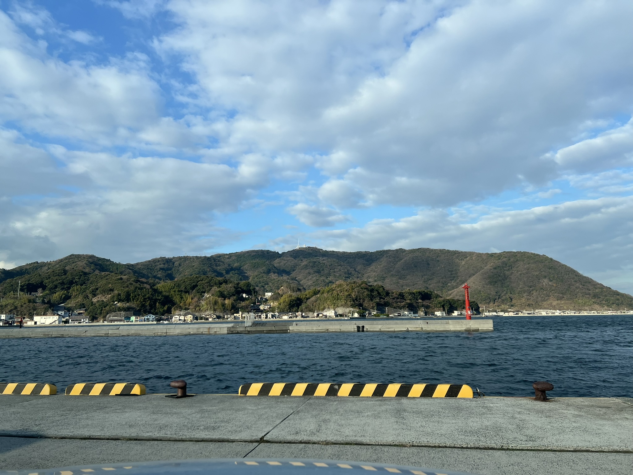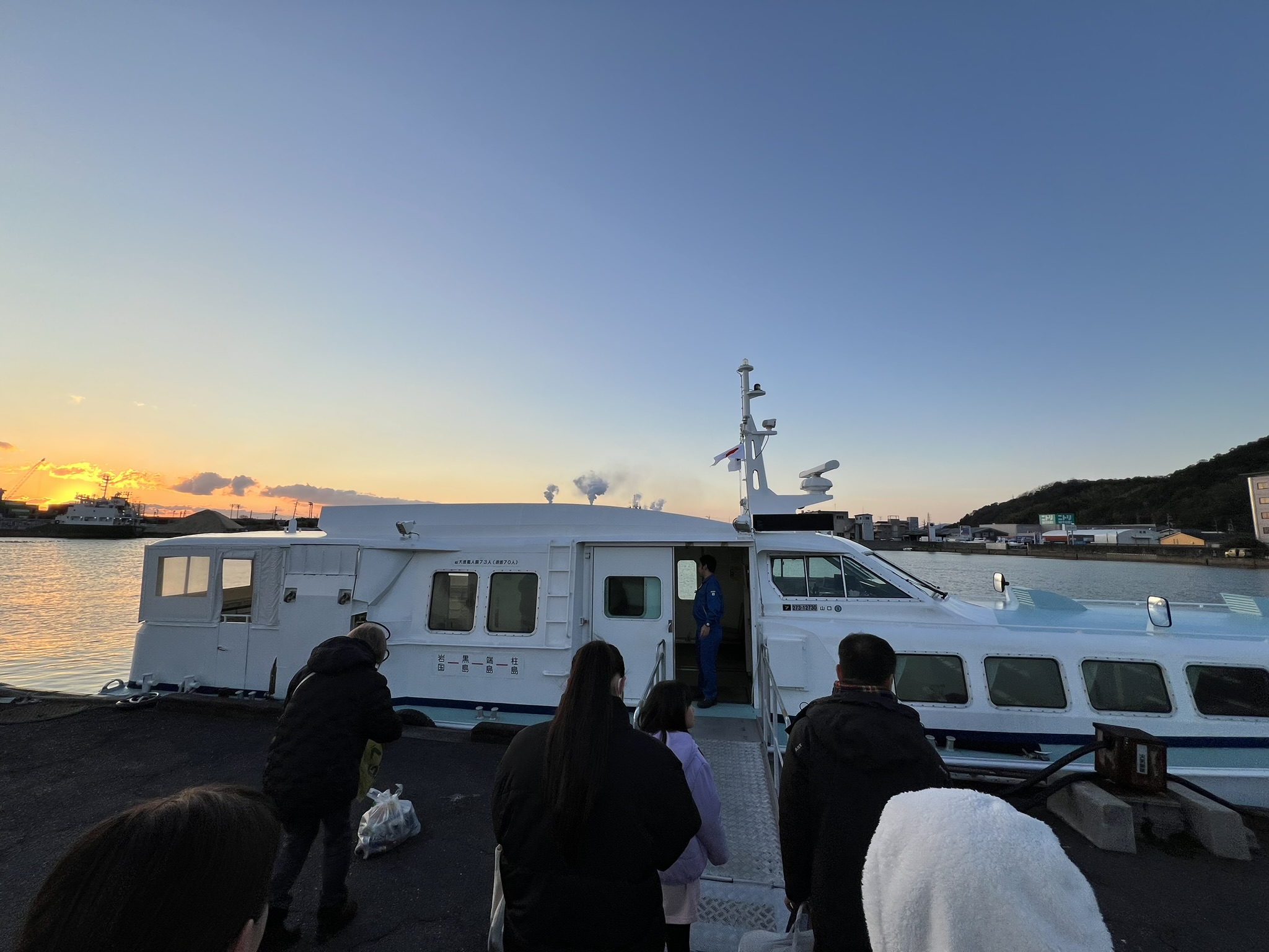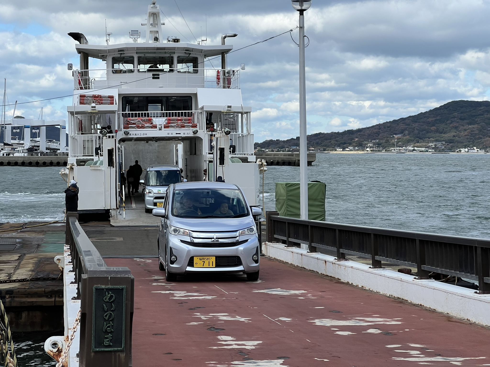 沖ノ島10:45 ー 小江10:47 の渡船で小豆島に戻る