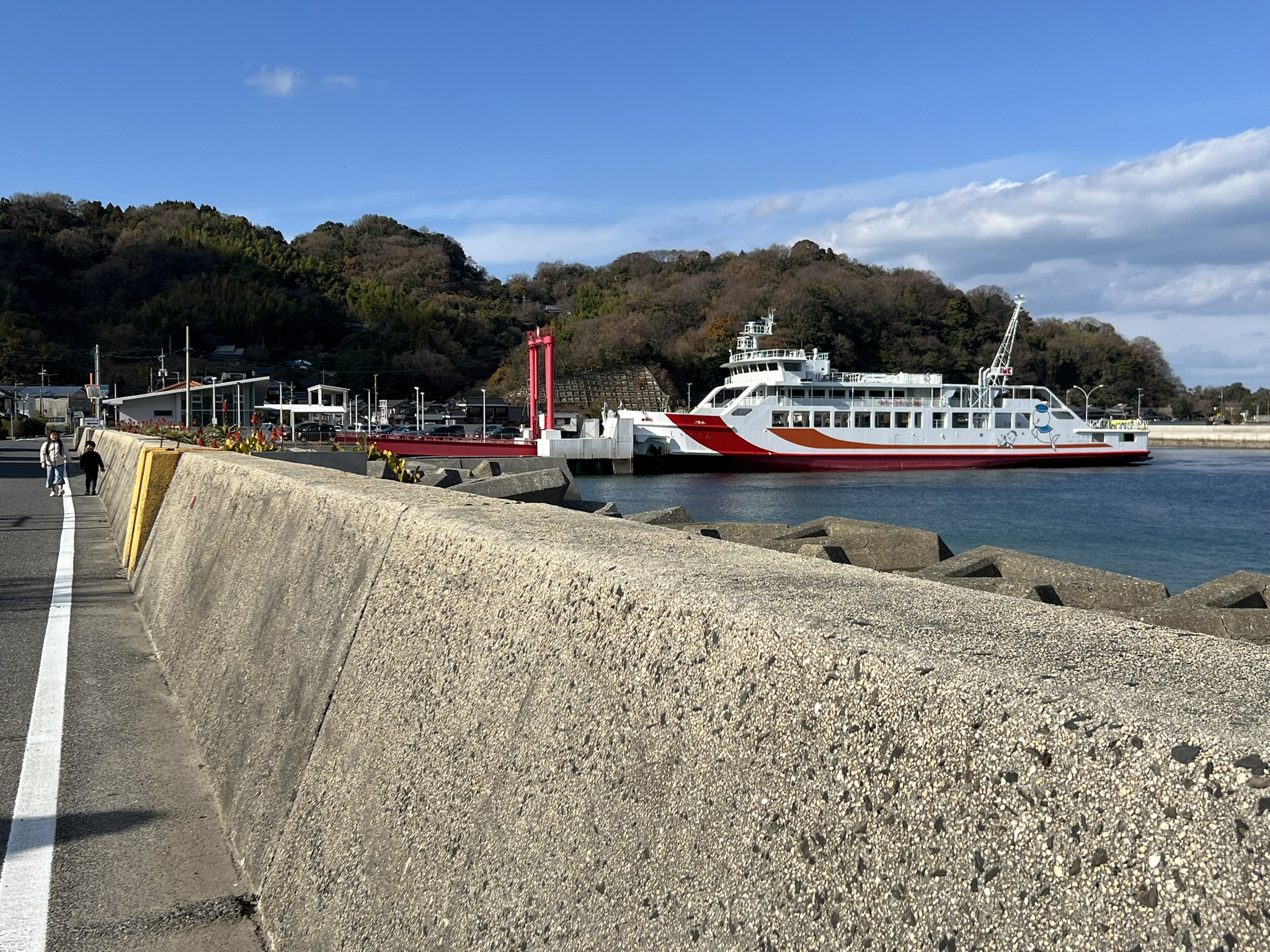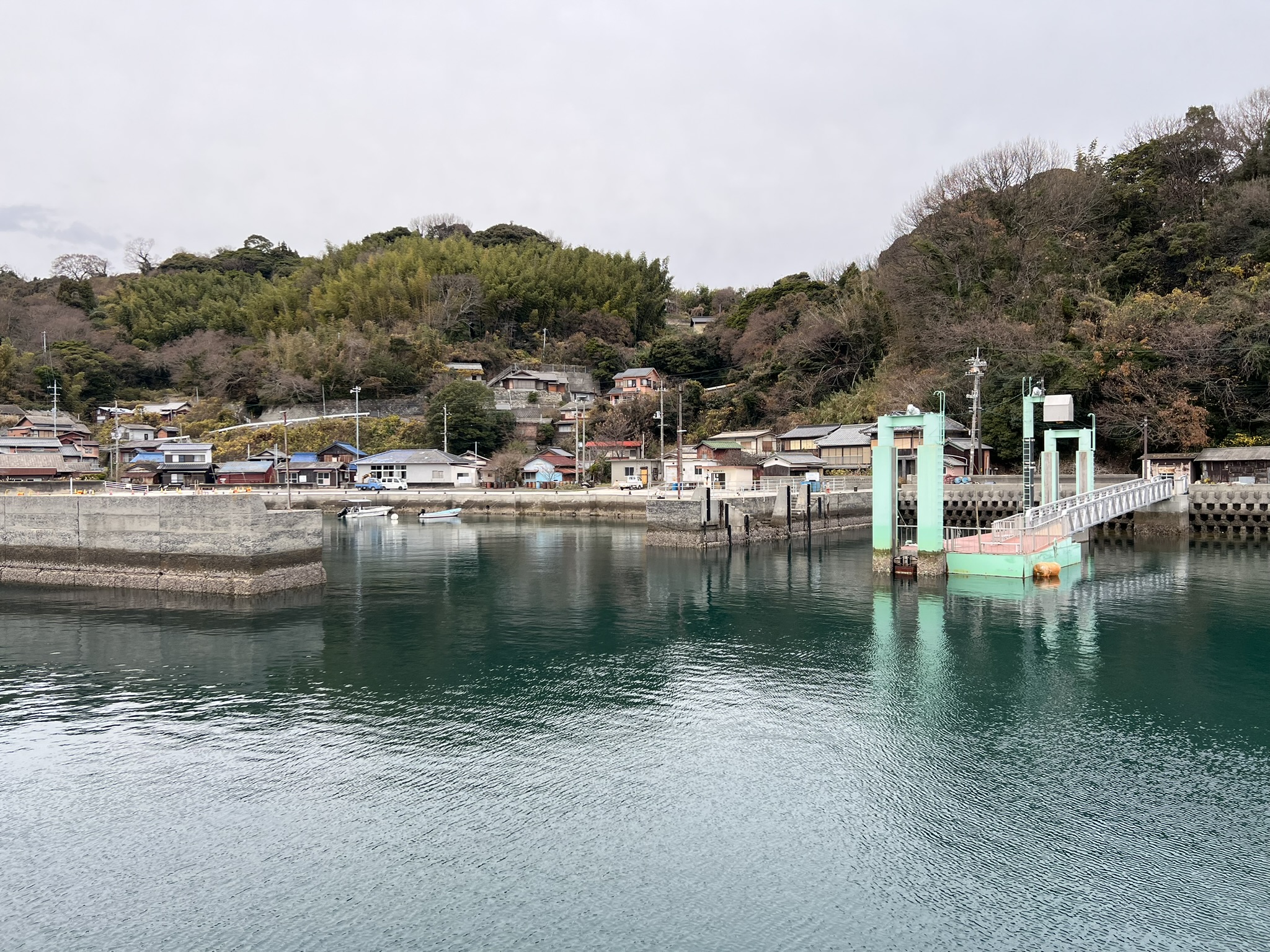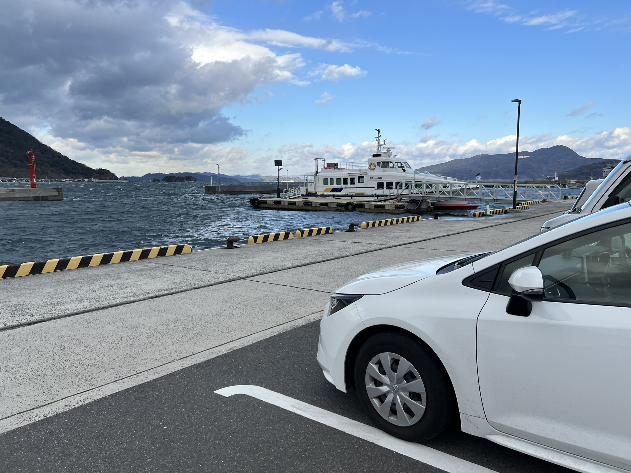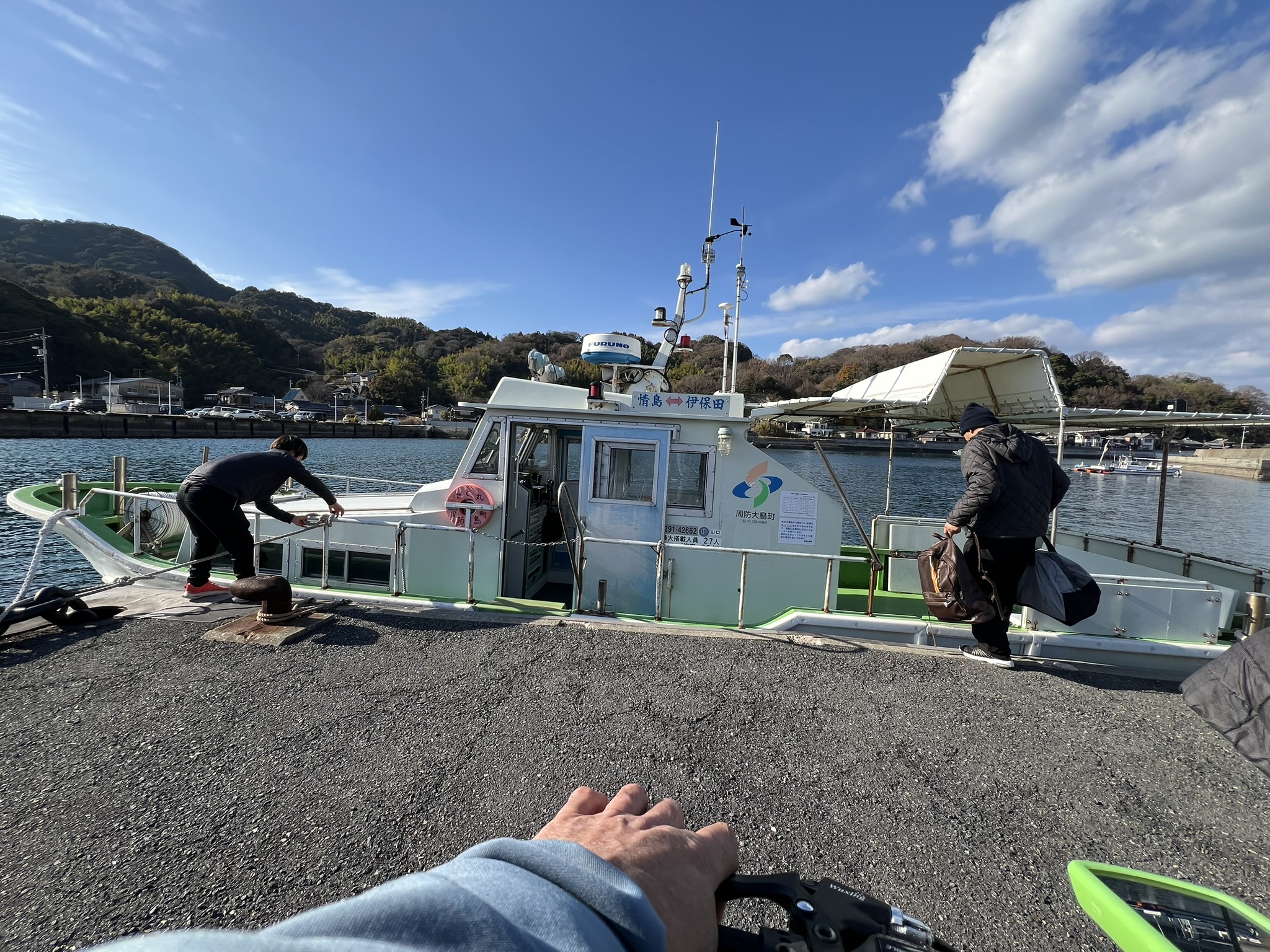 沖ノ島10:45 ー 小江10:47 の渡船で小豆島に戻る