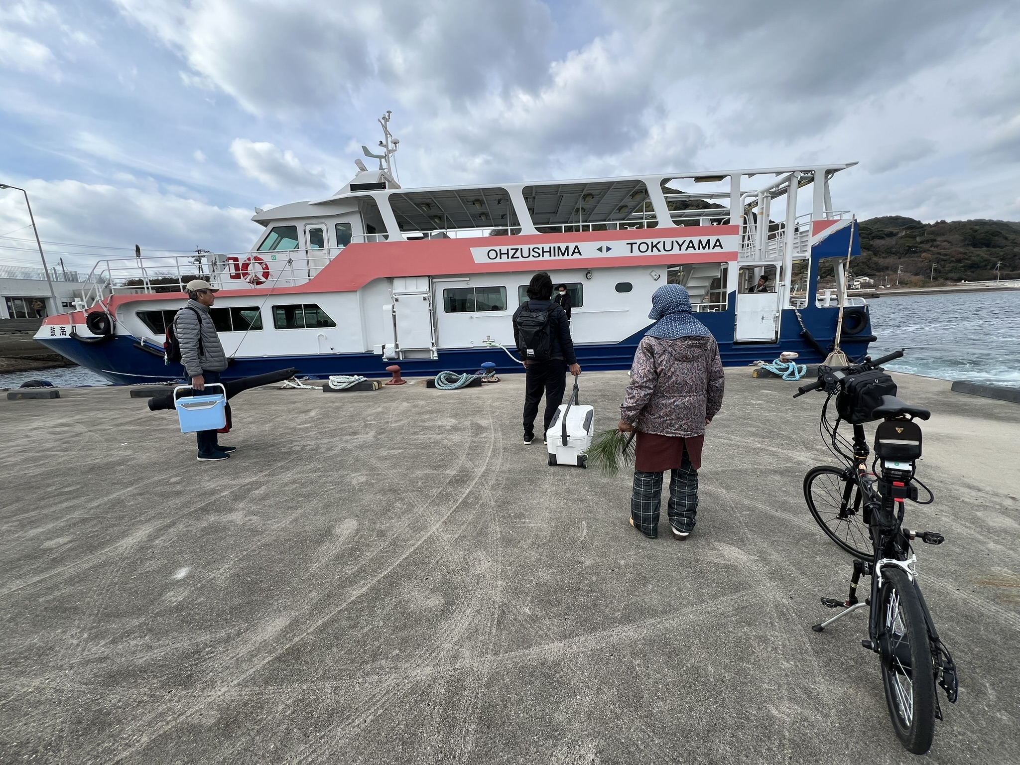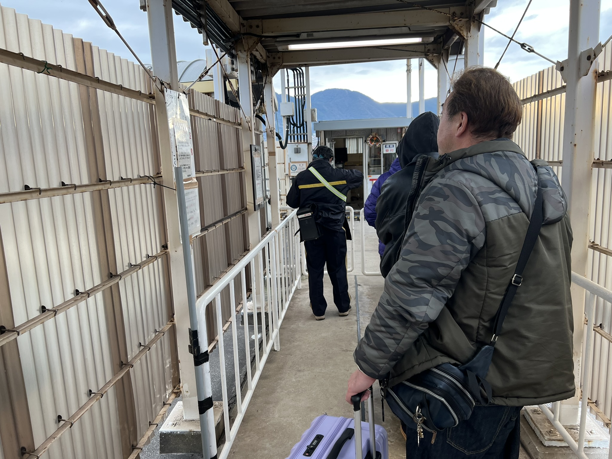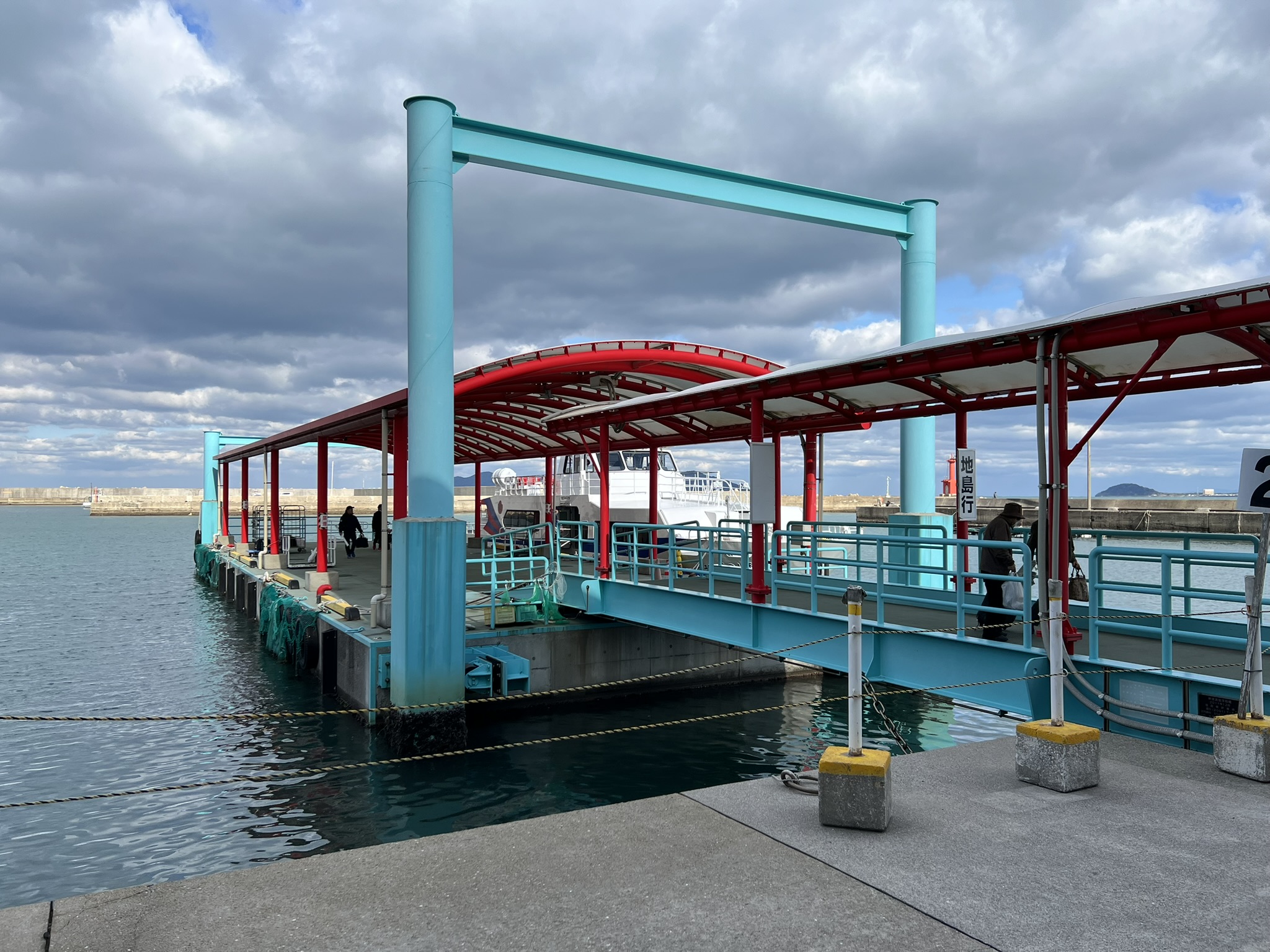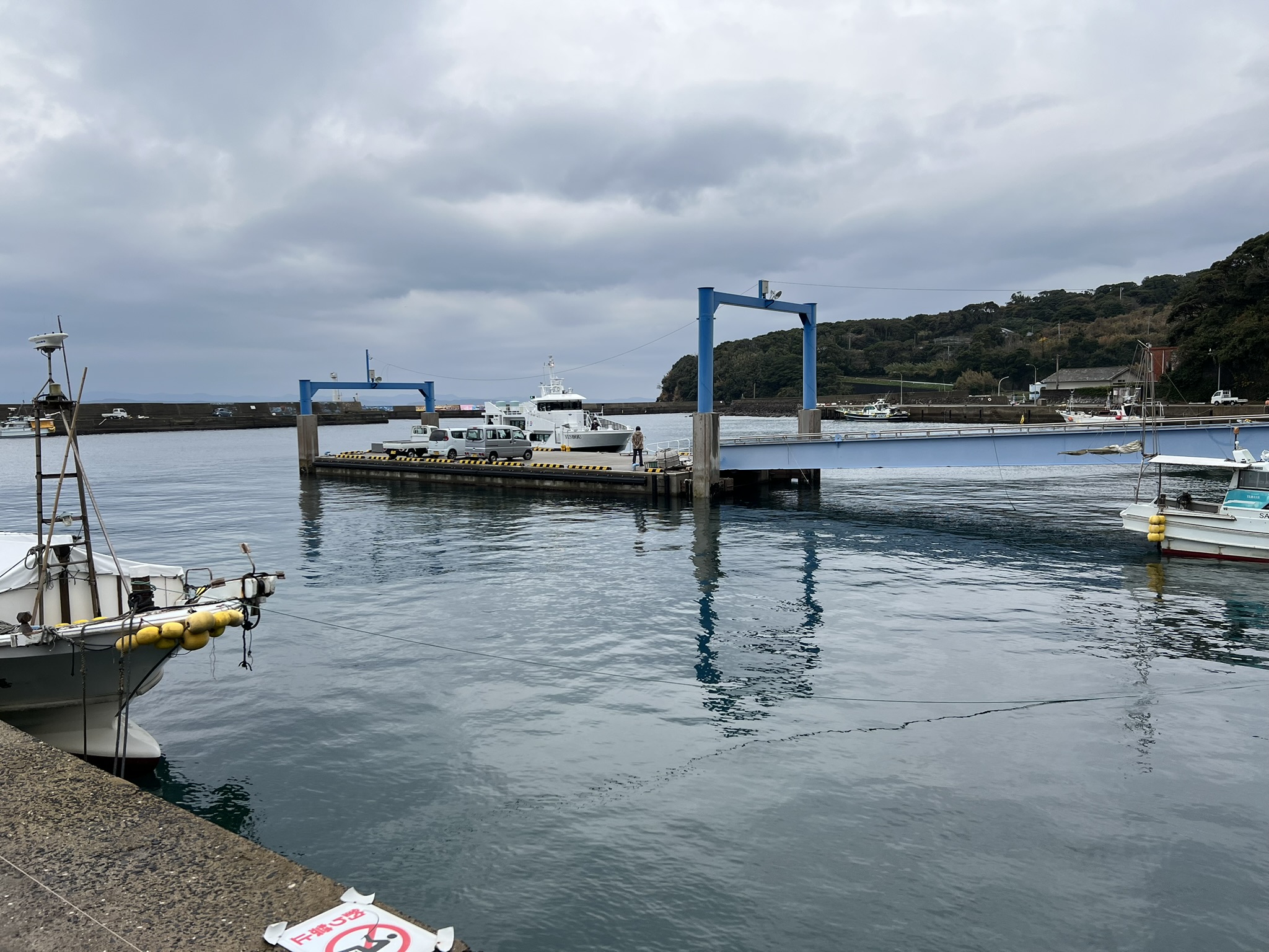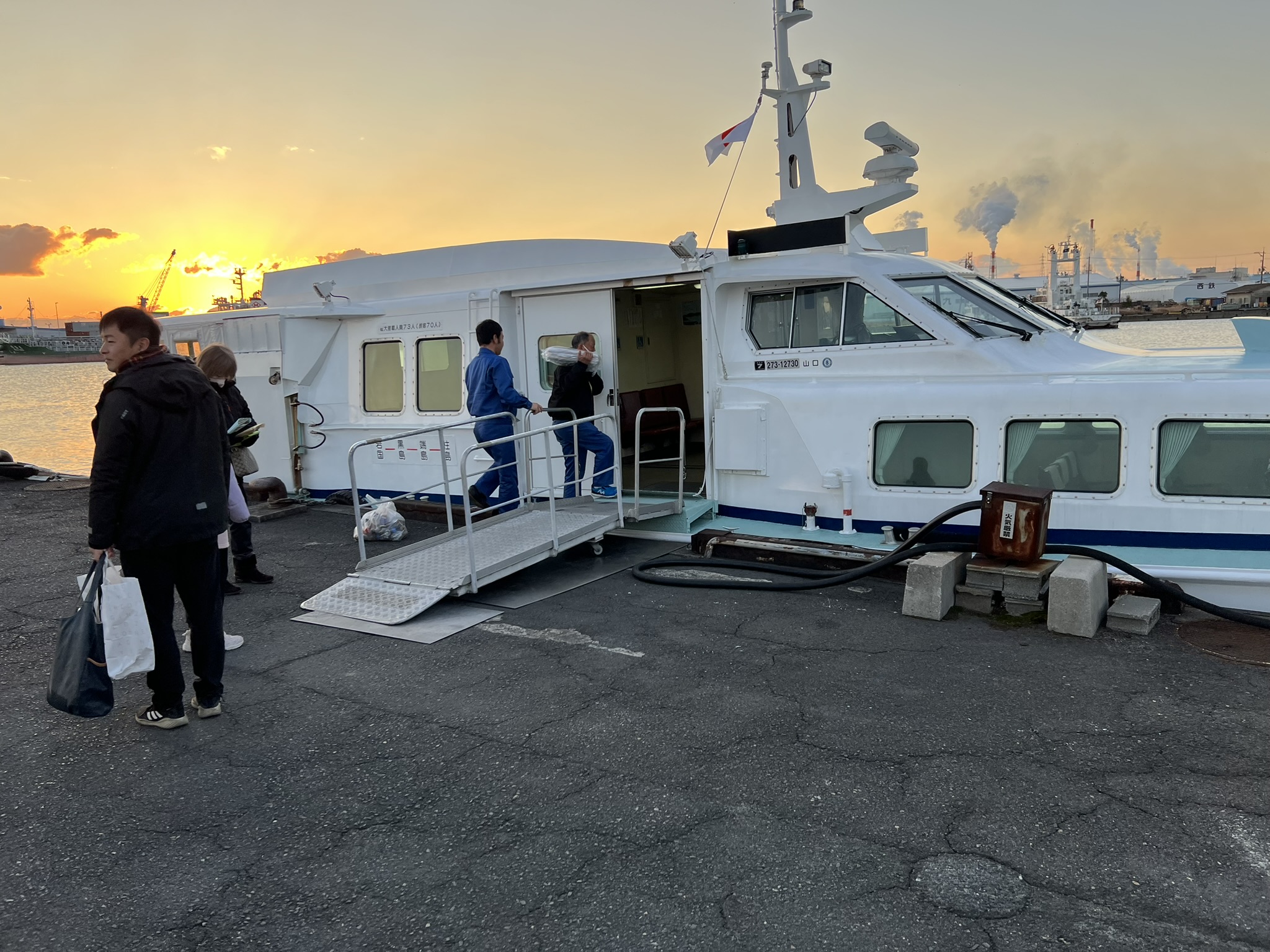 沖ノ島10:45 ー 小江10:47 の渡船で小豆島に戻る