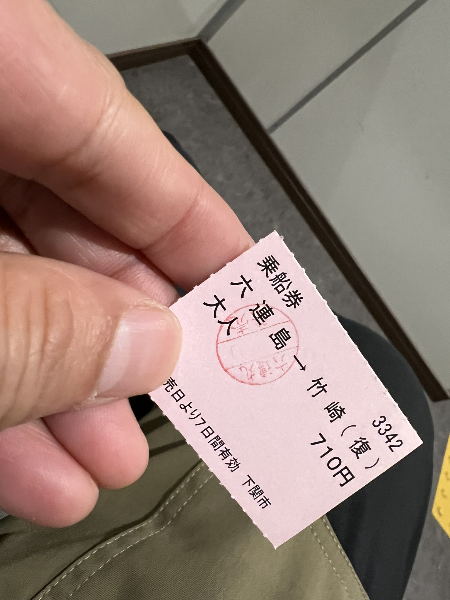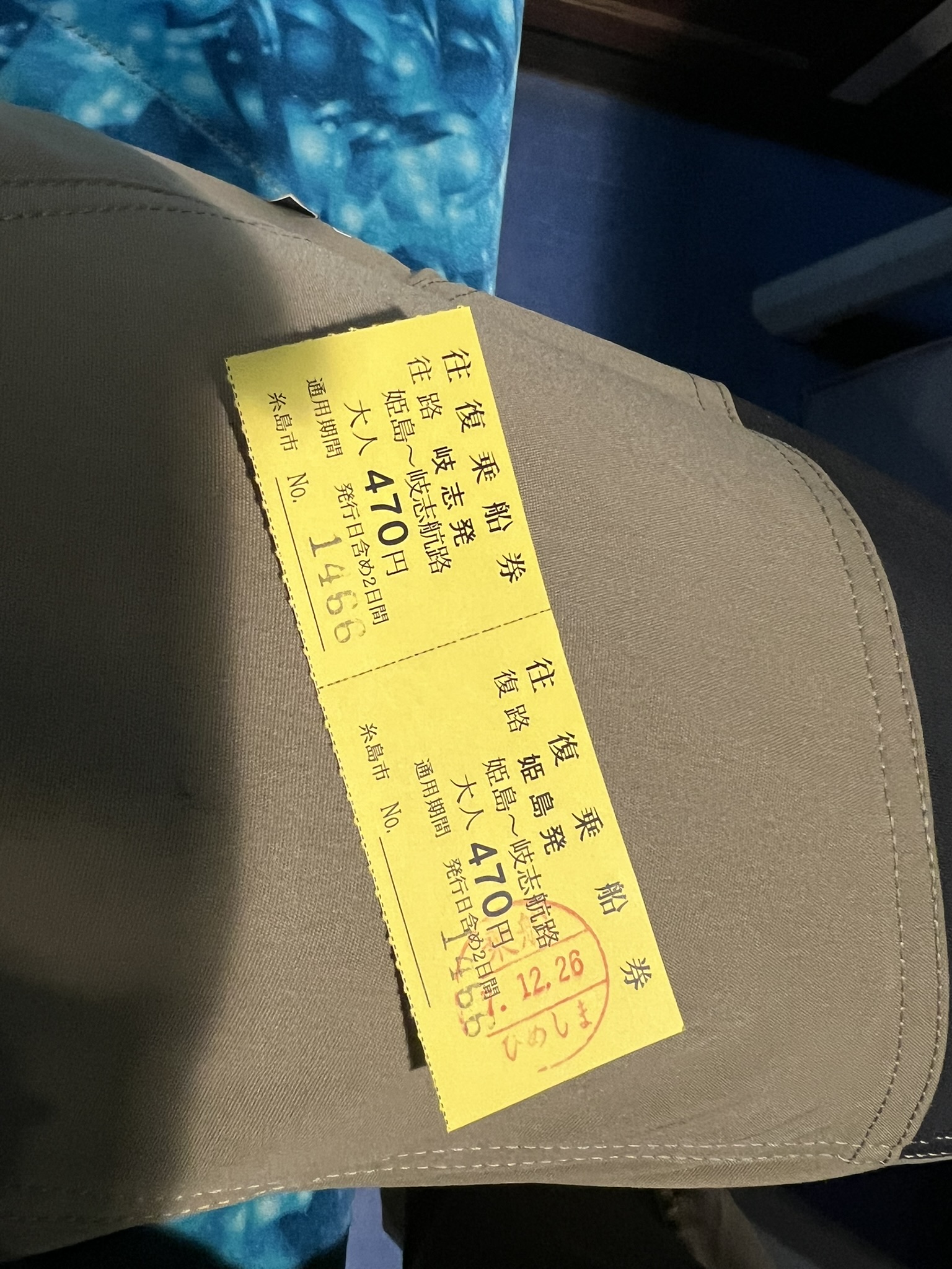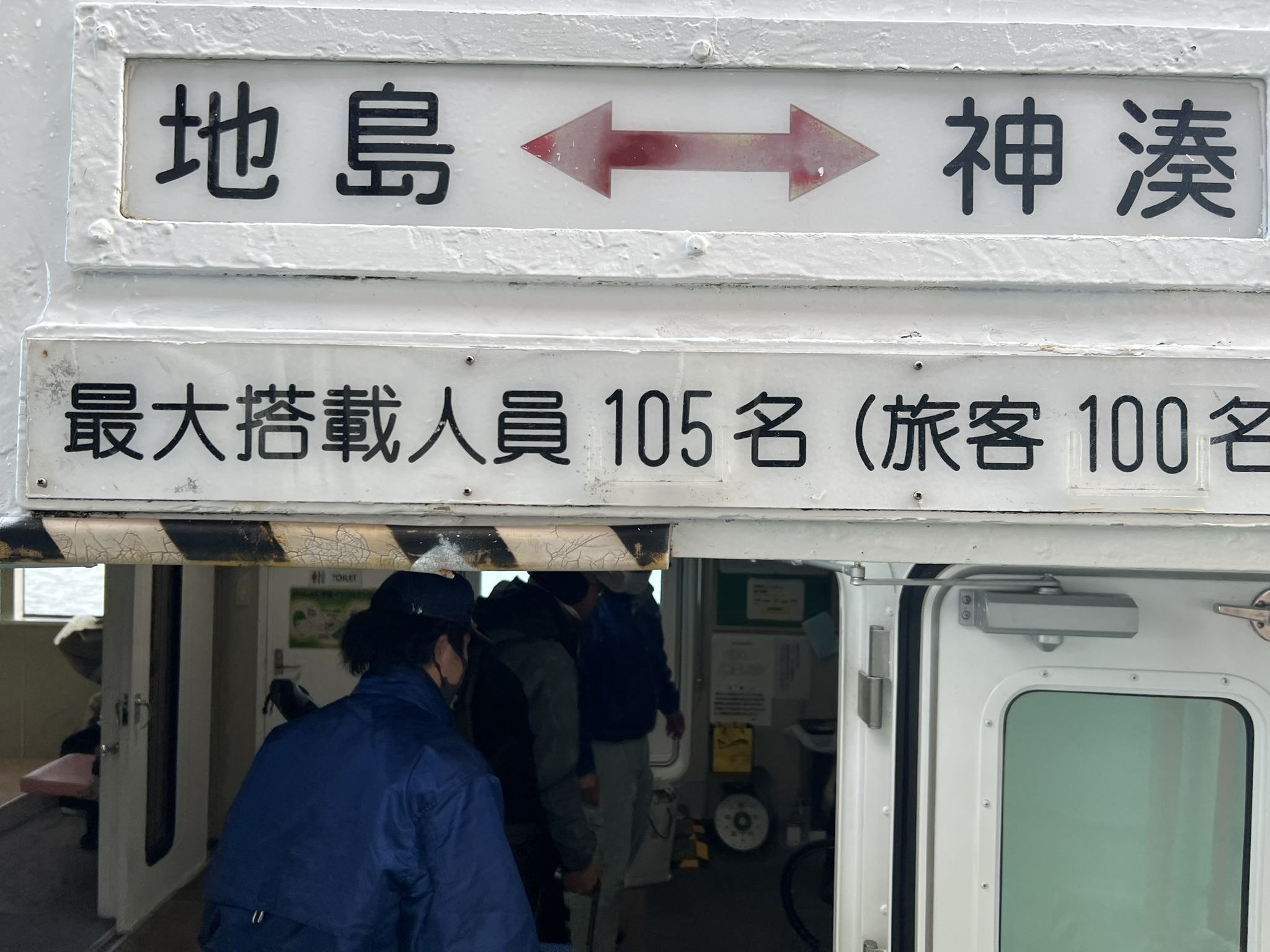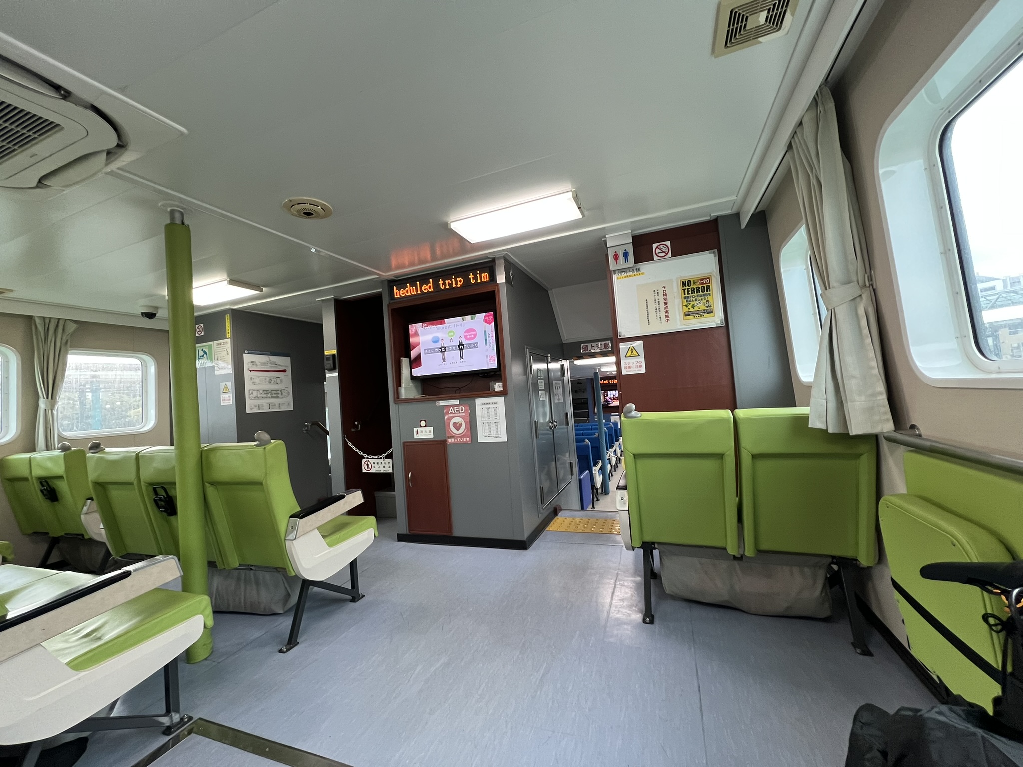 沖ノ島10:45 ー 小江10:47 の渡船で小豆島に戻る