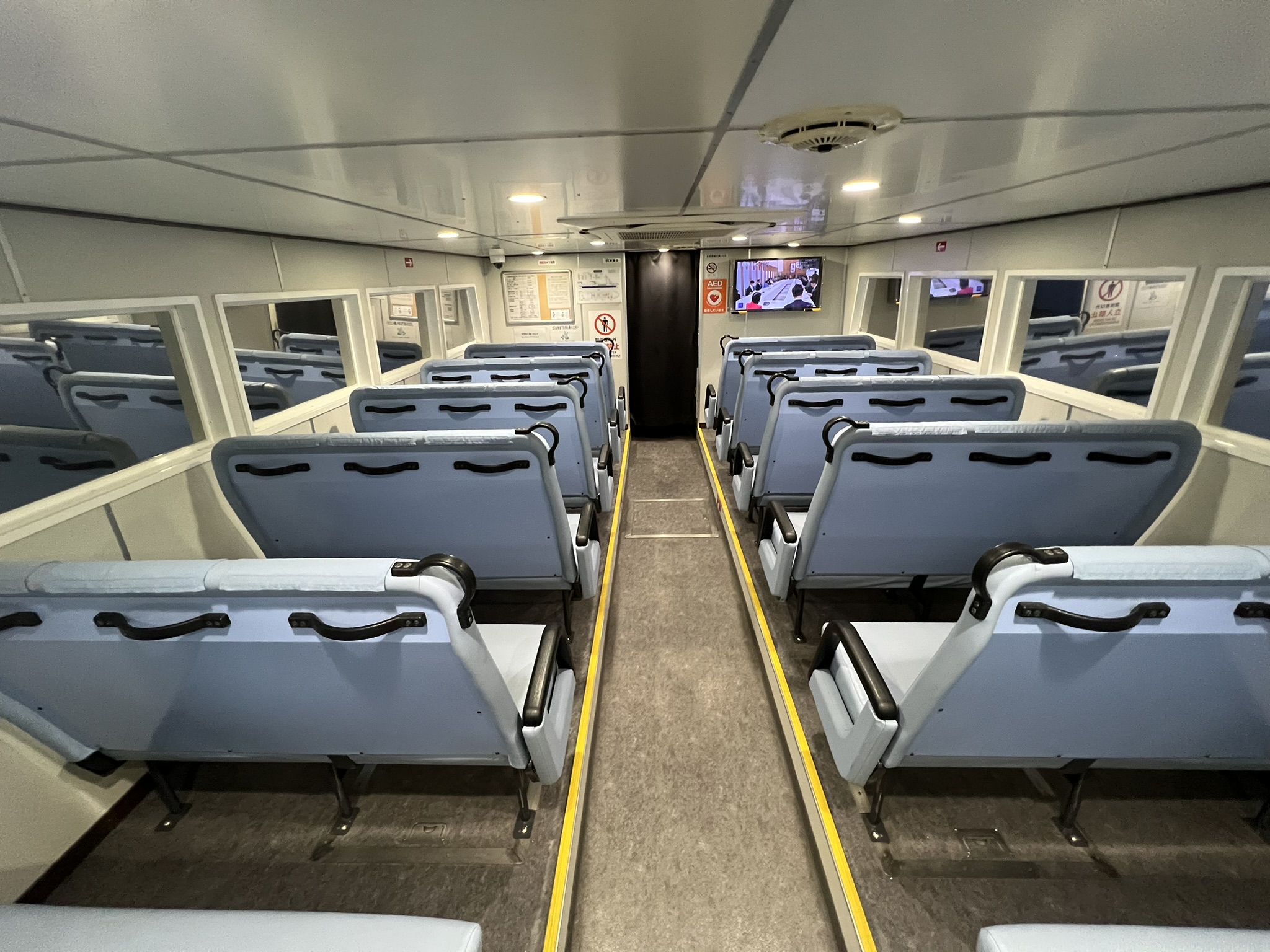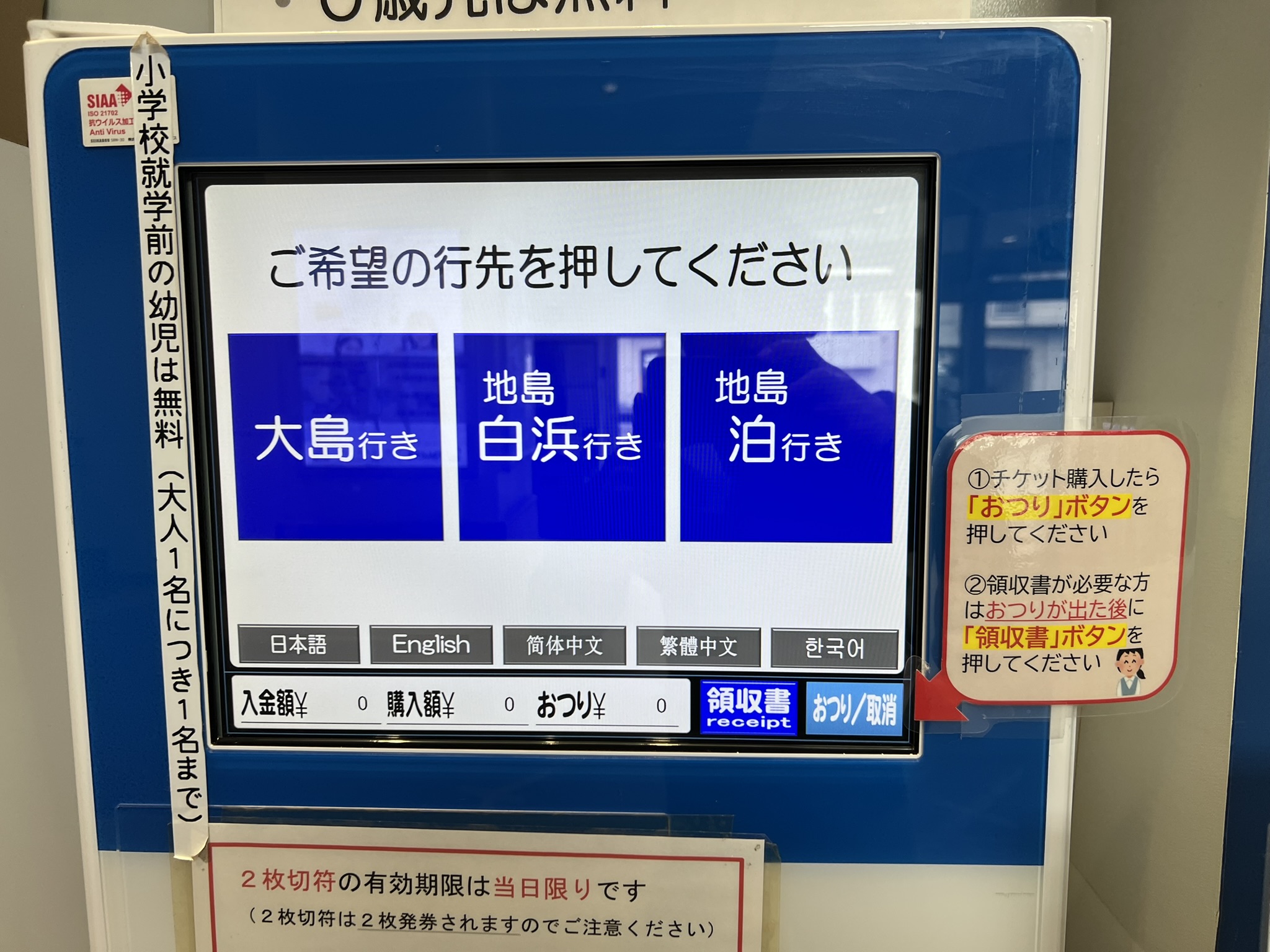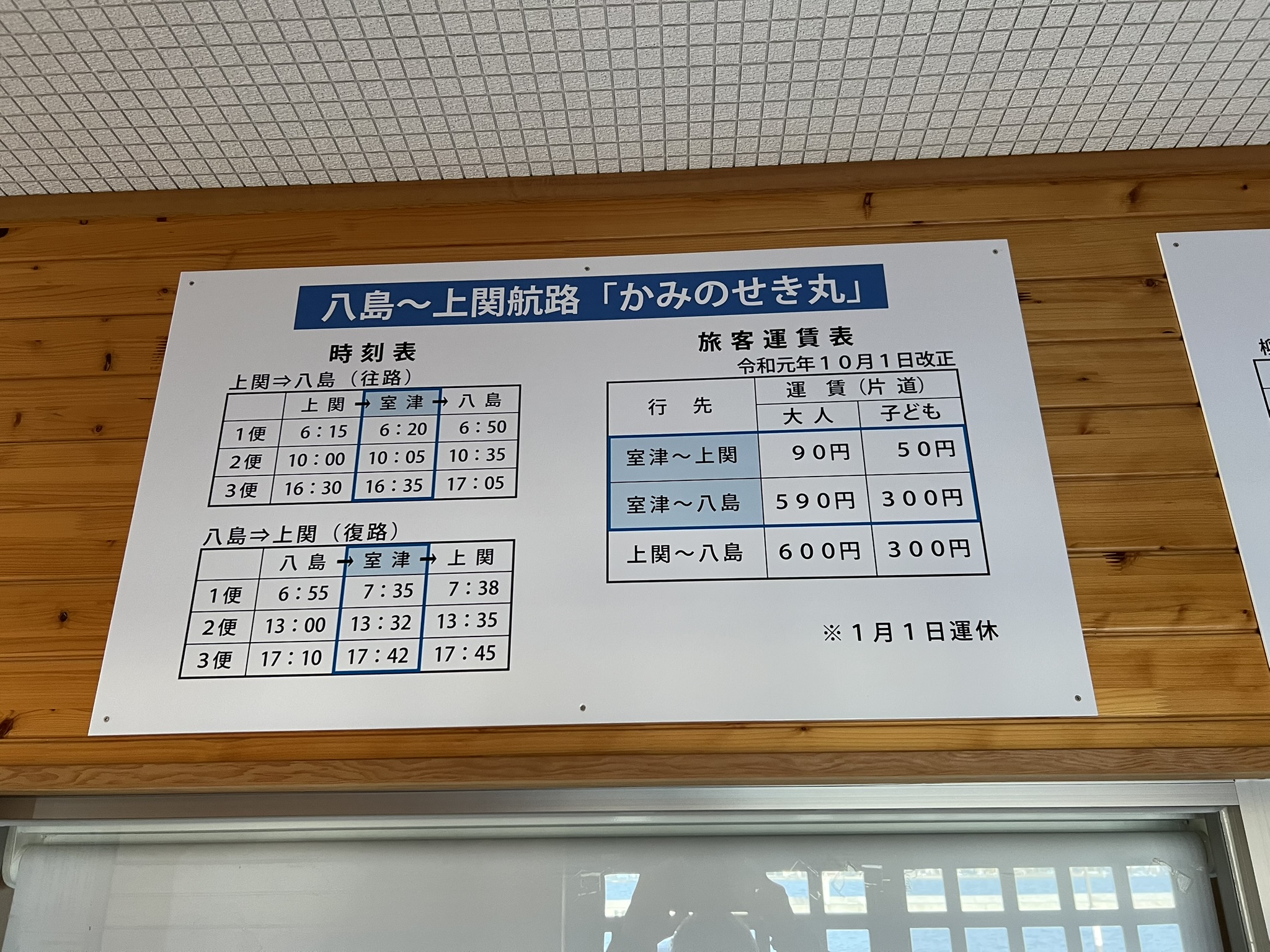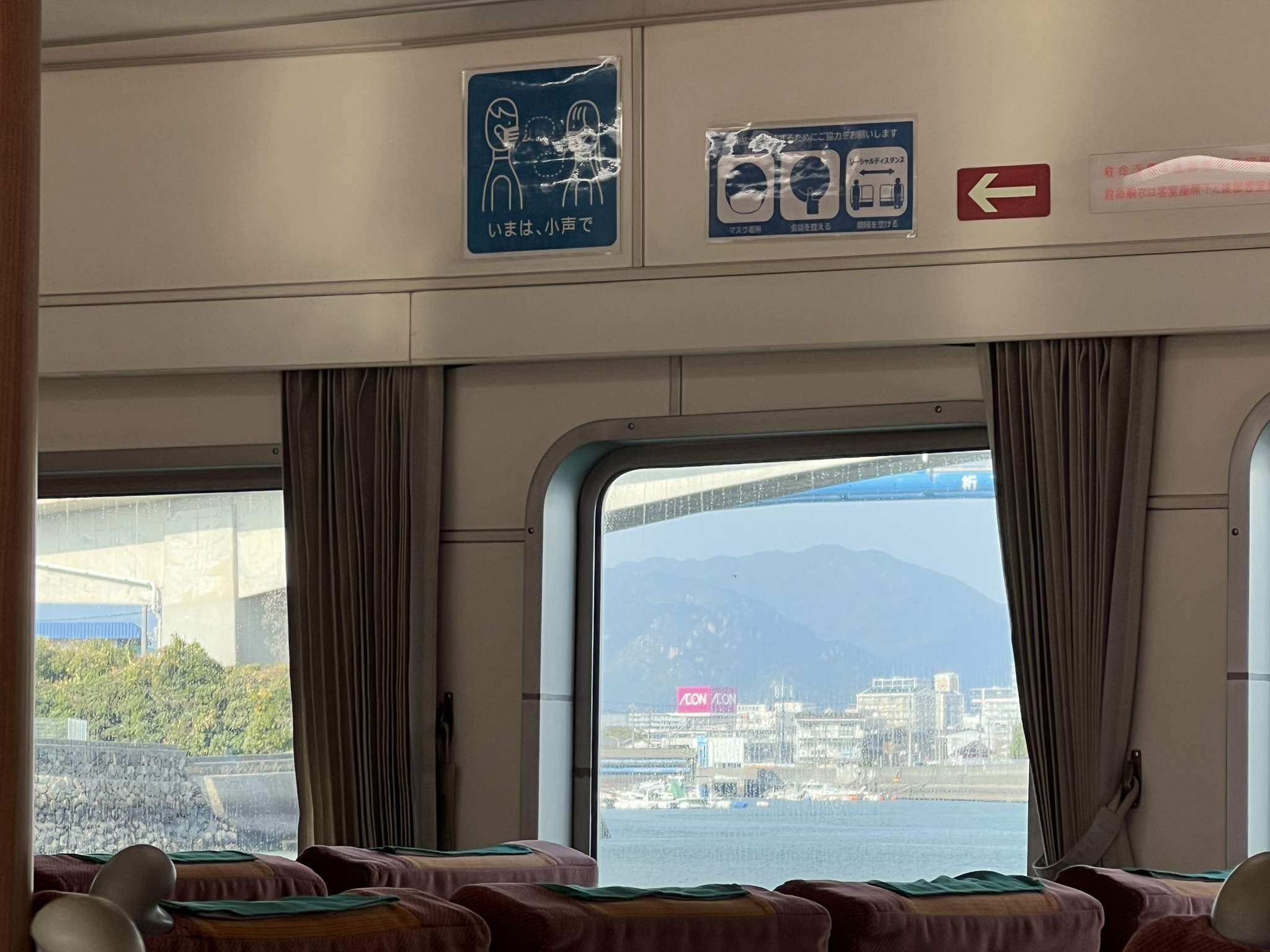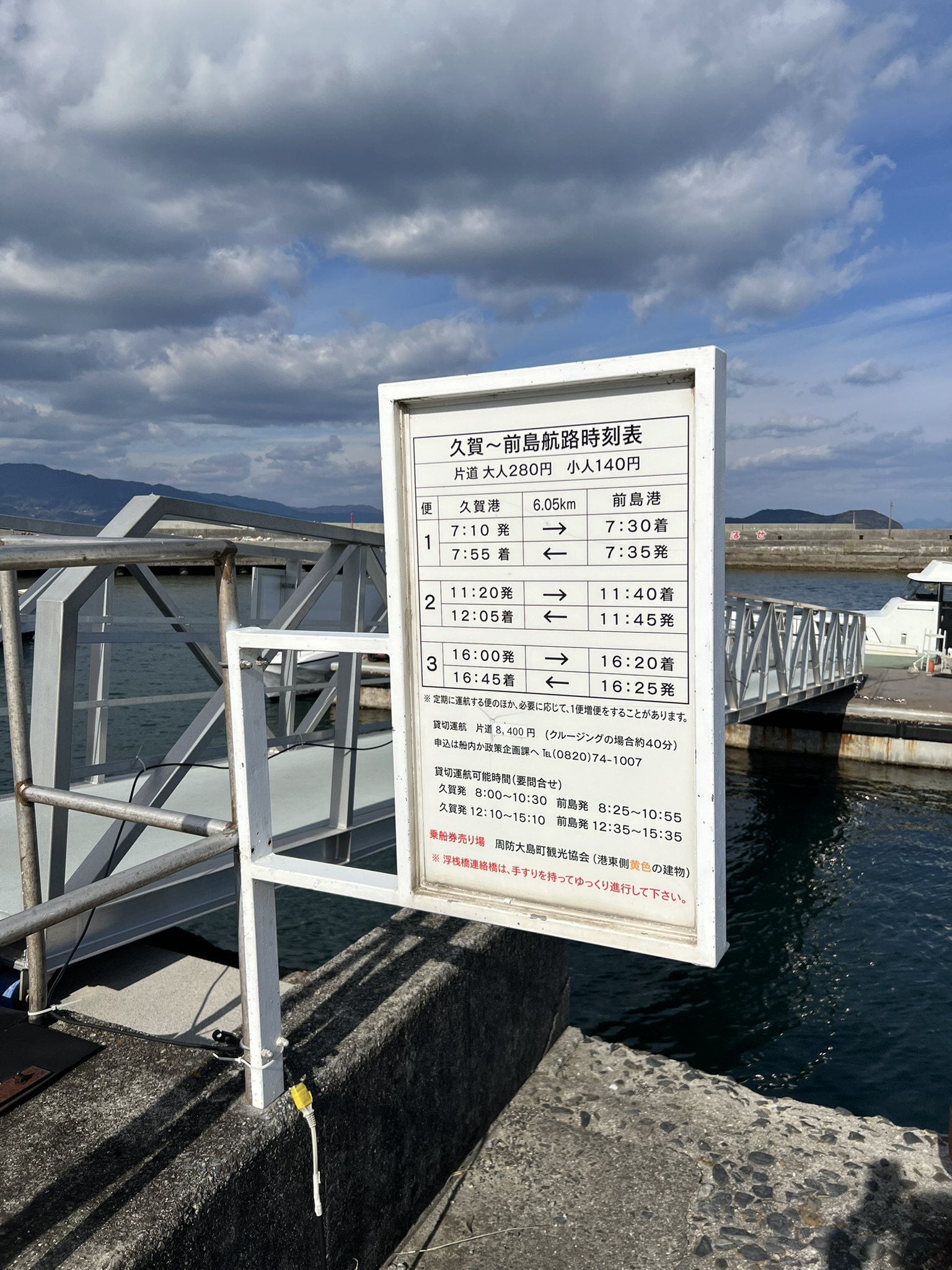 沖ノ島10:45 ー 小江10:47 の渡船で小豆島に戻る