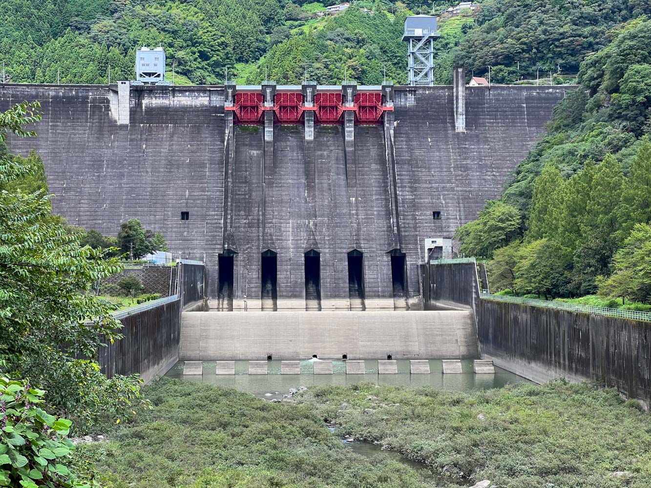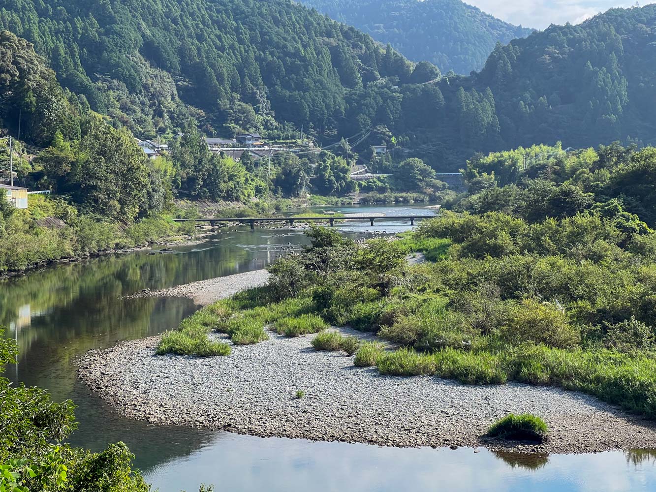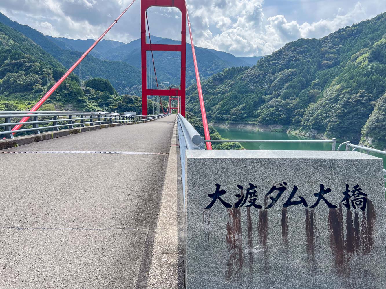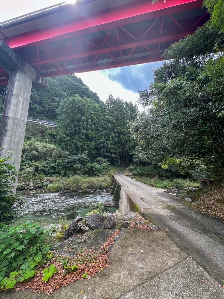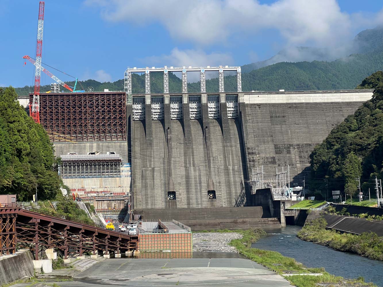 ダムは工事中で、ダム上の道で吉野川左岸には渡れないので、右岸を下ってから、ダム下で左岸へ渡る。