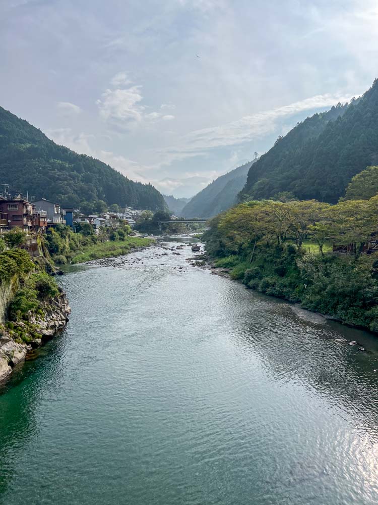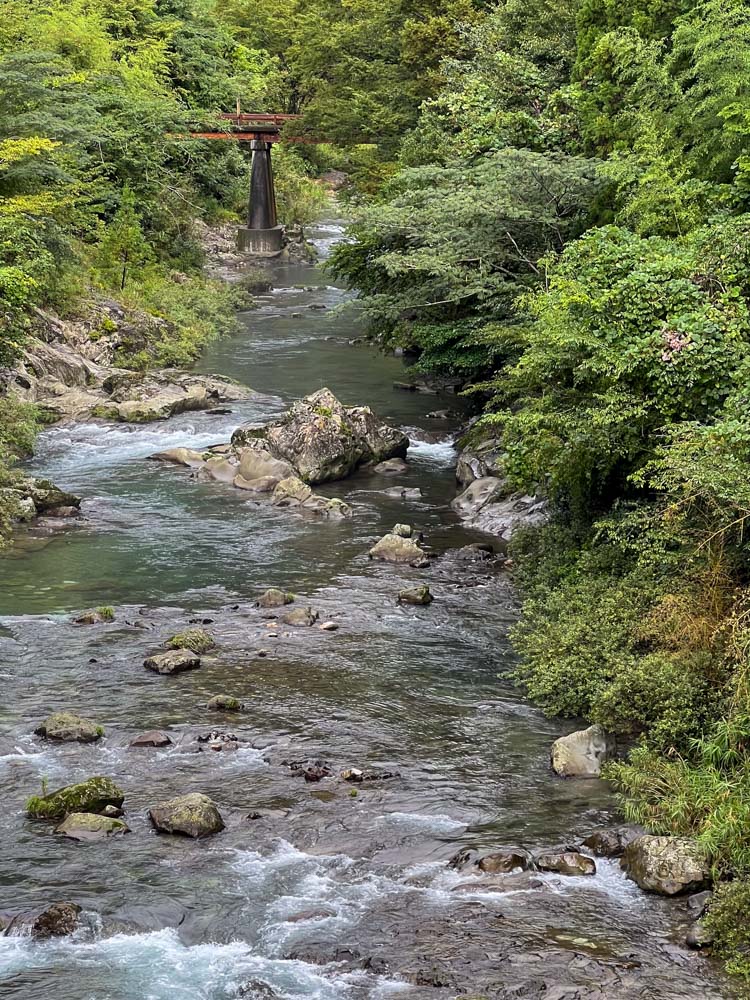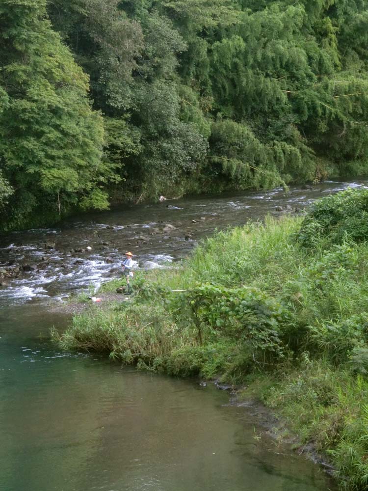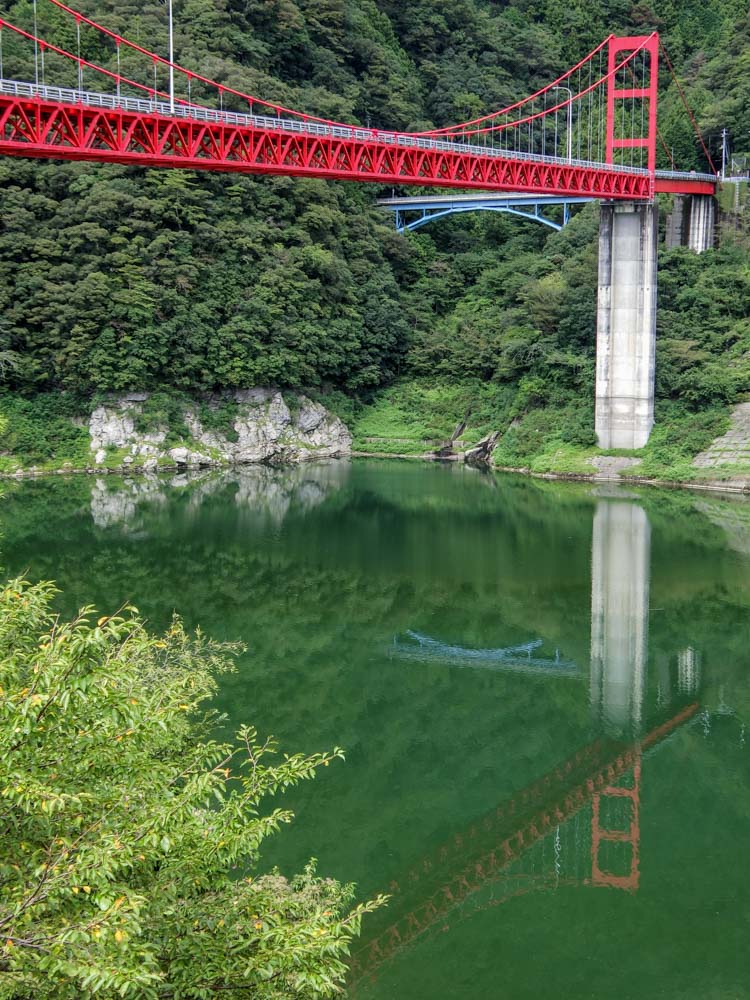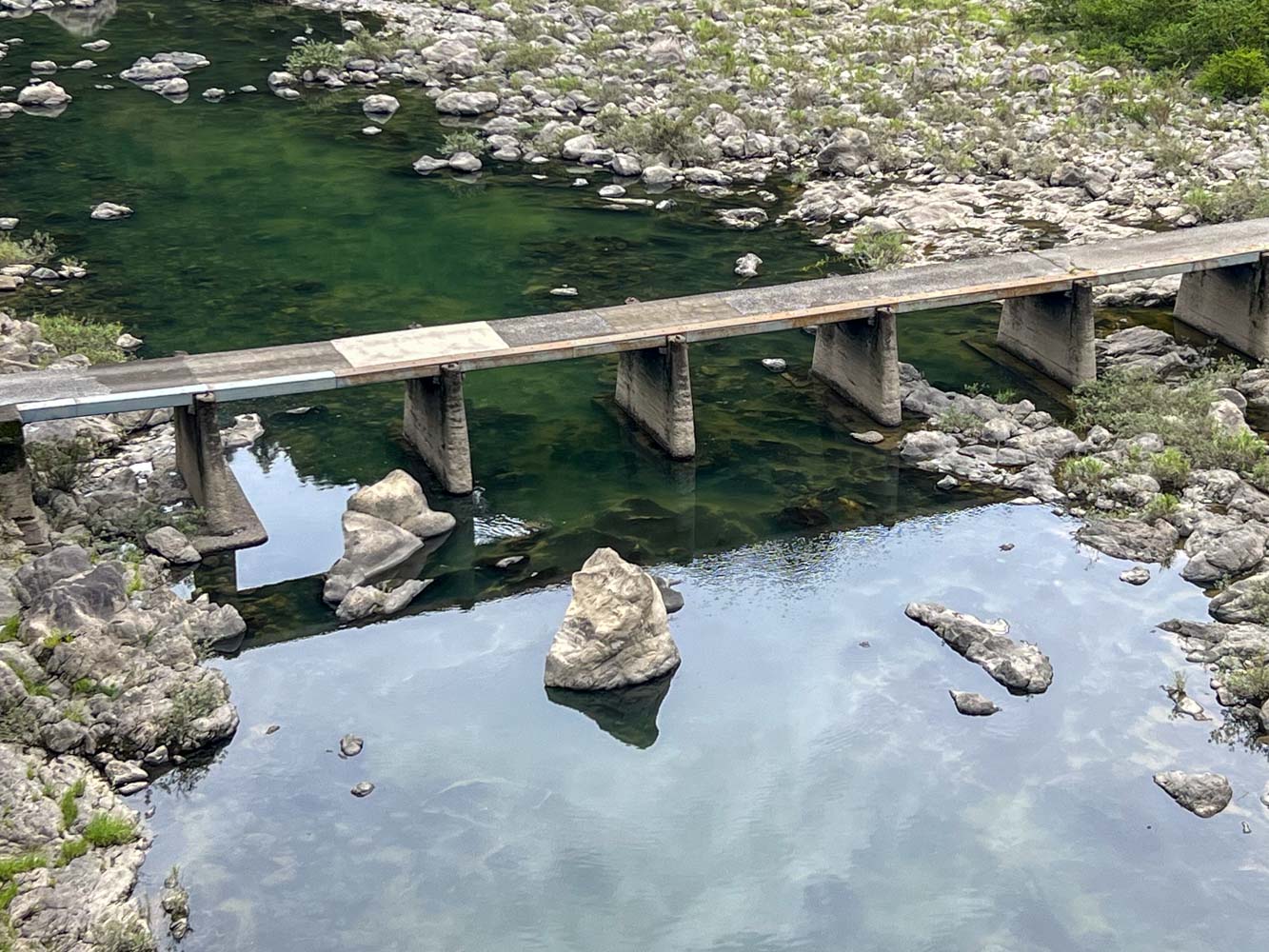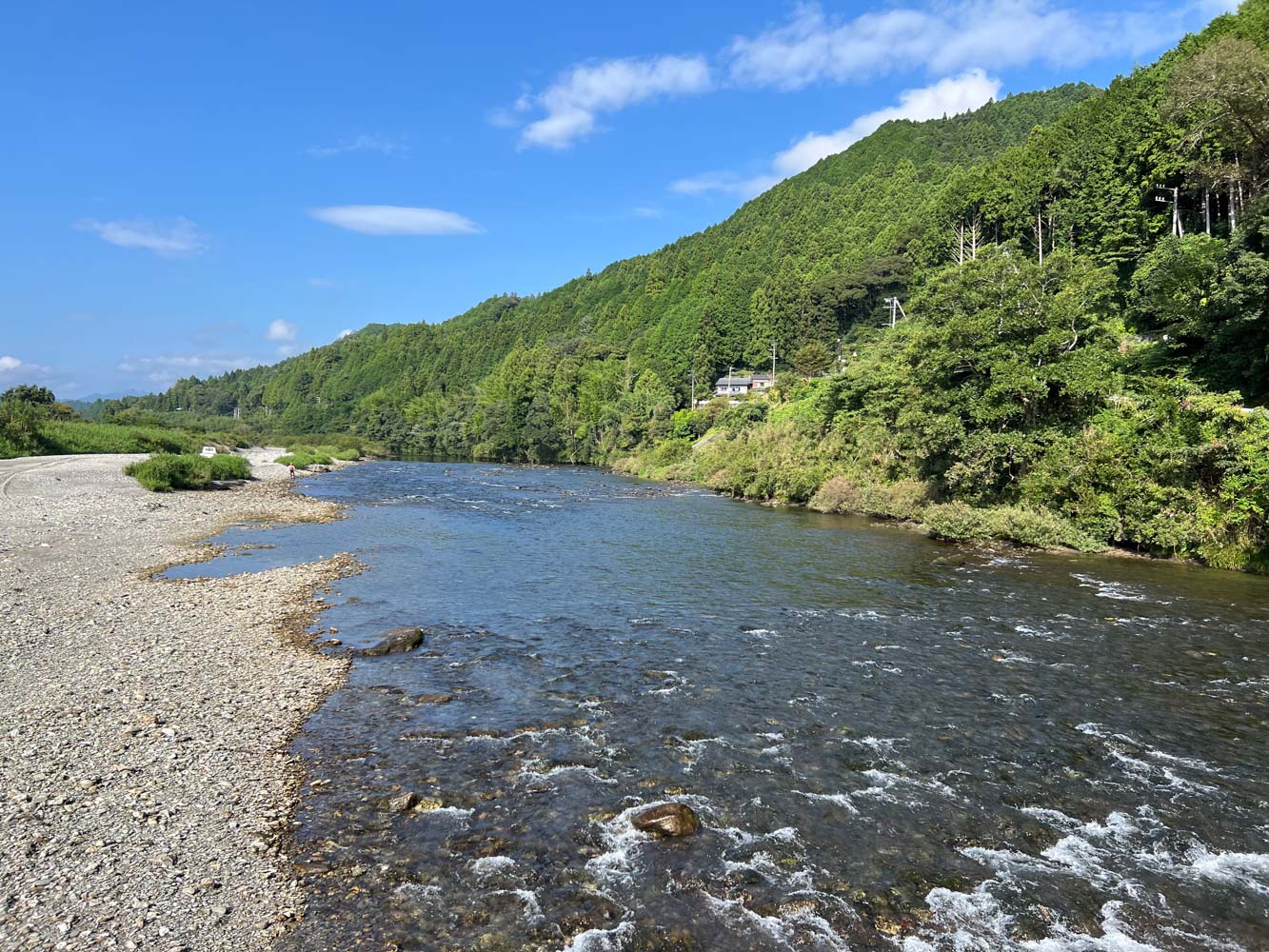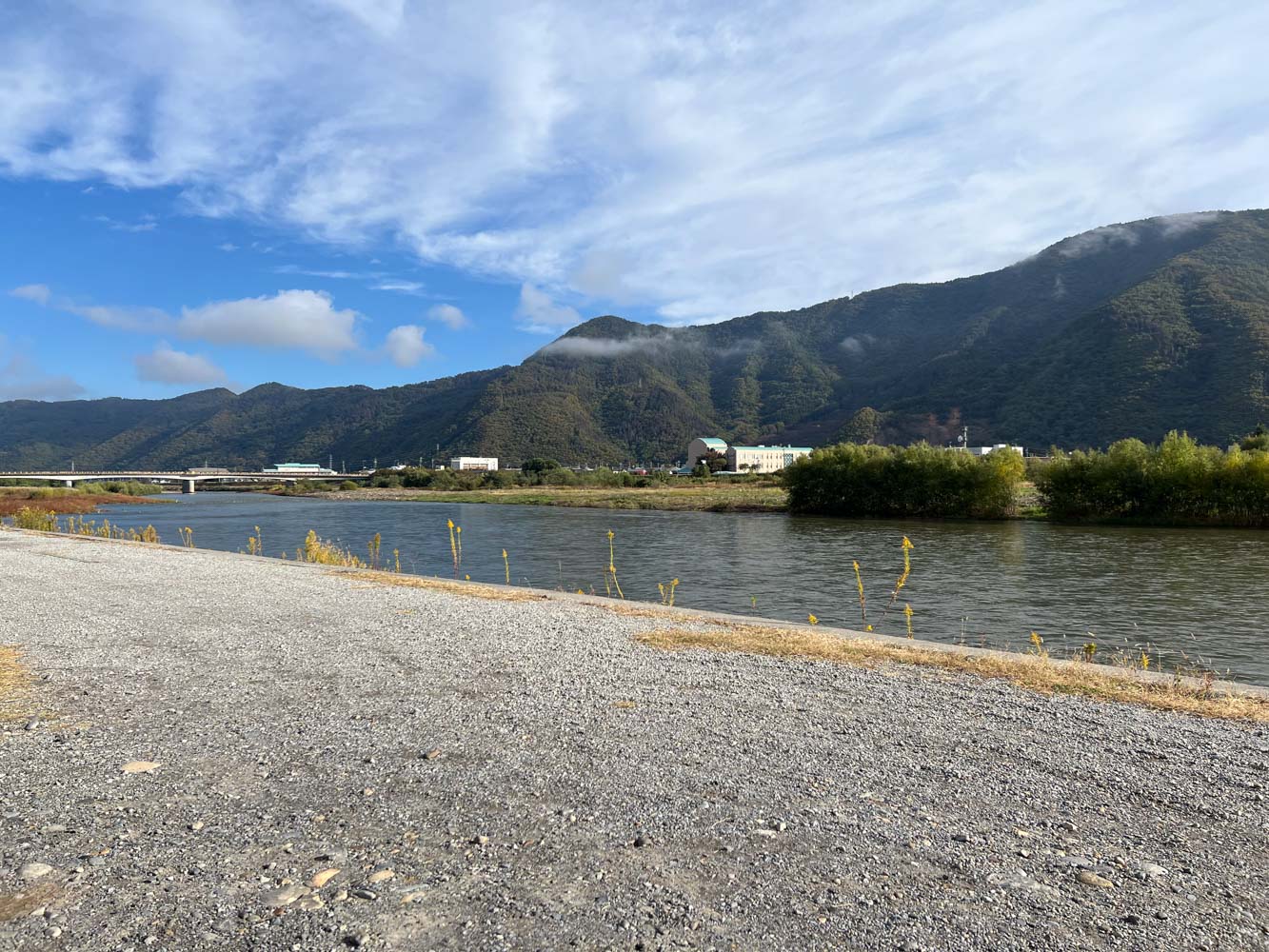 ダムは工事中で、ダム上の道で吉野川左岸には渡れないので、右岸を下ってから、ダム下で左岸へ渡る。