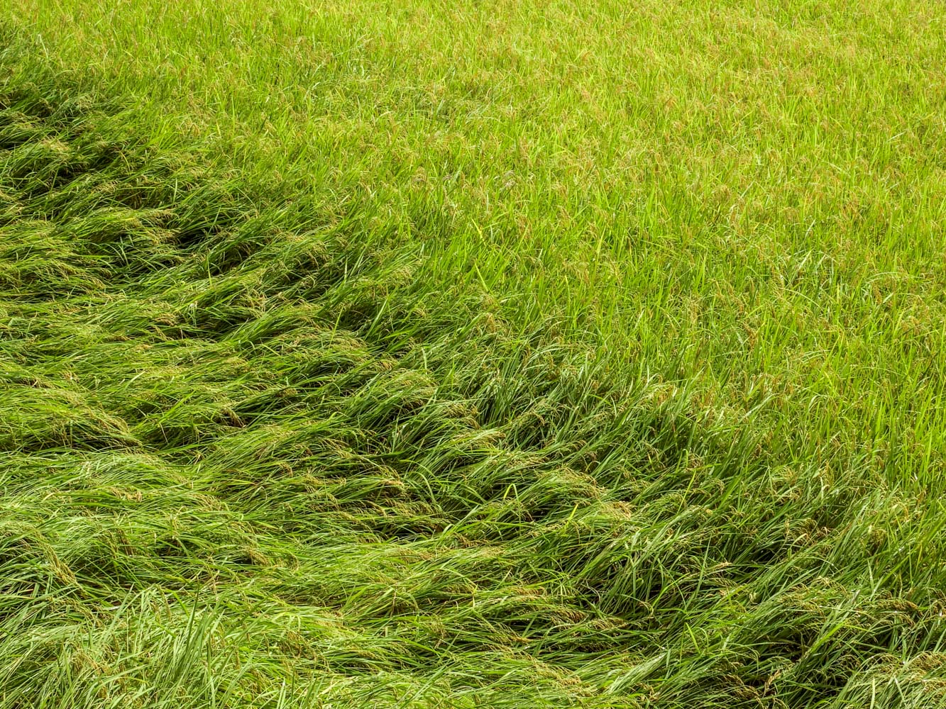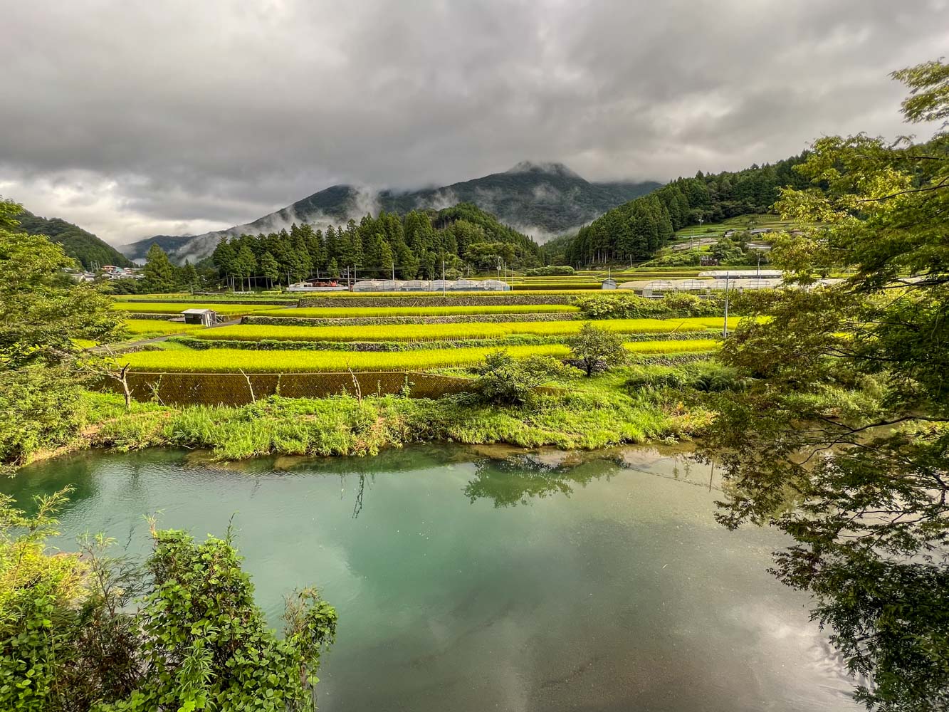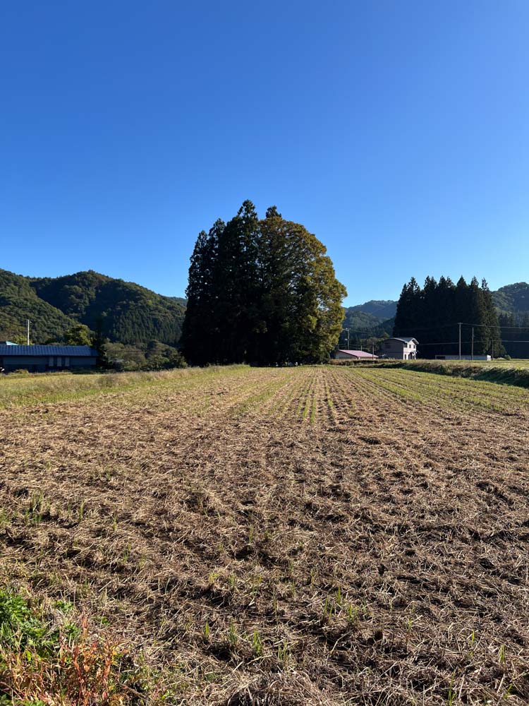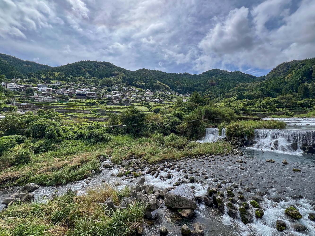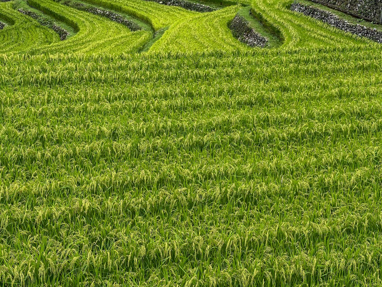 小川川ぞいの棚田の稲刈り風景(小川新別あたり)