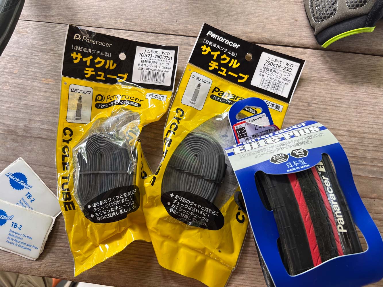 チューブ2本、タイヤ1本ありがたくゲット。チューブ1本2,398円。タイヤ3,035円の2割引き、しめて7224円てのは、ちょっと高いが、あるってことだけで感謝しないといけない。