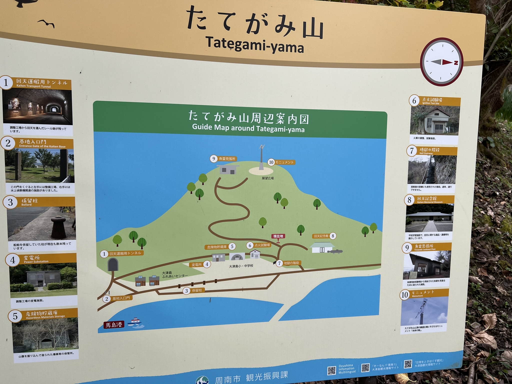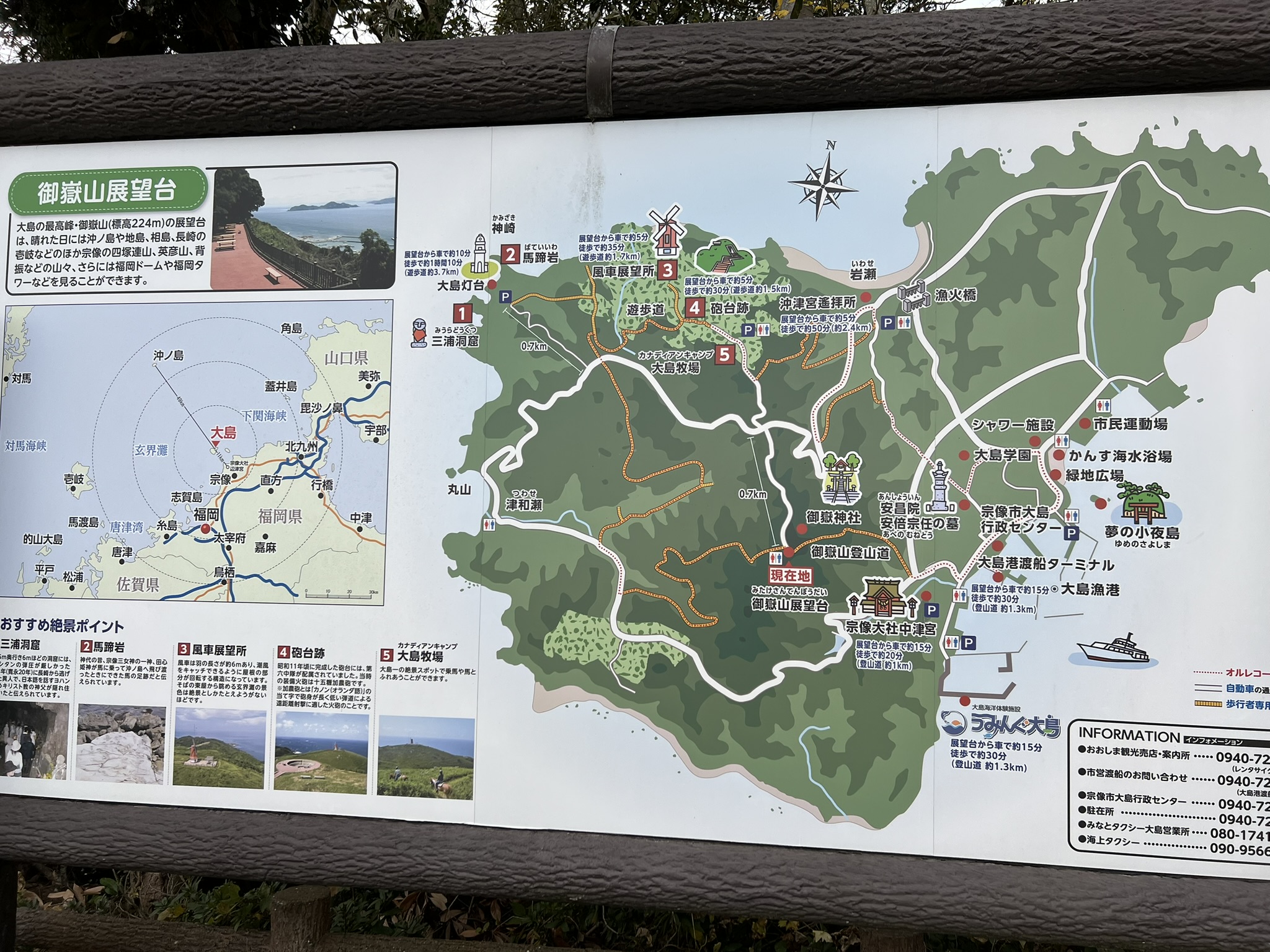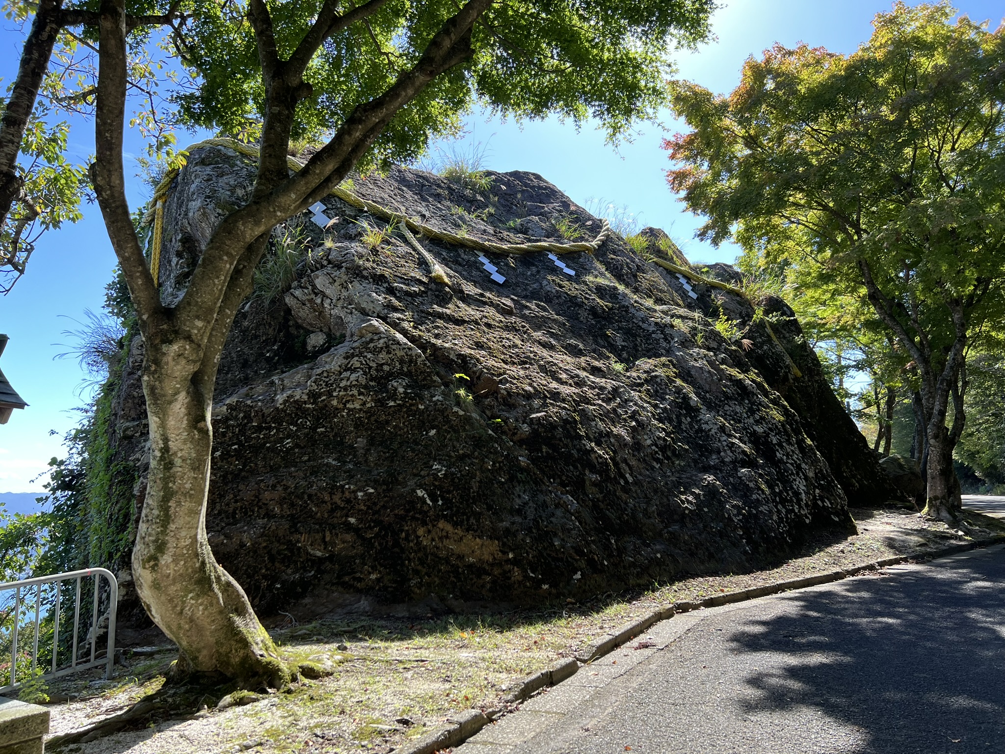 大正期に直島の銅精錬工場からでる亜硫酸ガスによって禿山となった後、植林がなされたが、平成10年に山火事。平成14年よりボランティアによる植樹が行われ、現在に至る。島内には海人族の祭祀遺跡あり。