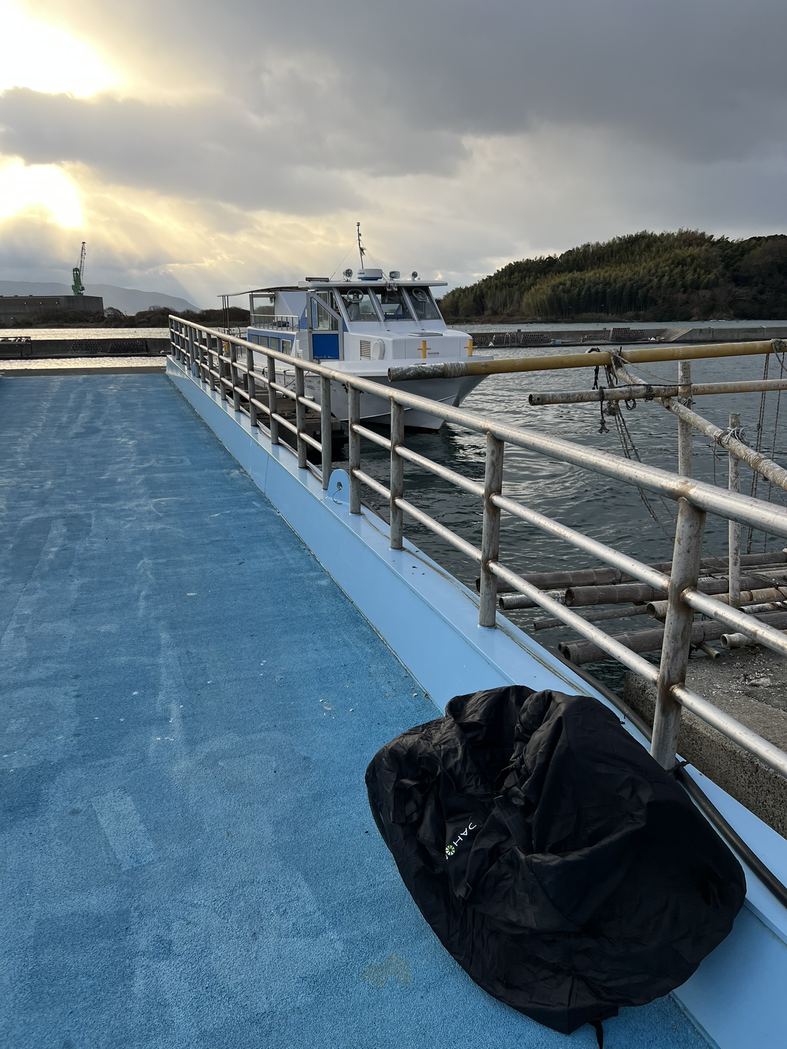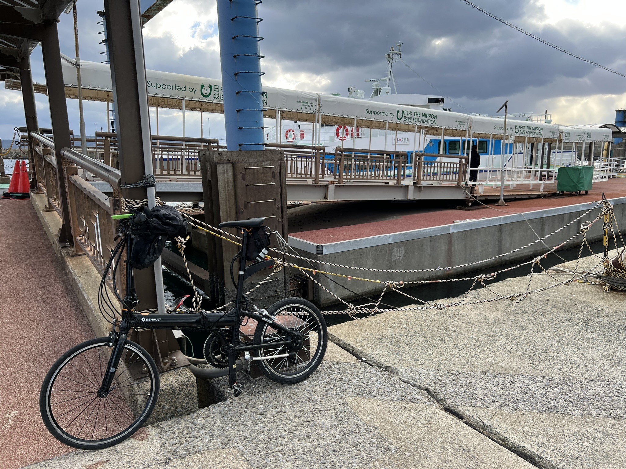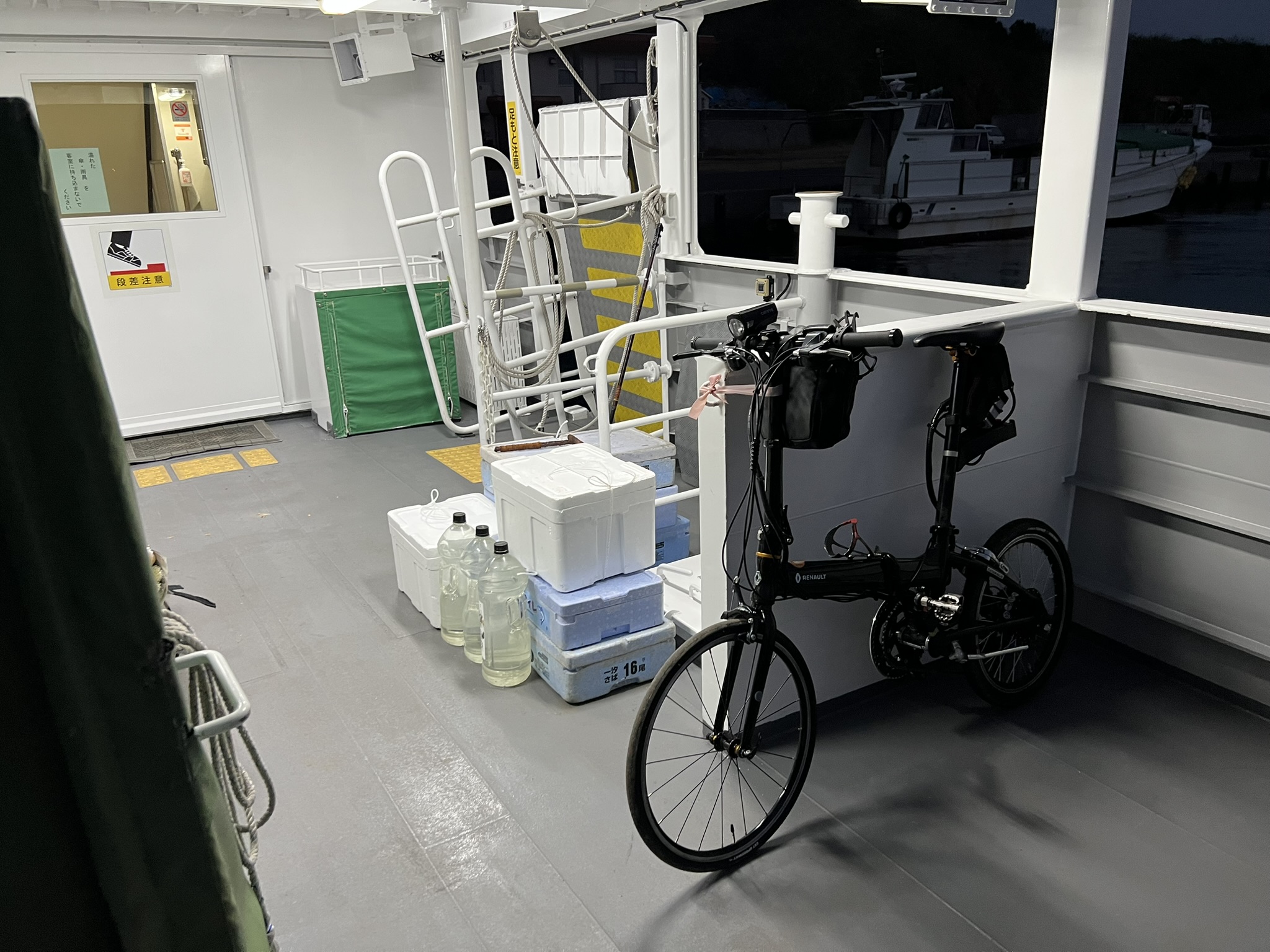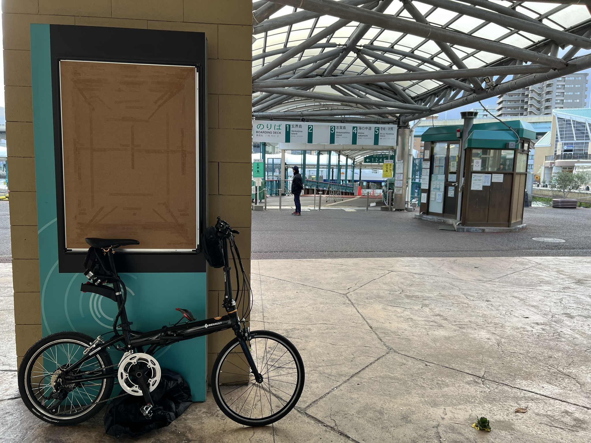 自転車を組み上げ、夕刻発送する荷物の準備を整えてから駐車場を離れ、08:40に川西マリンサービスの専用桟橋に到着。