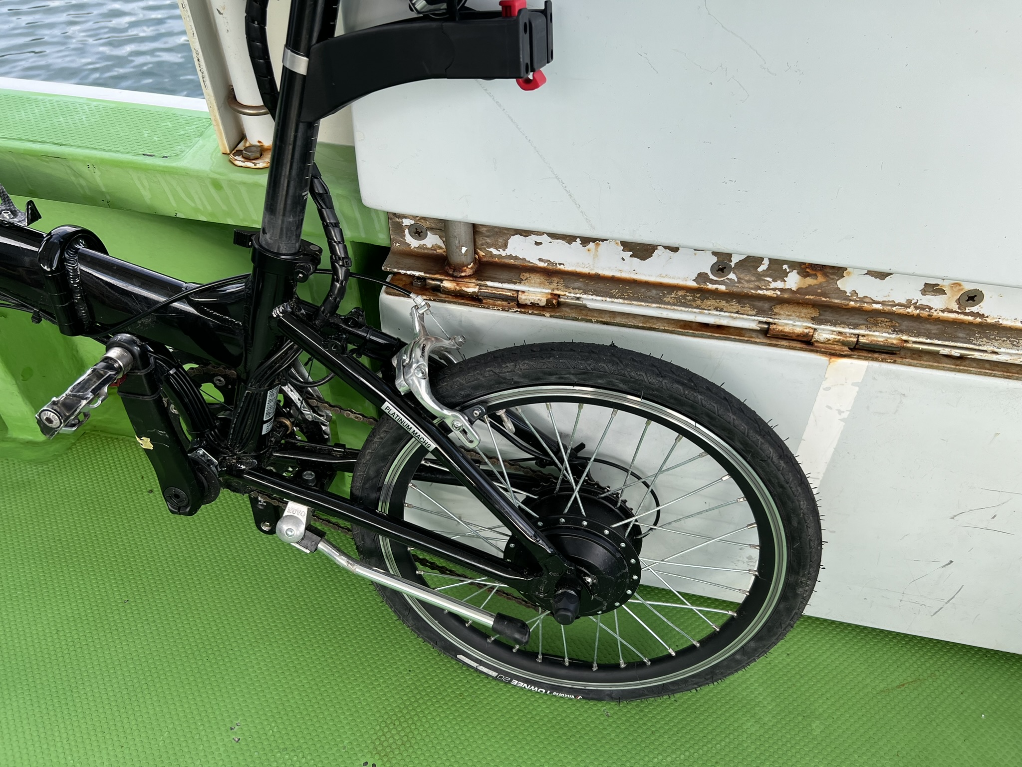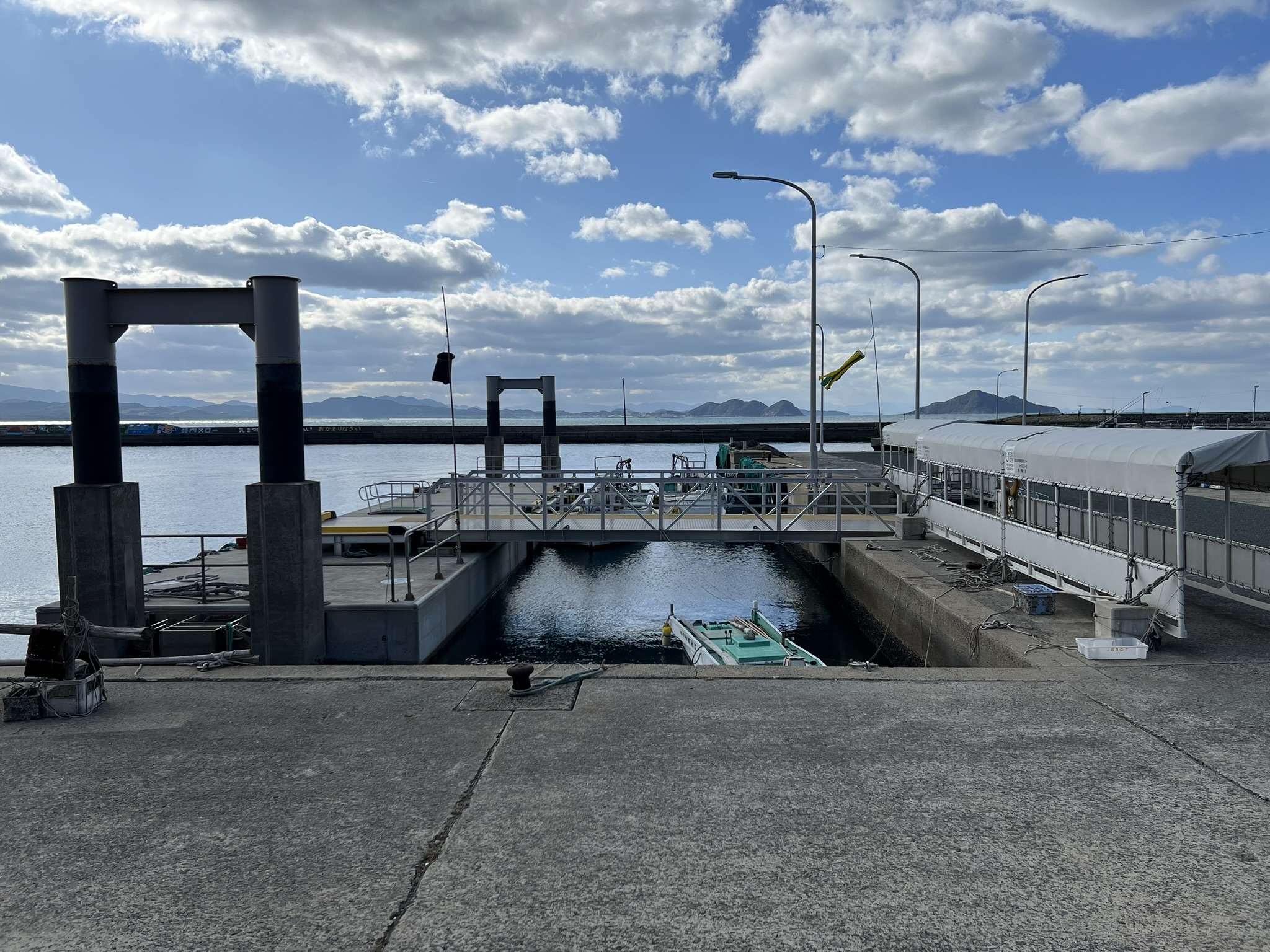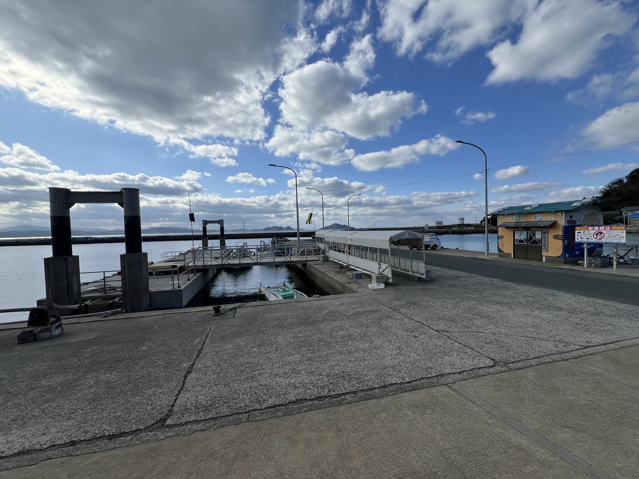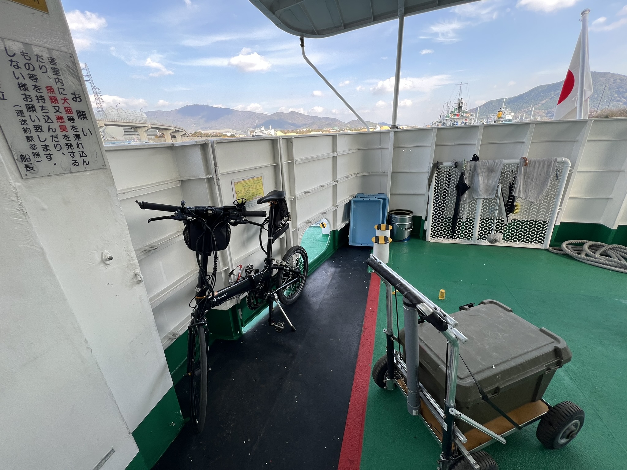 自転車を組み上げ、夕刻発送する荷物の準備を整えてから駐車場を離れ、08:40に川西マリンサービスの専用桟橋に到着。