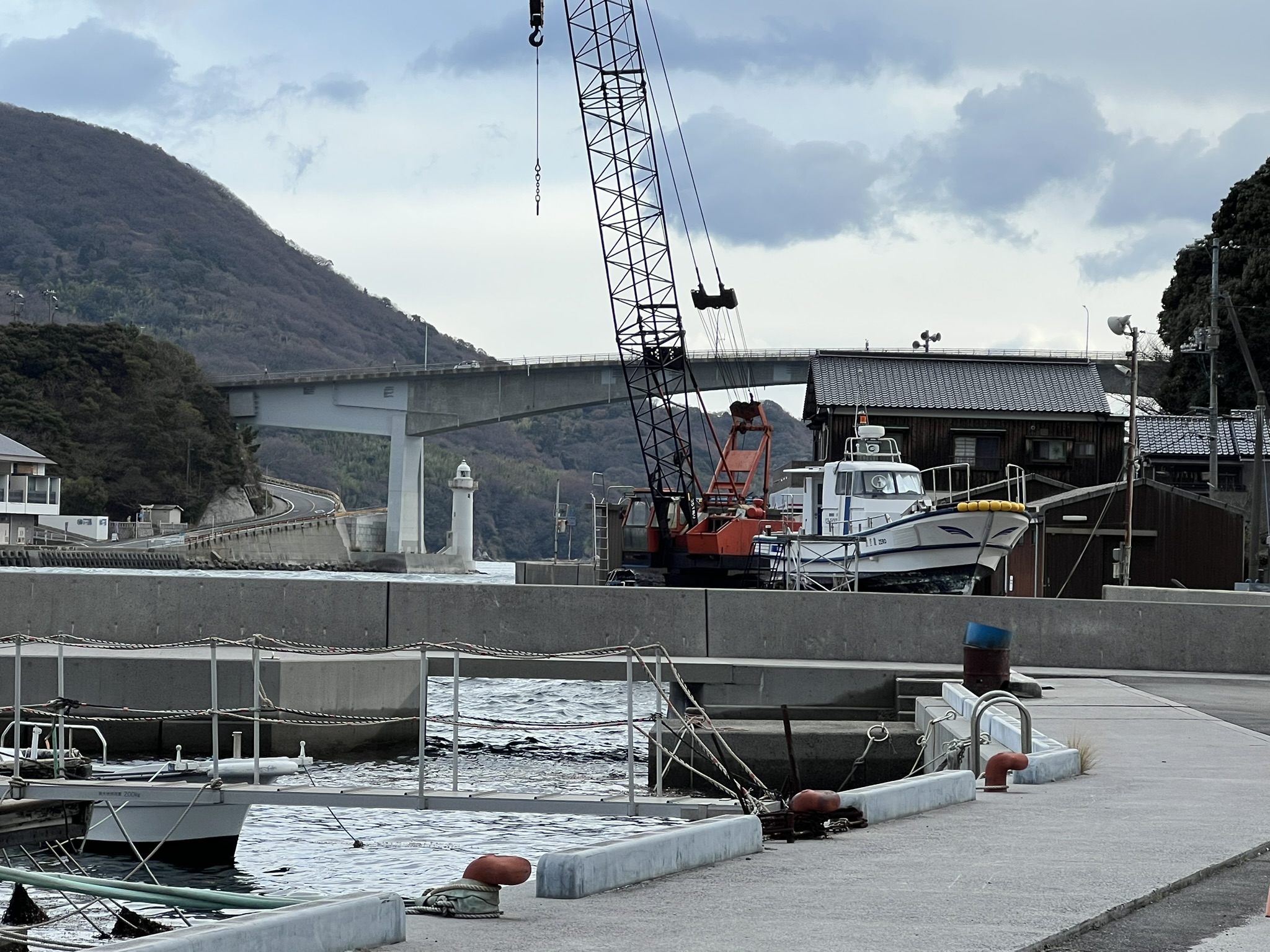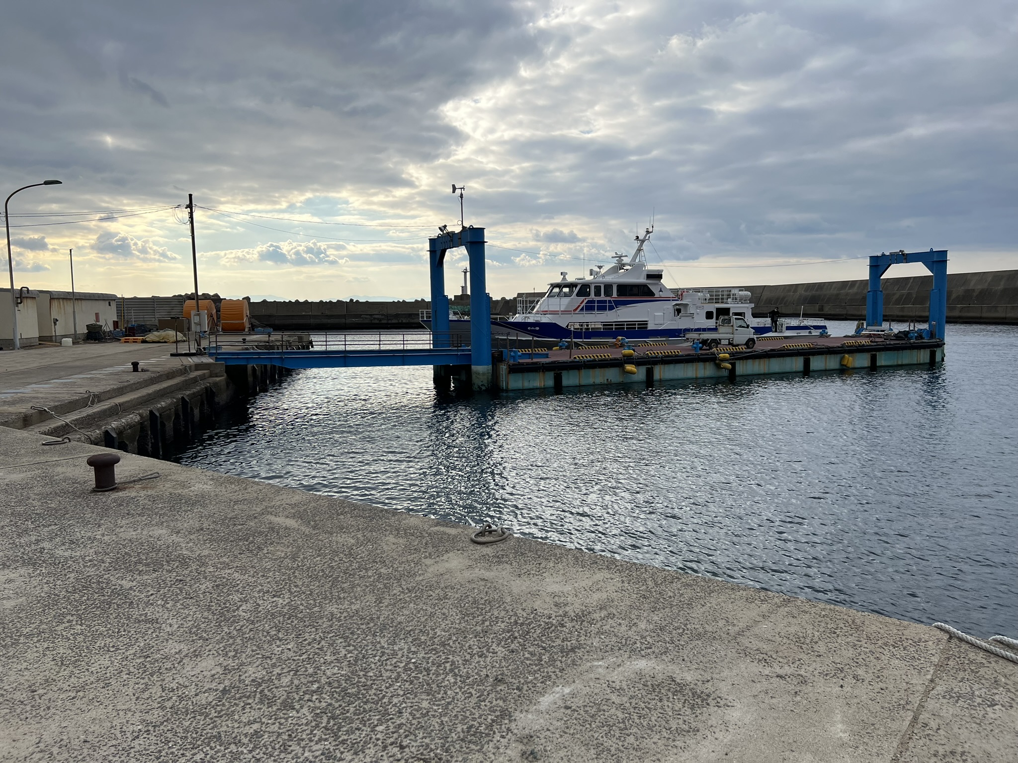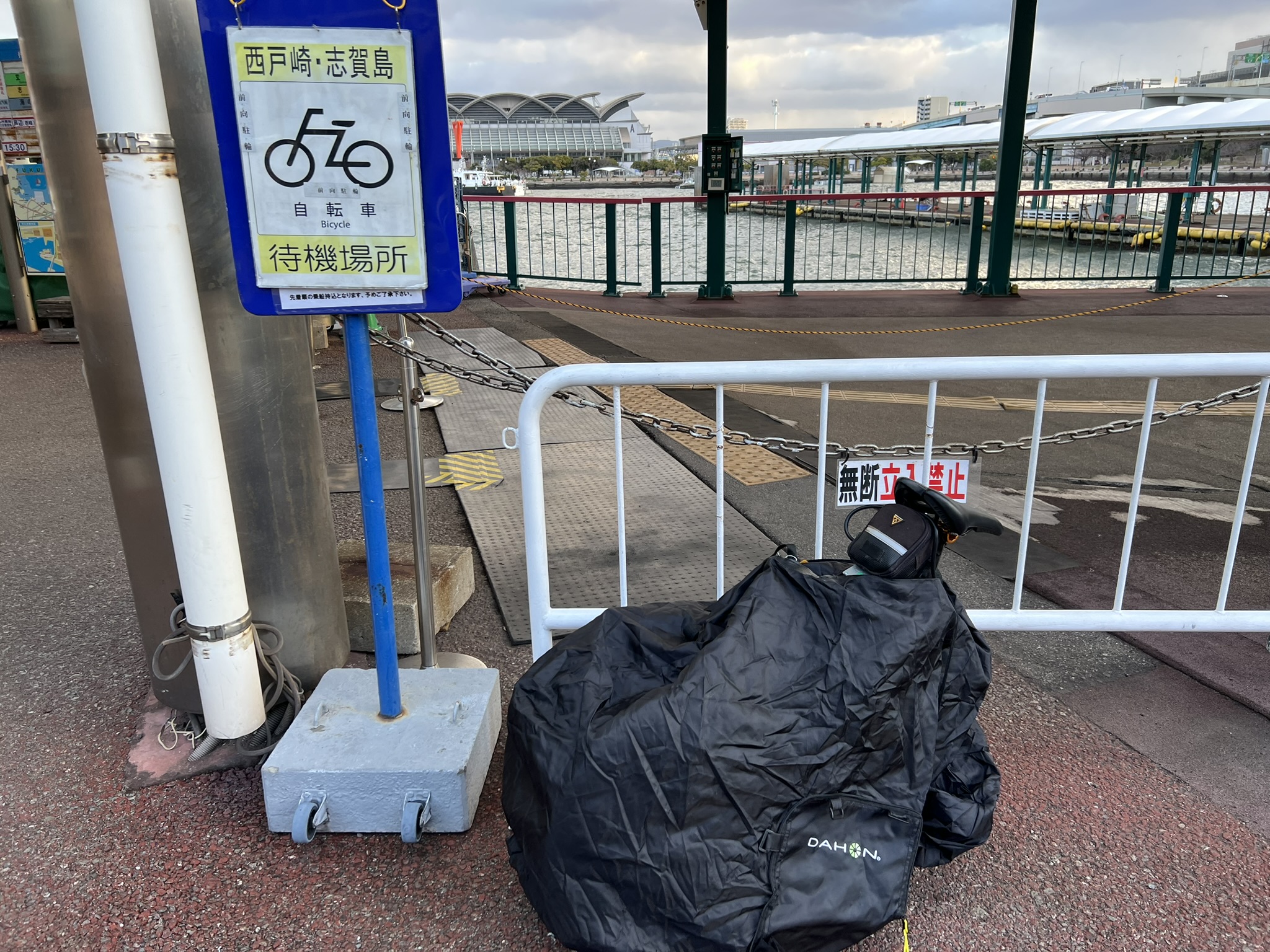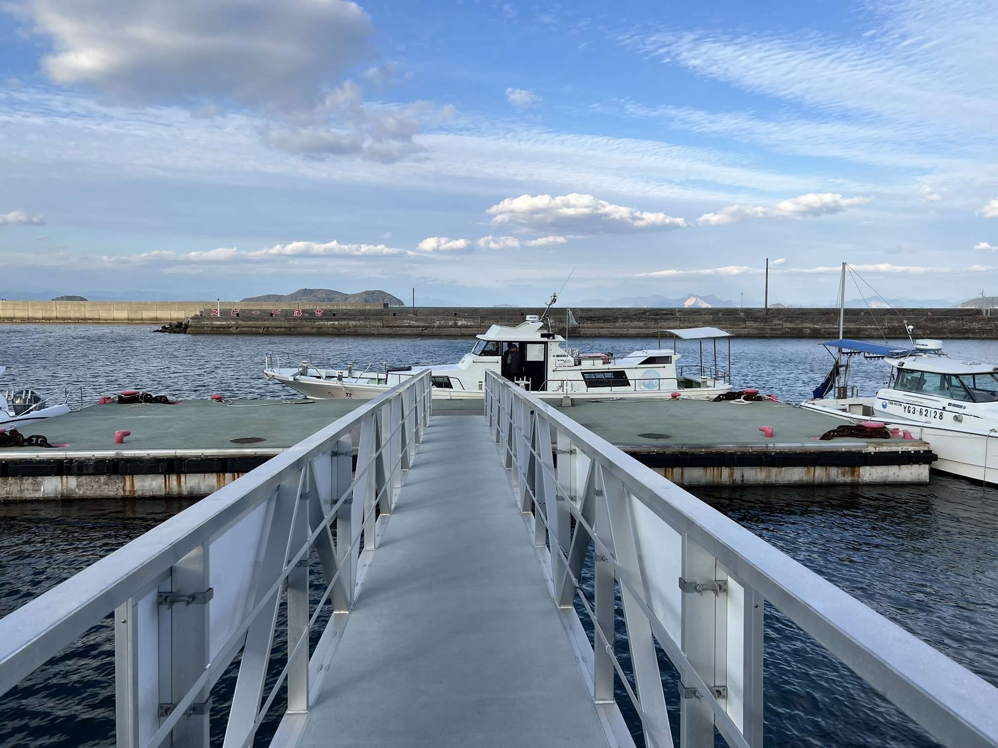 自転車を組み上げ、夕刻発送する荷物の準備を整えてから駐車場を離れ、08:40に川西マリンサービスの専用桟橋に到着。