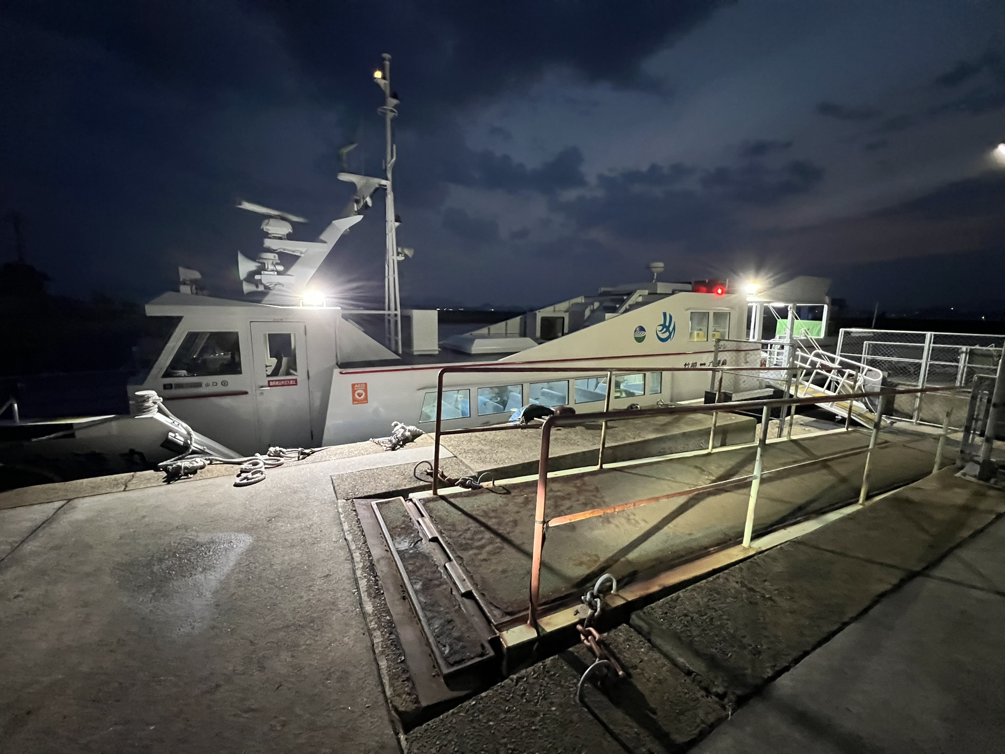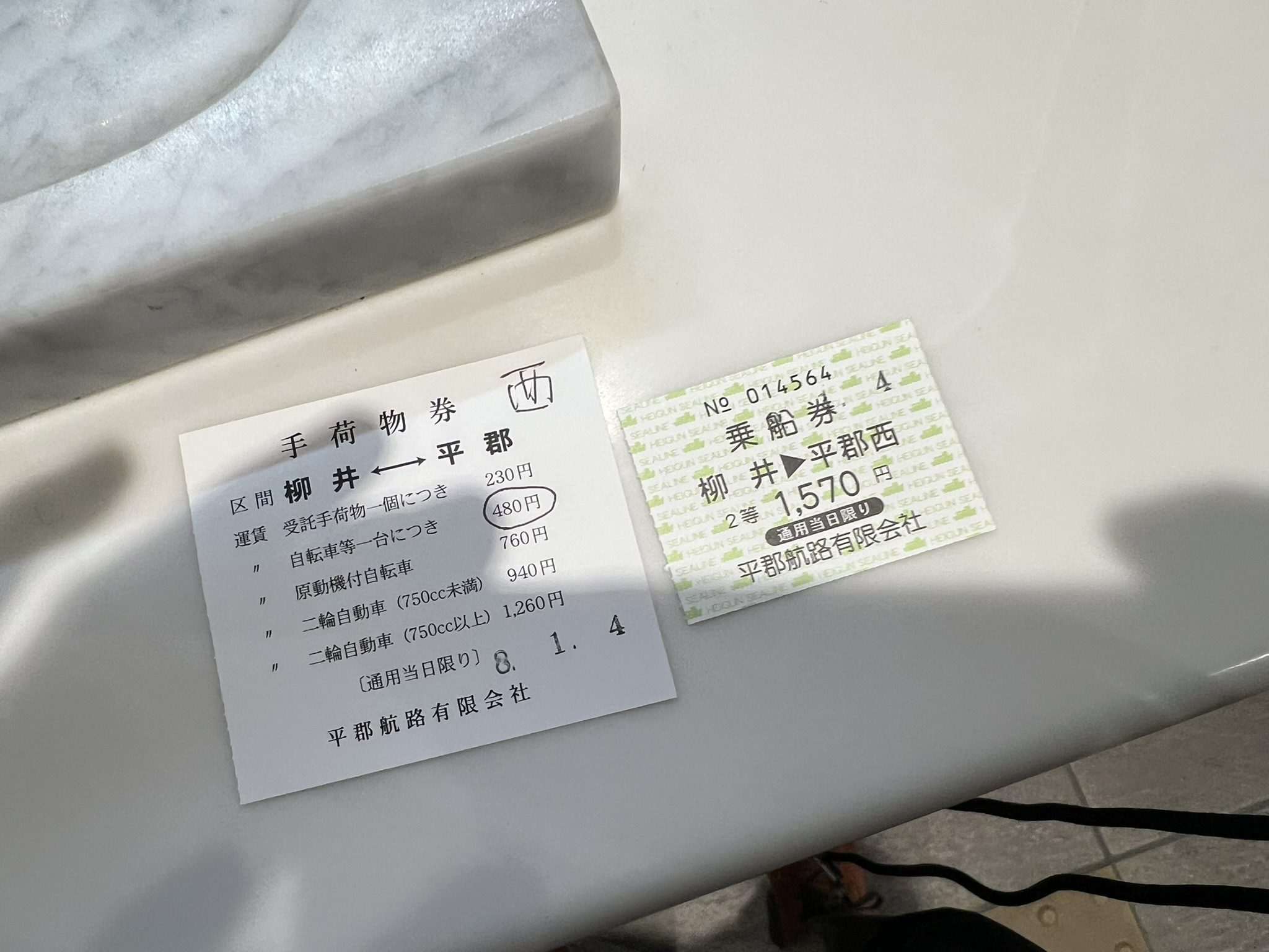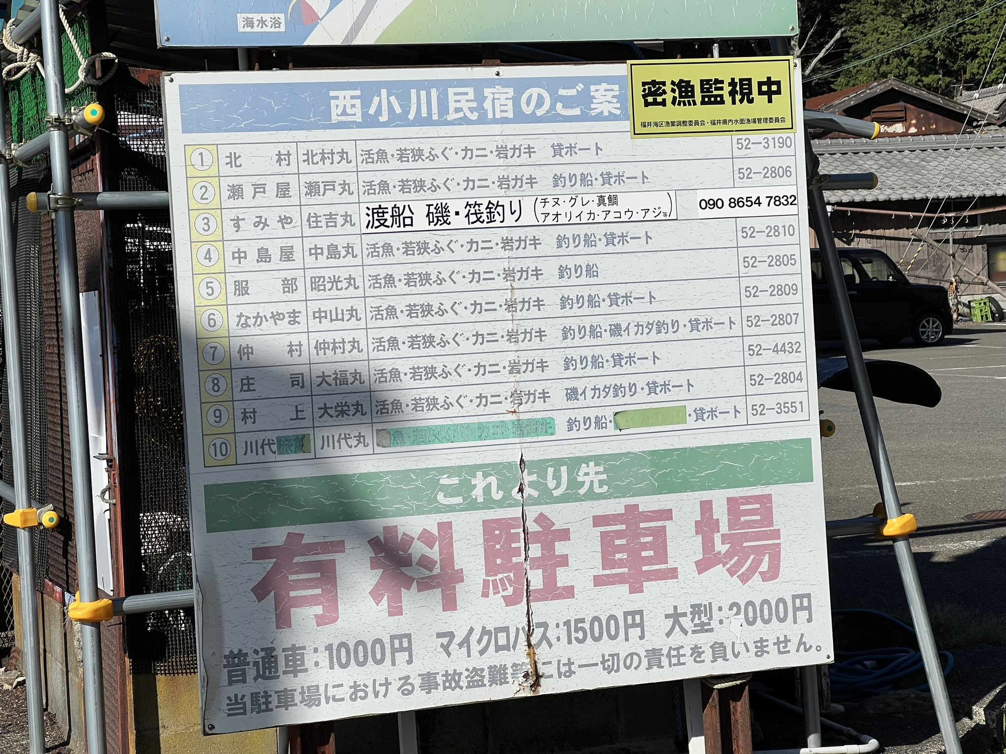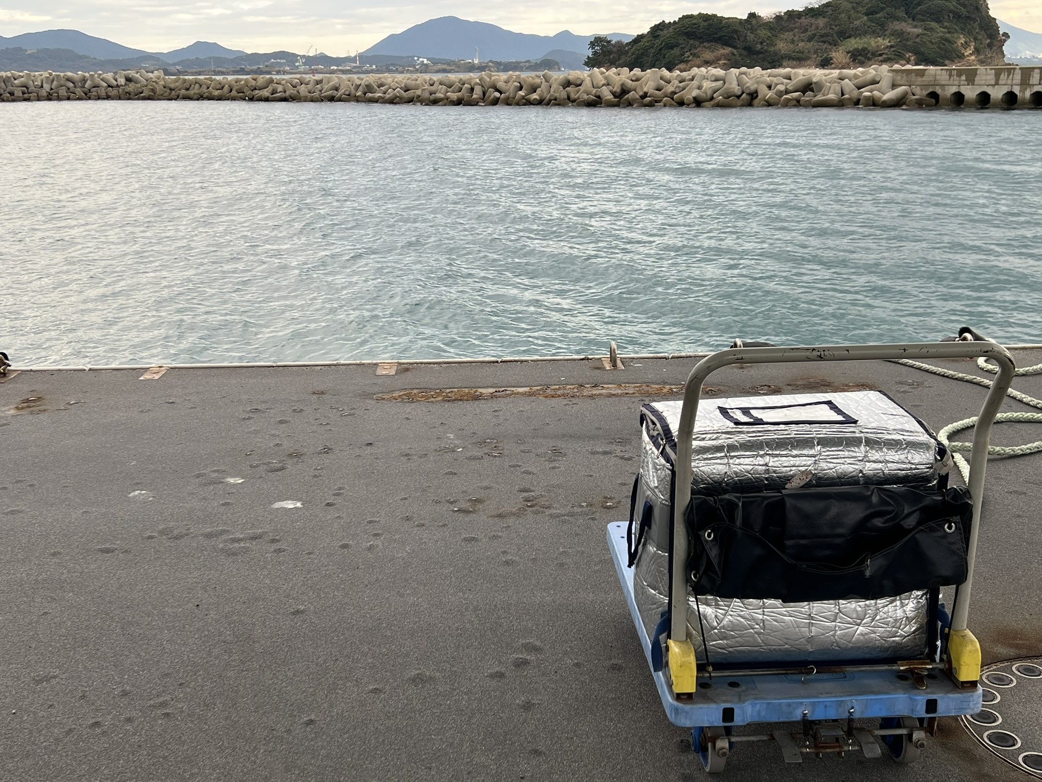 自転車を組み上げ、夕刻発送する荷物の準備を整えてから駐車場を離れ、08:40に川西マリンサービスの専用桟橋に到着。