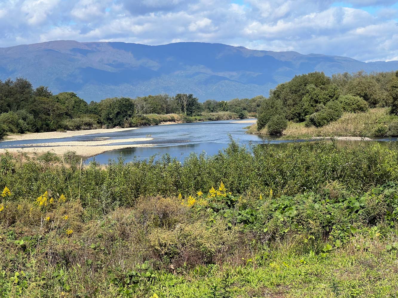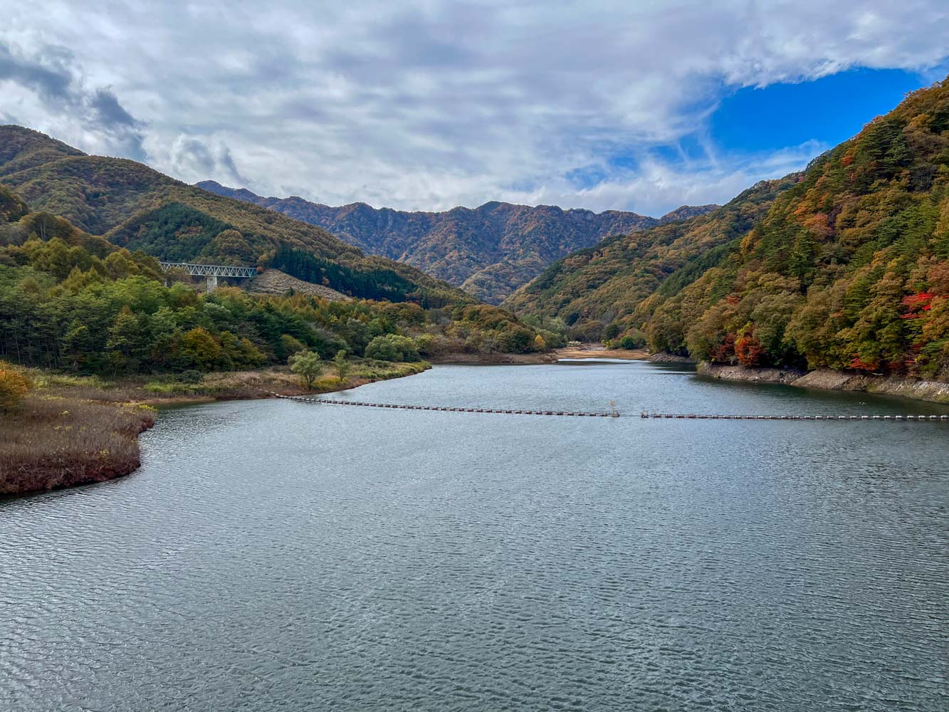 さめうらダムは化粧直しの工事中でダムには近寄れず、当然左岸と右岸の行き来もできなかった。