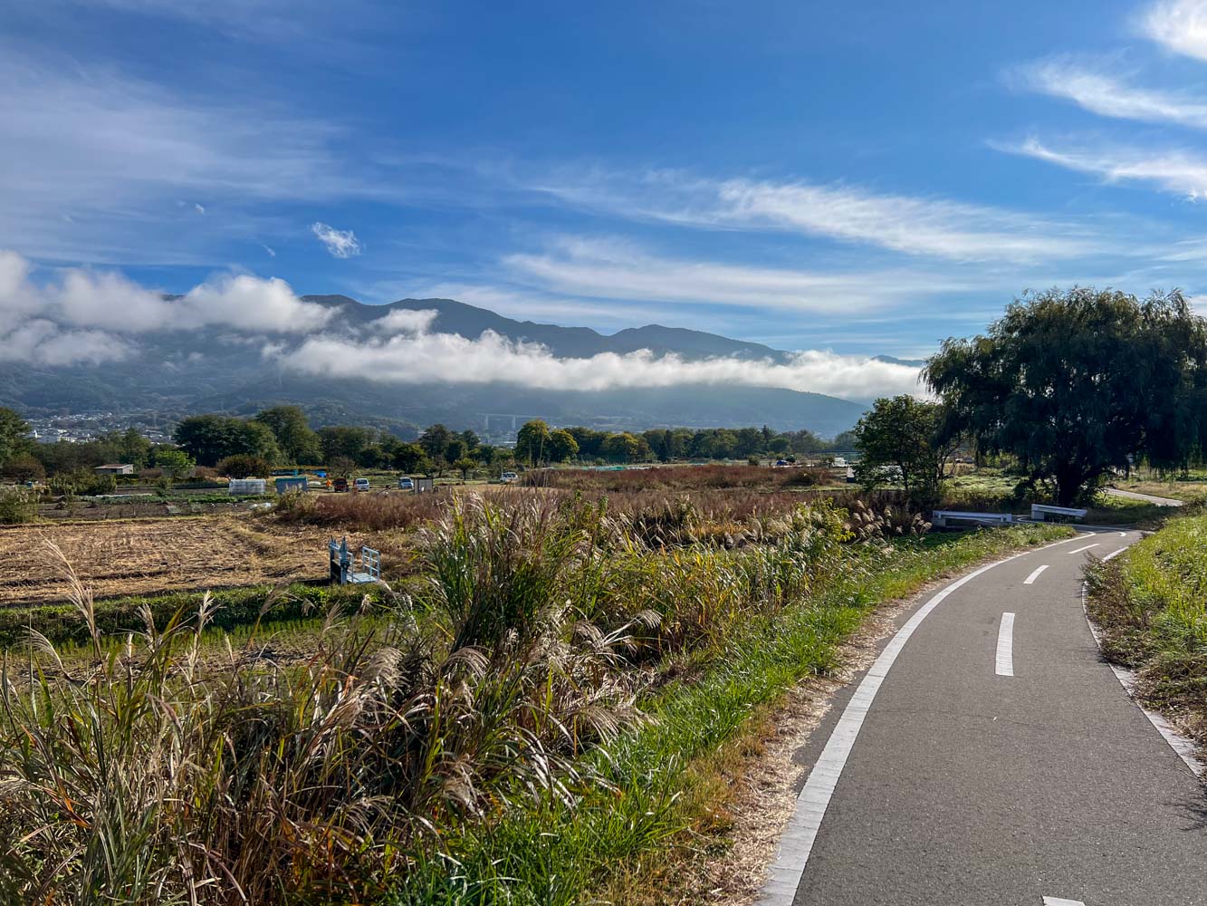 誰も走ってない旧道には、懐かしい日本の風景がいっぱい。