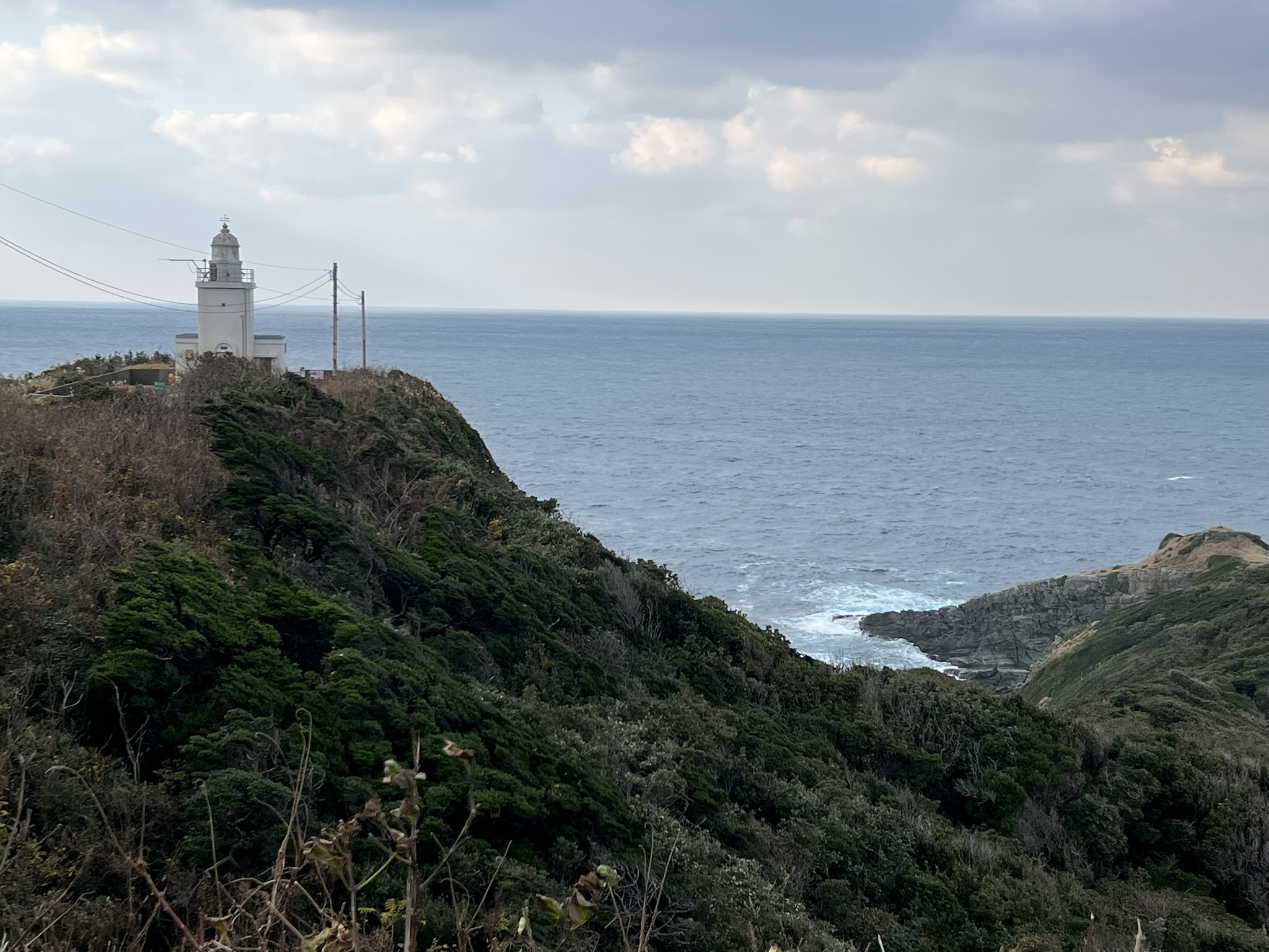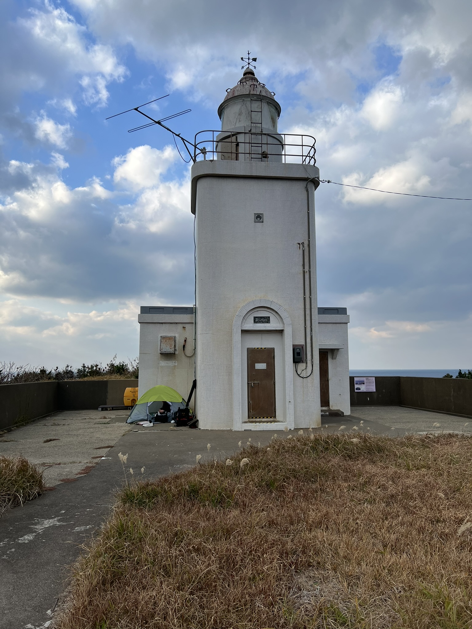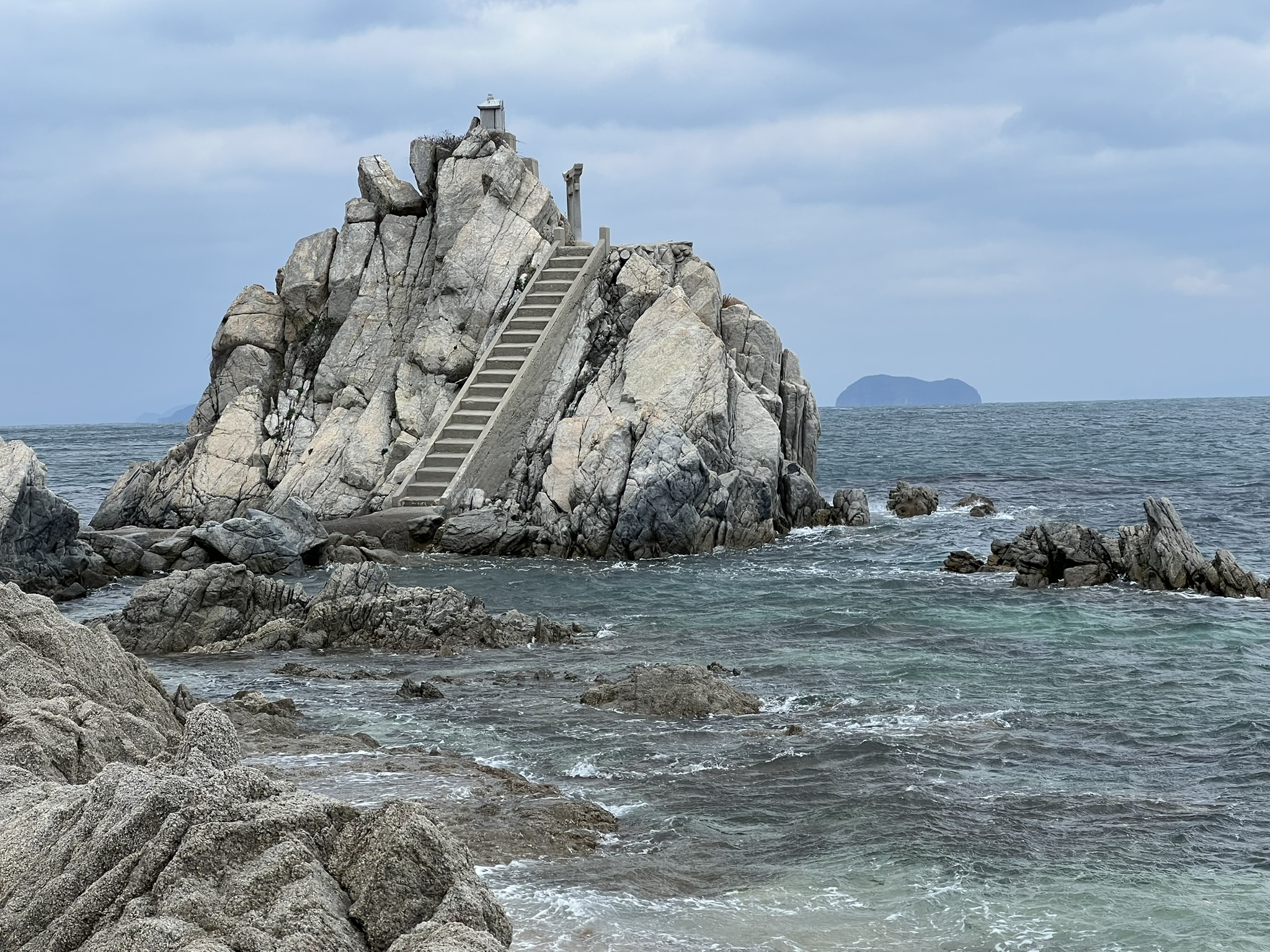 南端の灯台わきの砂浜に上陸。灯台までは浜から階段があった。