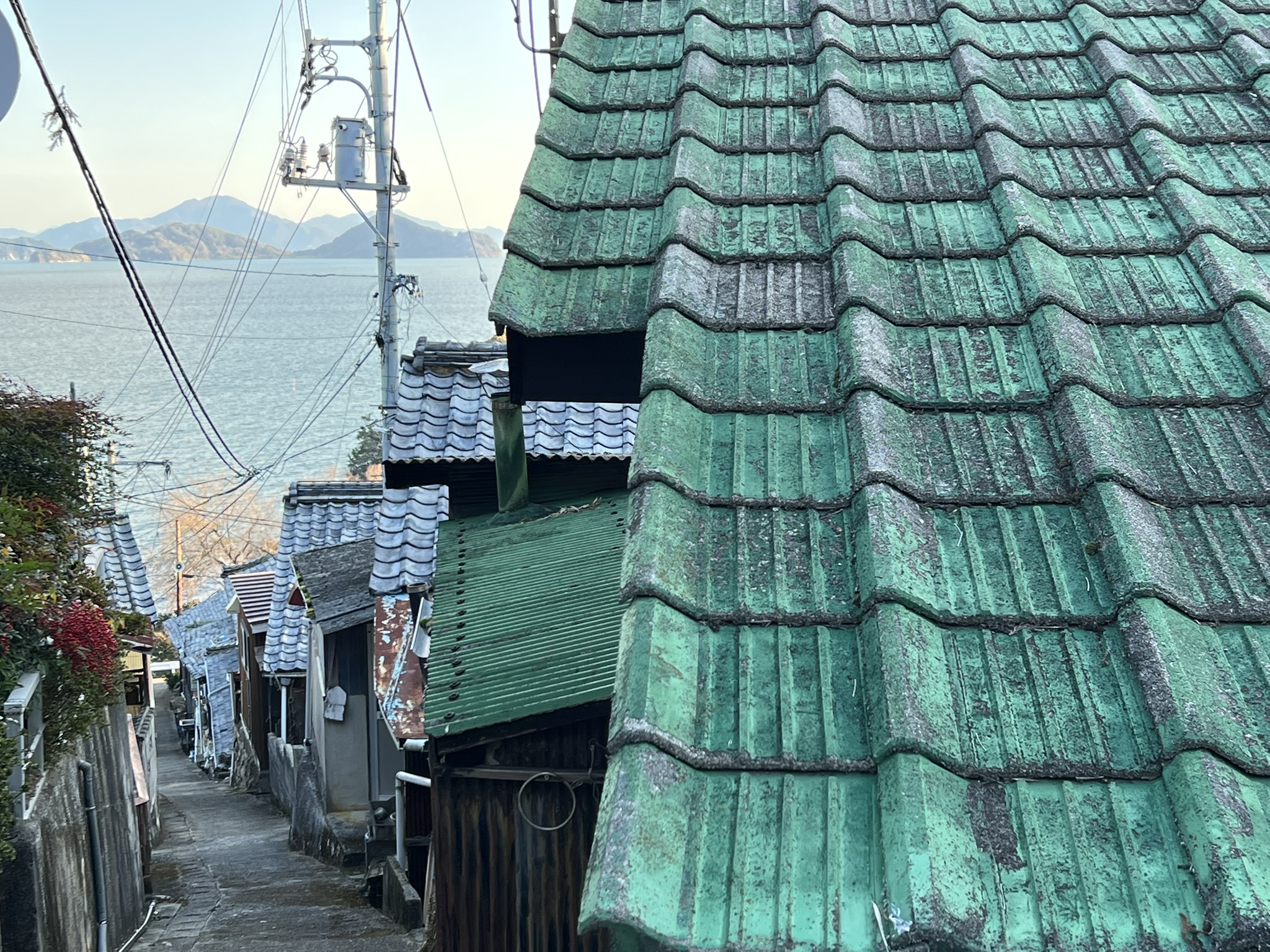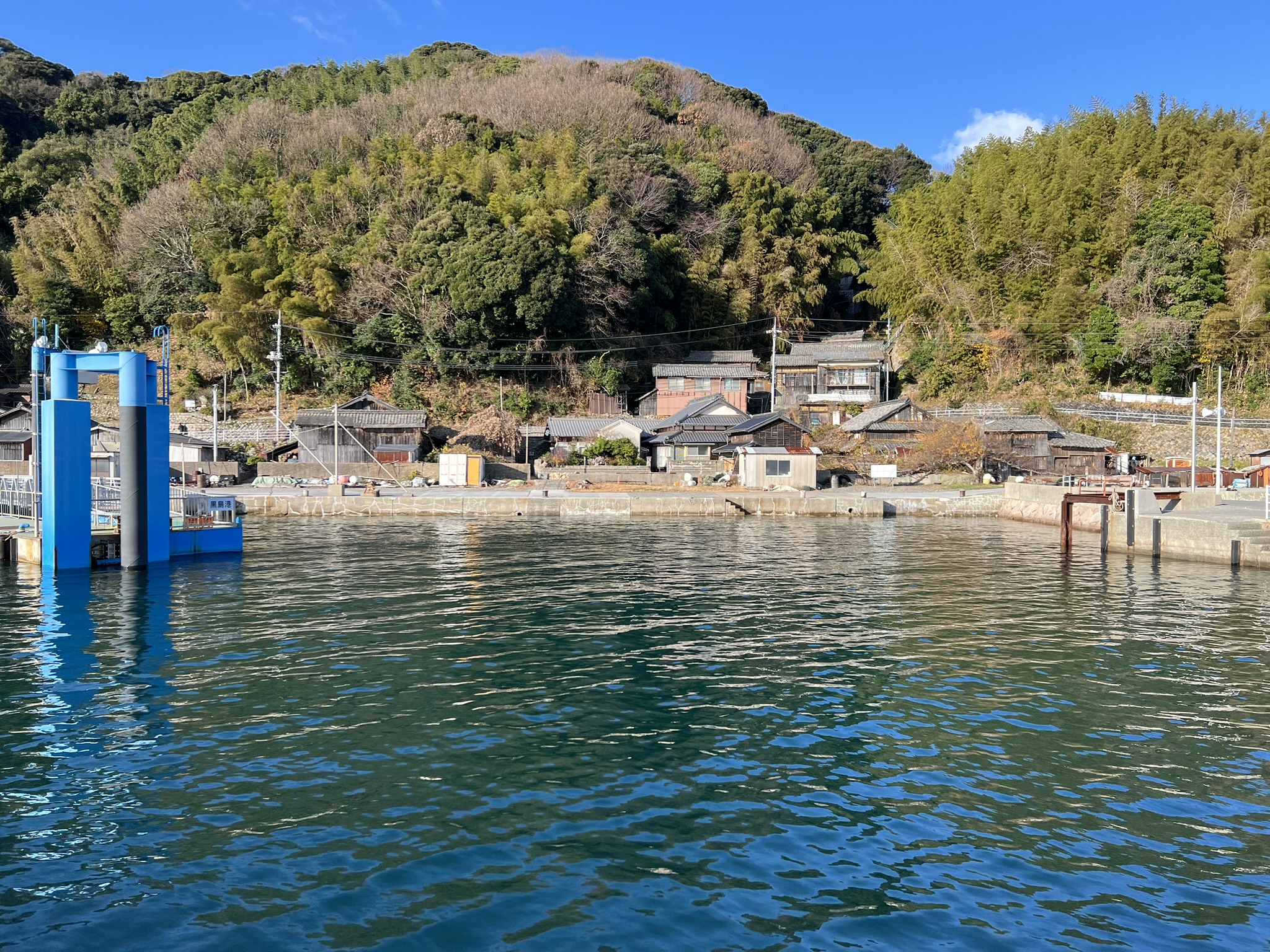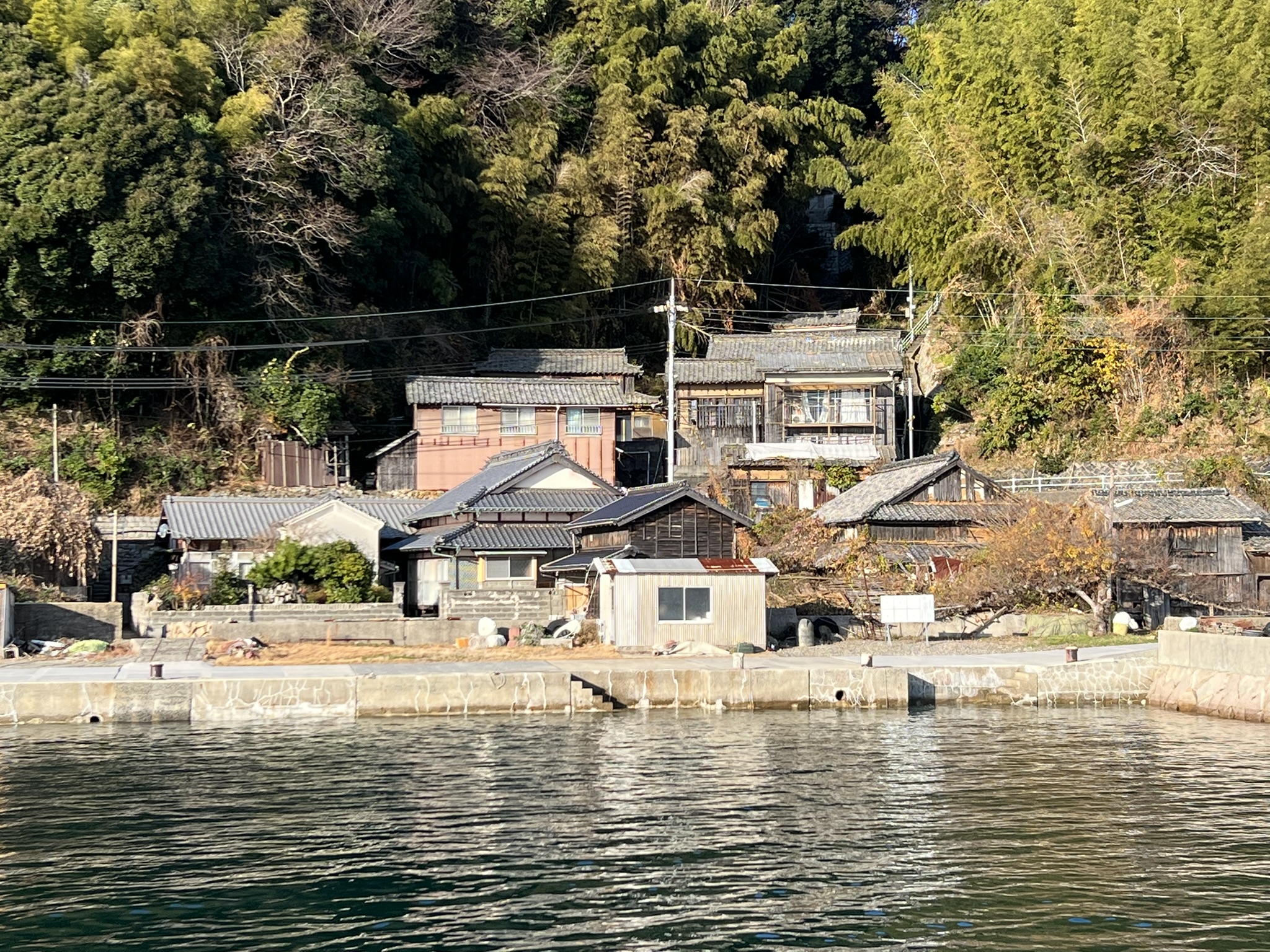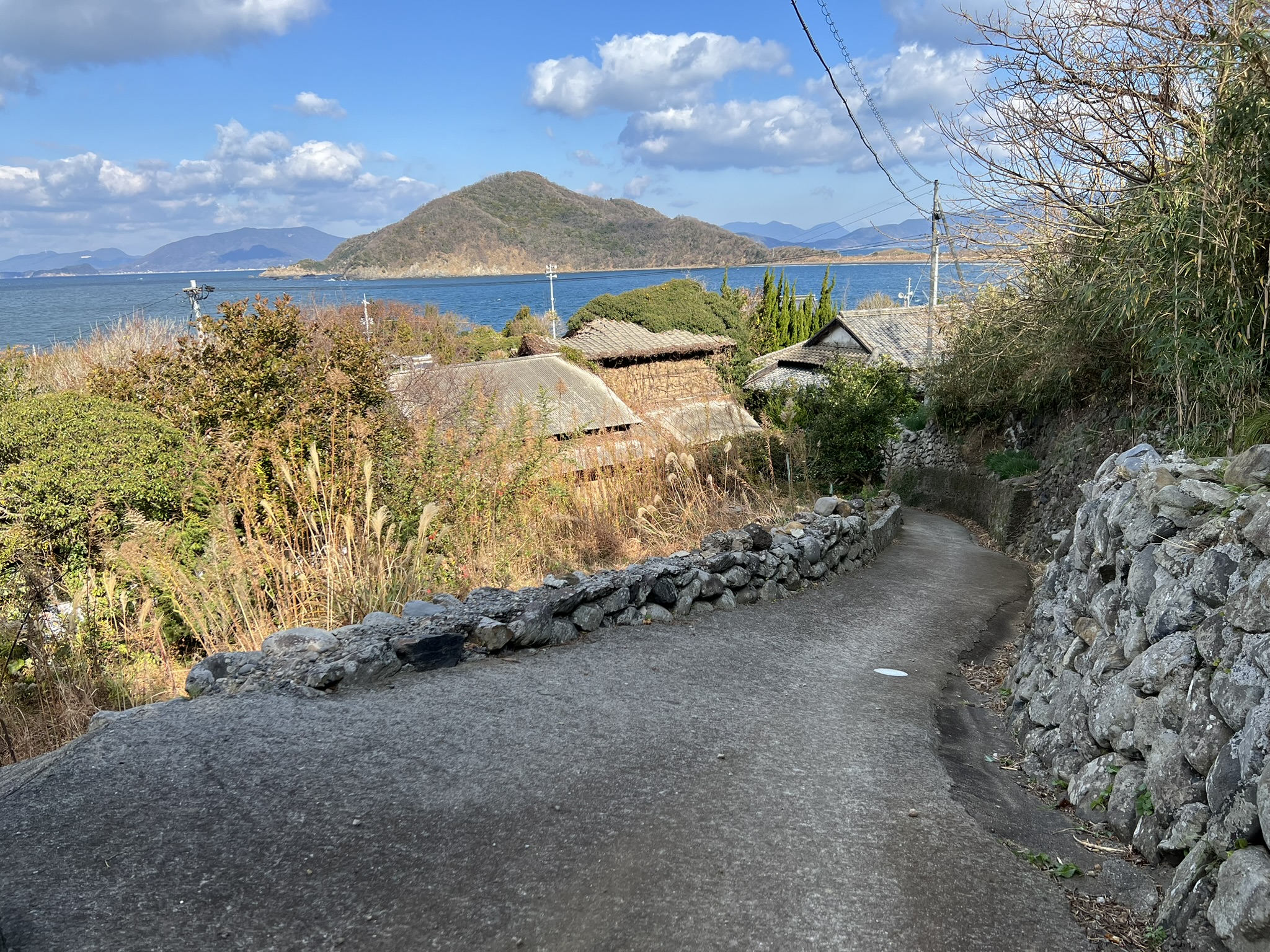 直島本村港の対岸にある島。その昔は、中学生たちは、直島との間の短い瀬戸を、手漕ぎ船をこいで通学したという。