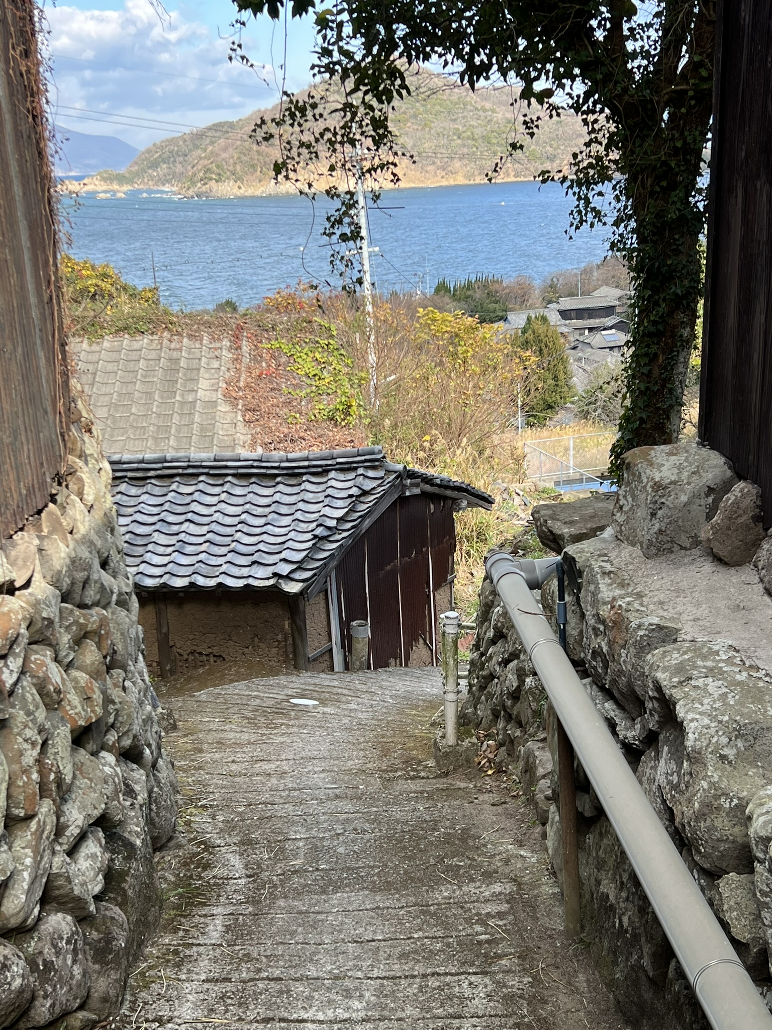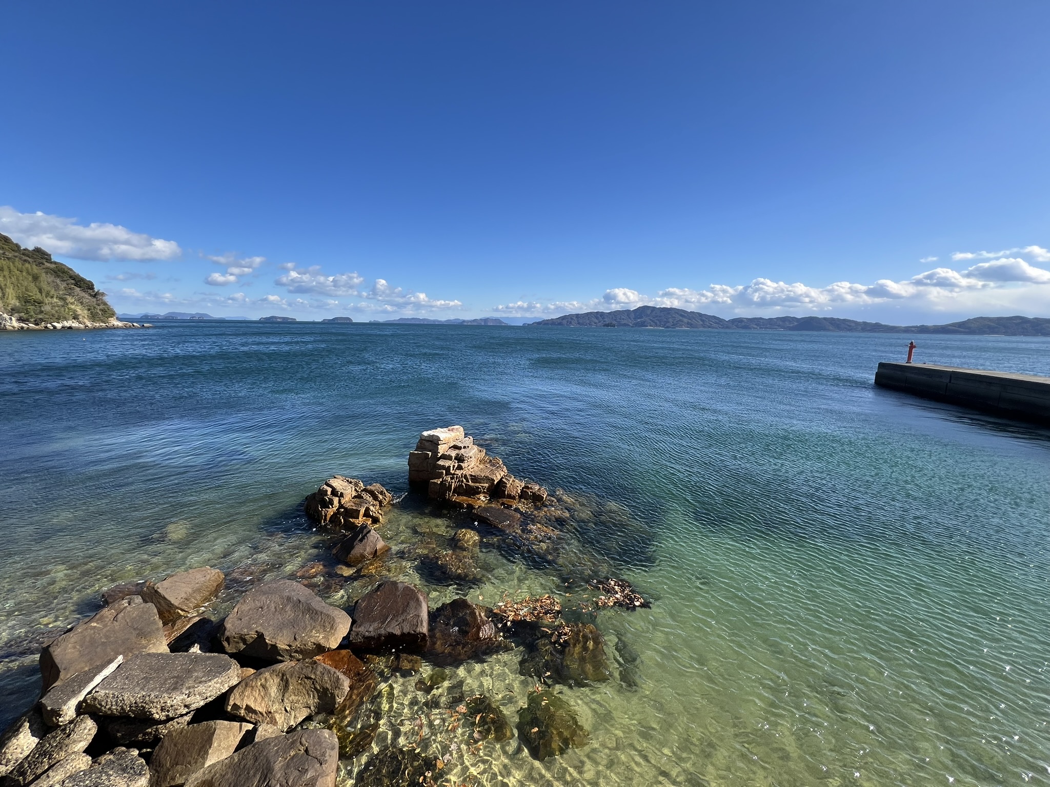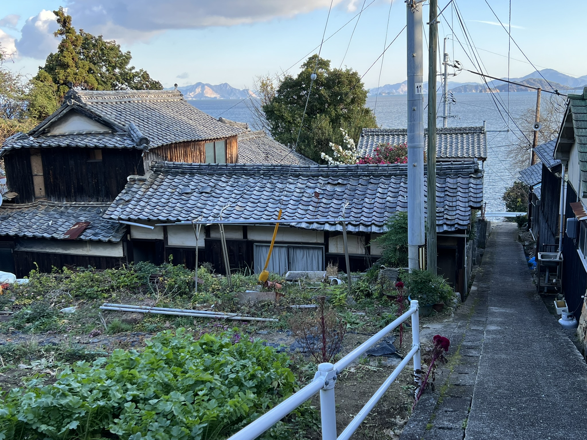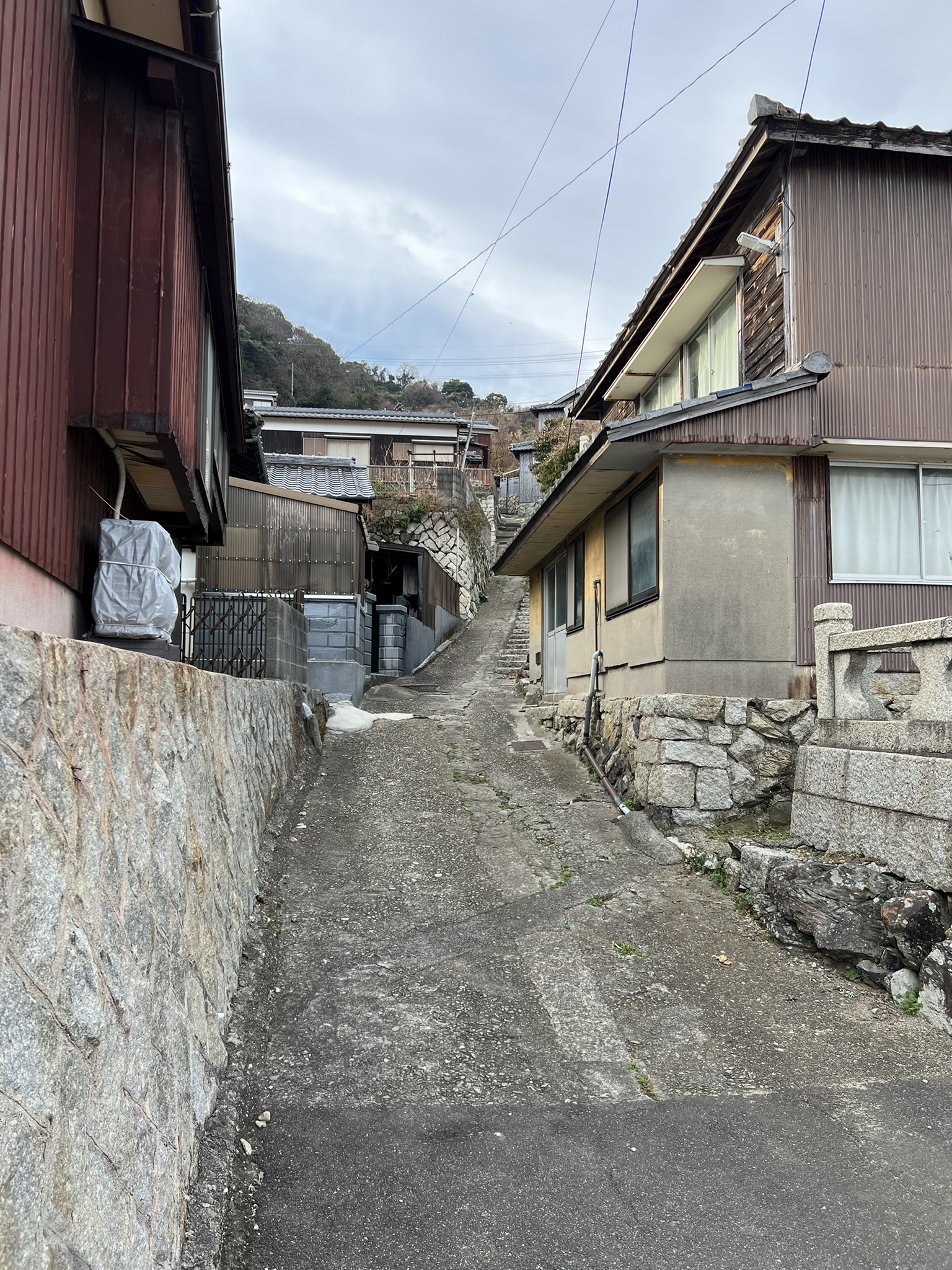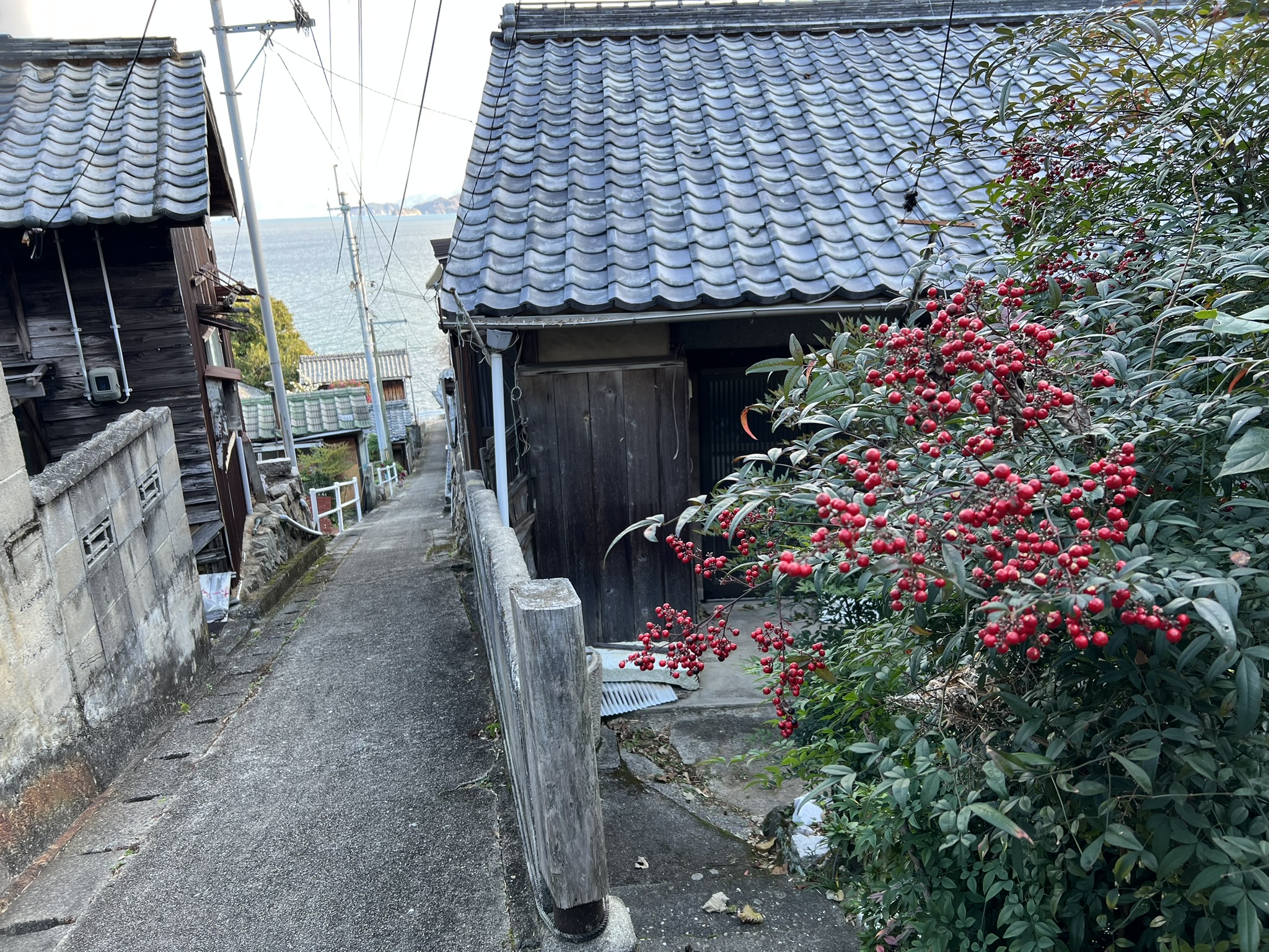 直島本村港の対岸にある島。その昔は、中学生たちは、直島との間の短い瀬戸を、手漕ぎ船をこいで通学したという。