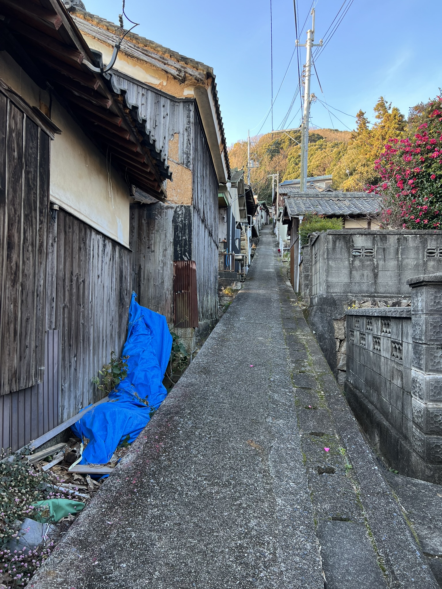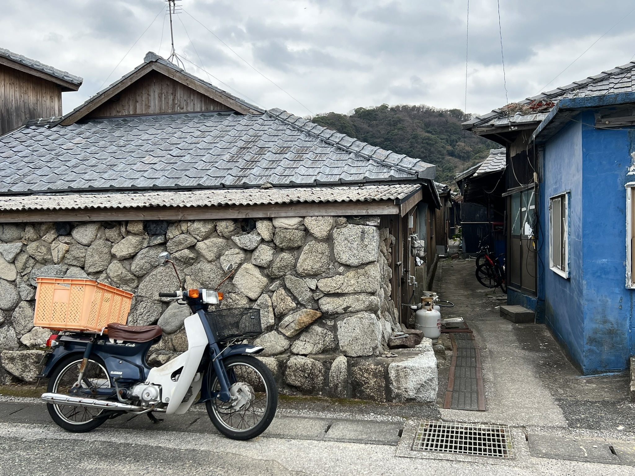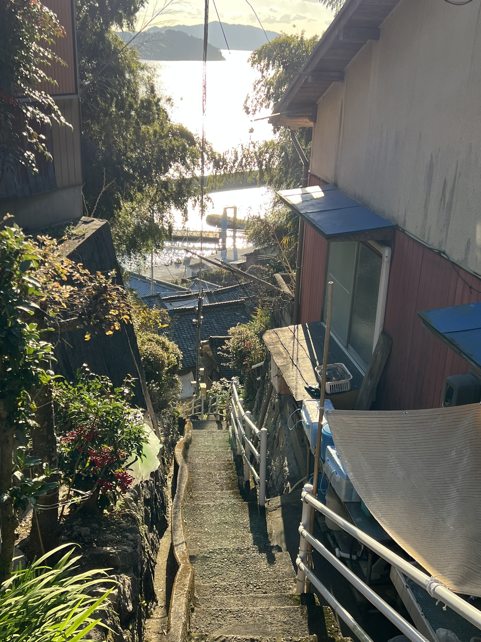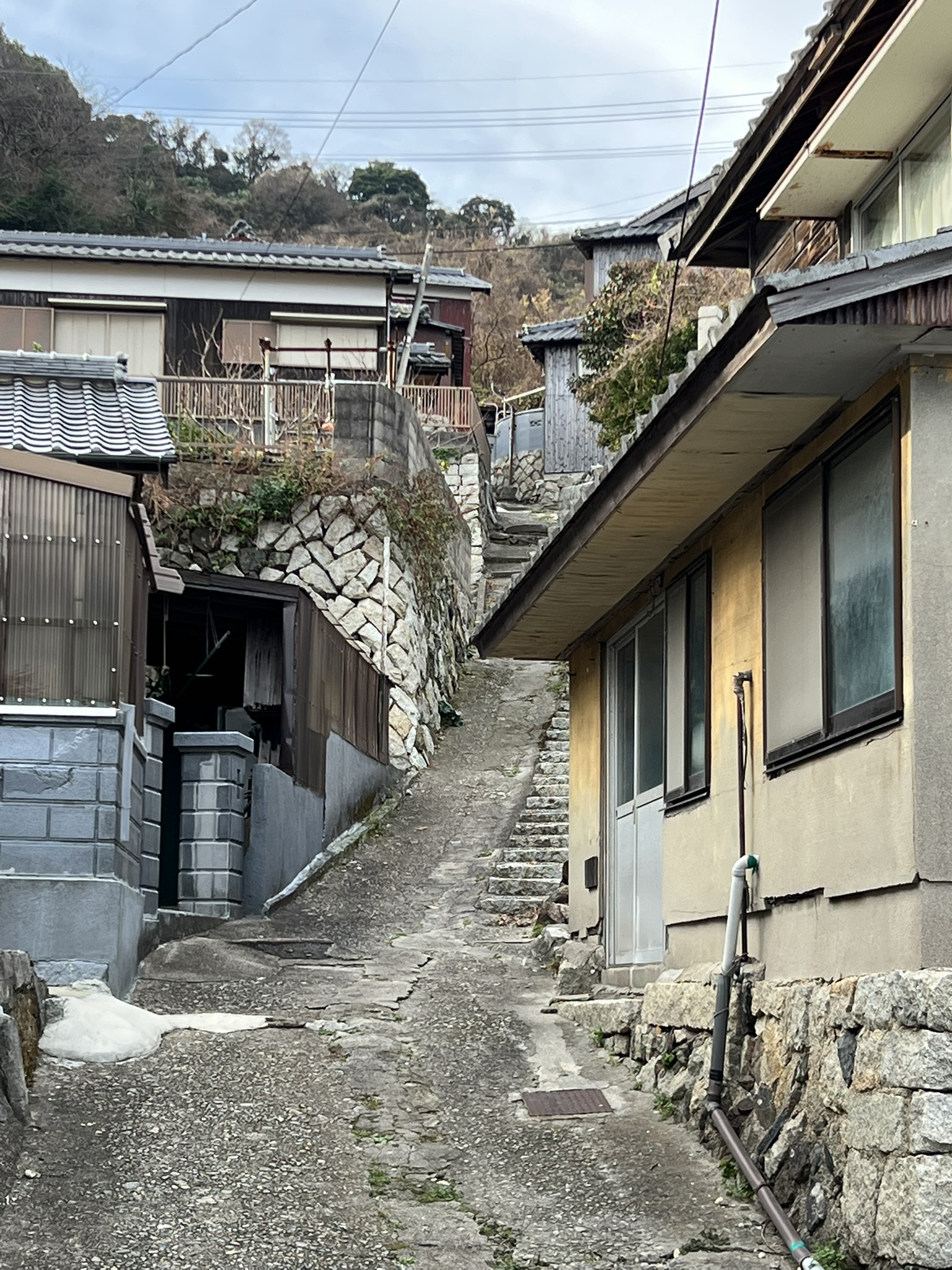 直島本村港の対岸にある島。その昔は、中学生たちは、直島との間の短い瀬戸を、手漕ぎ船をこいで通学したという。