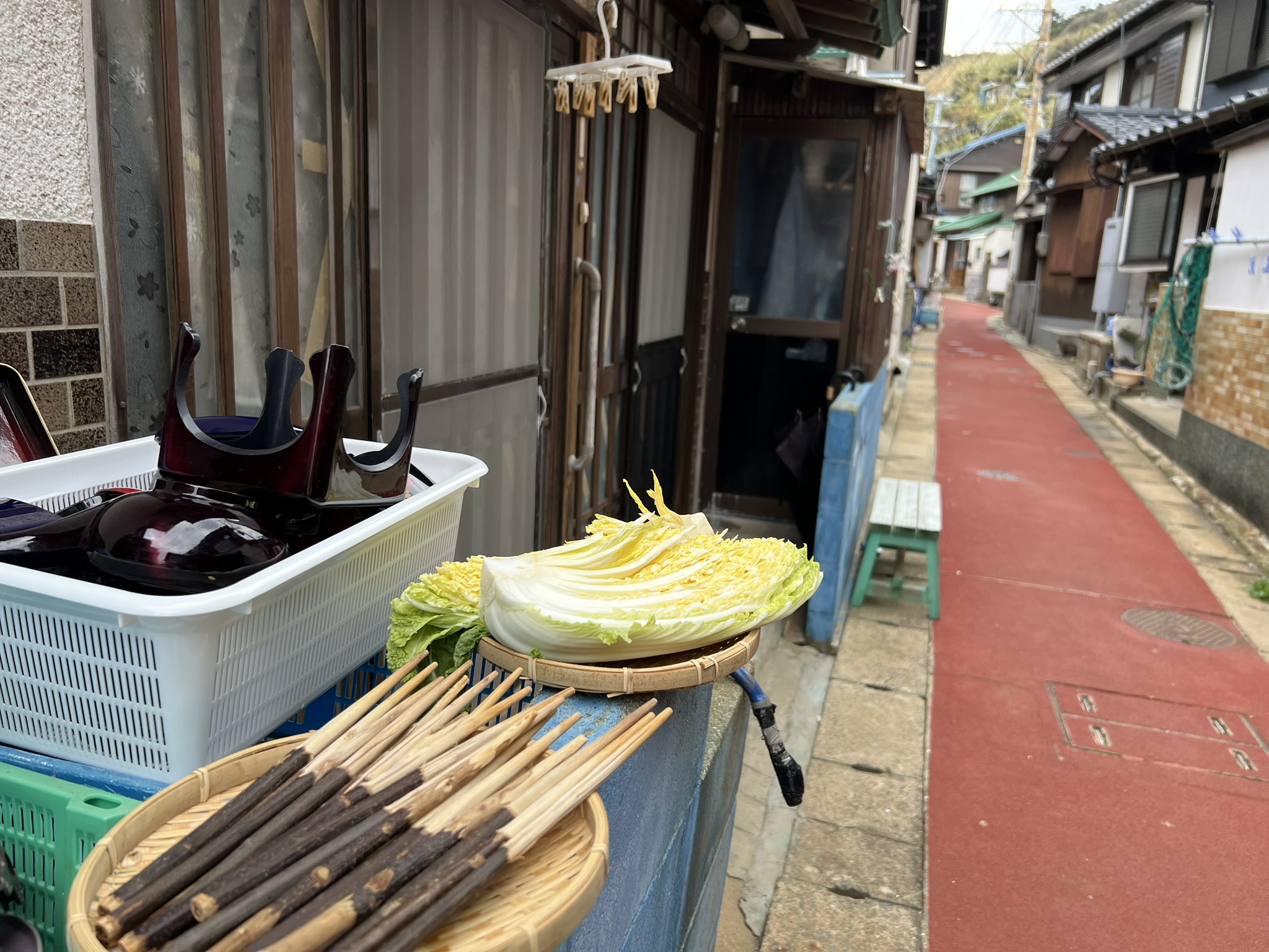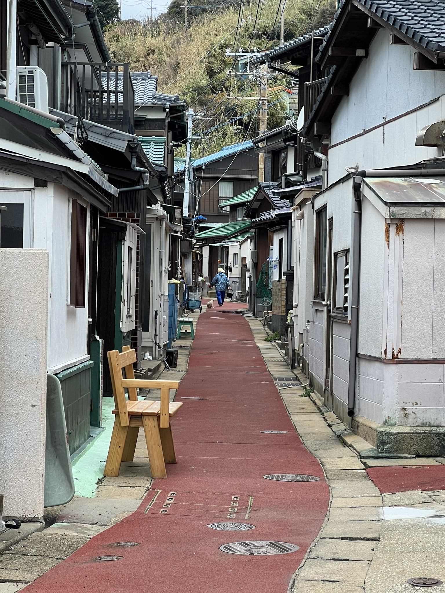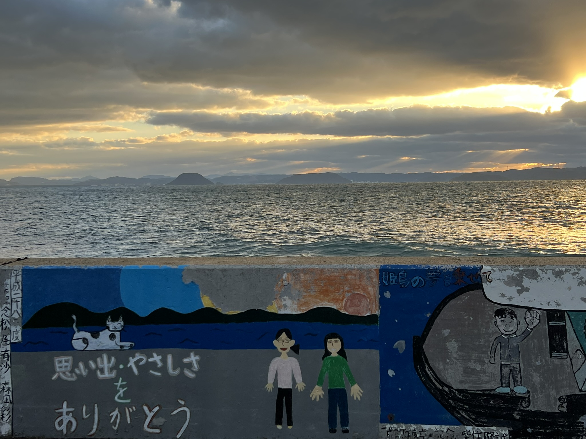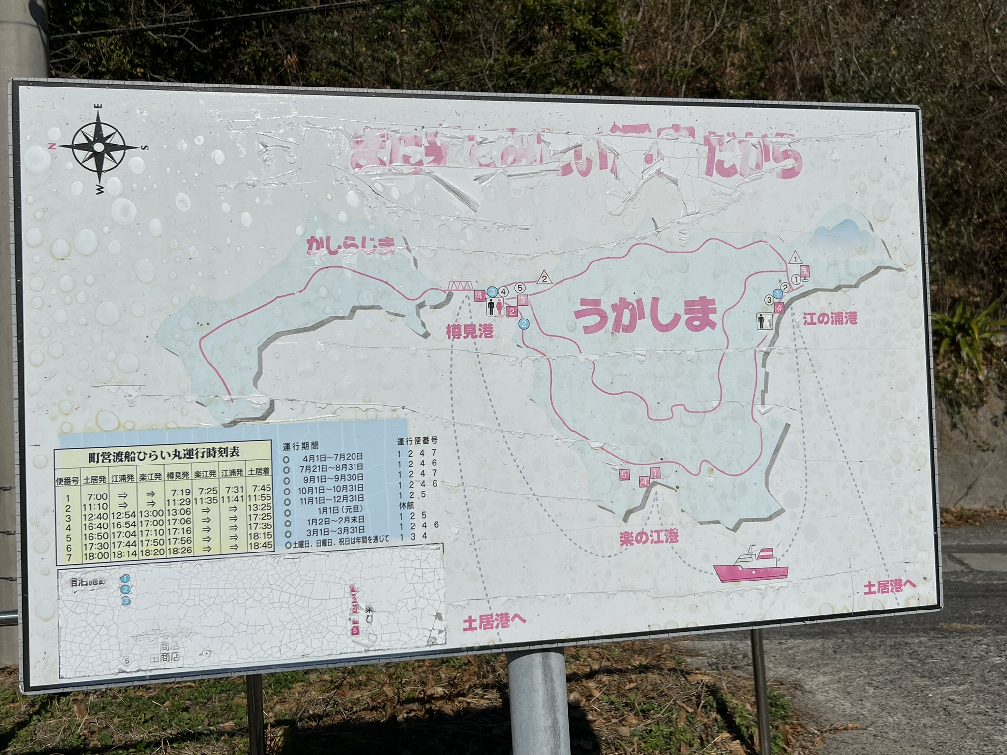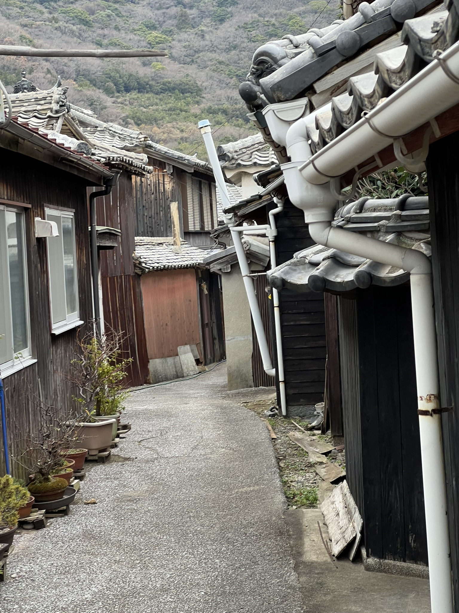 直島本村港の対岸にある島。その昔は、中学生たちは、直島との間の短い瀬戸を、手漕ぎ船をこいで通学したという。