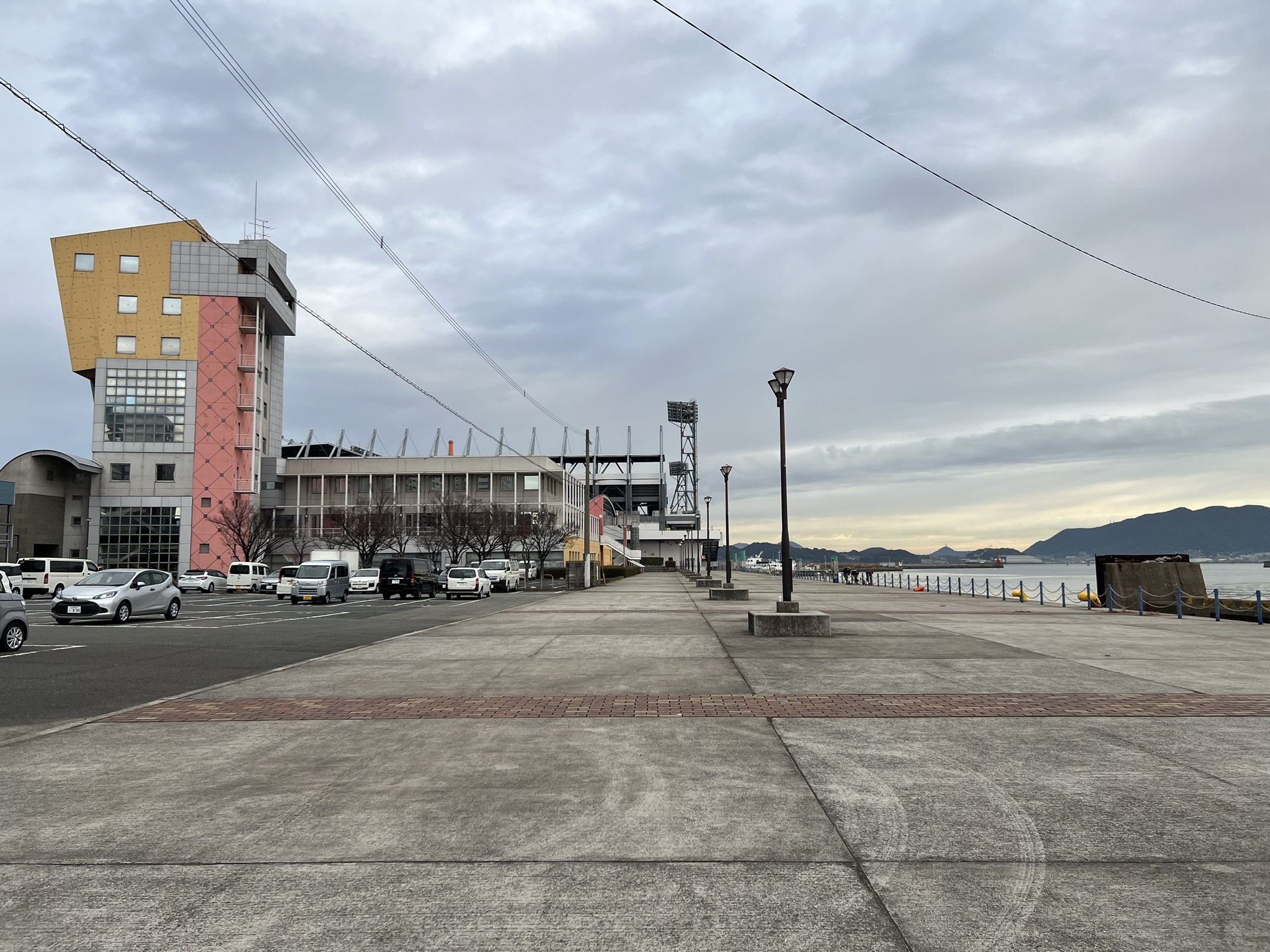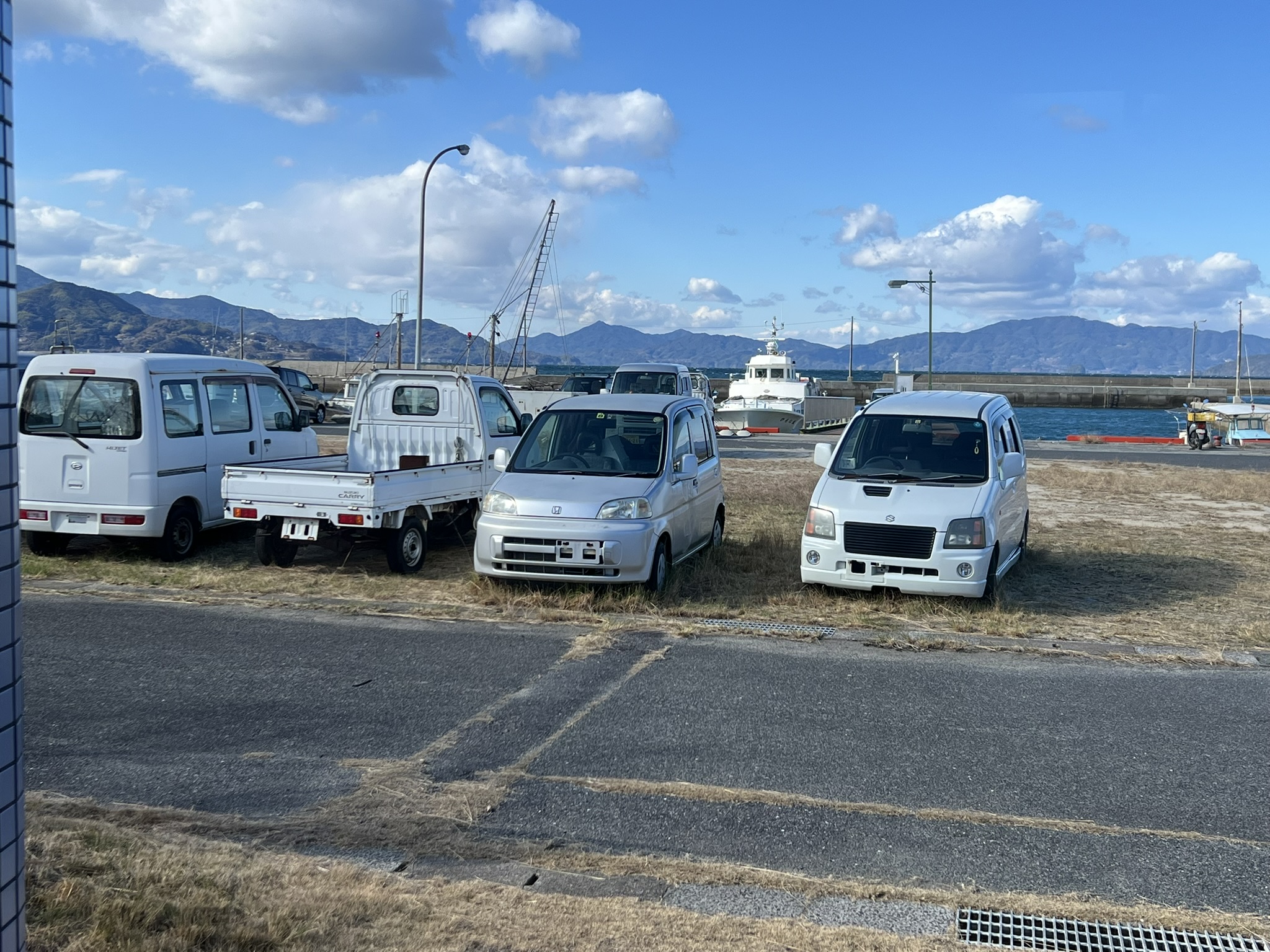08:10 宇野港に到着。産業振興ビル前の有料駐車場に車を停める。