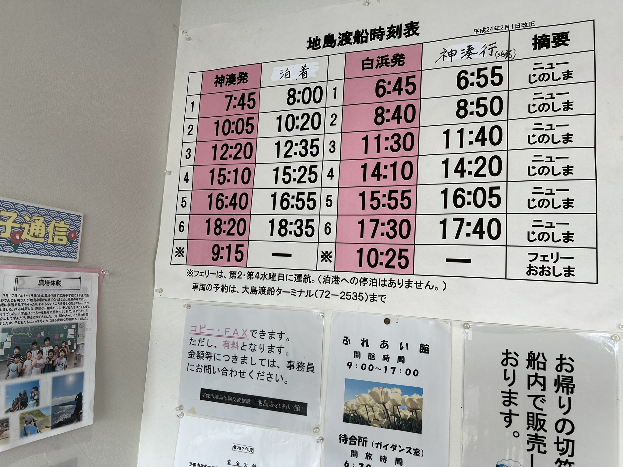 人口十数人で、児童生徒がいたころは通学用のスクールボートがあったが、今は定期船はなし。