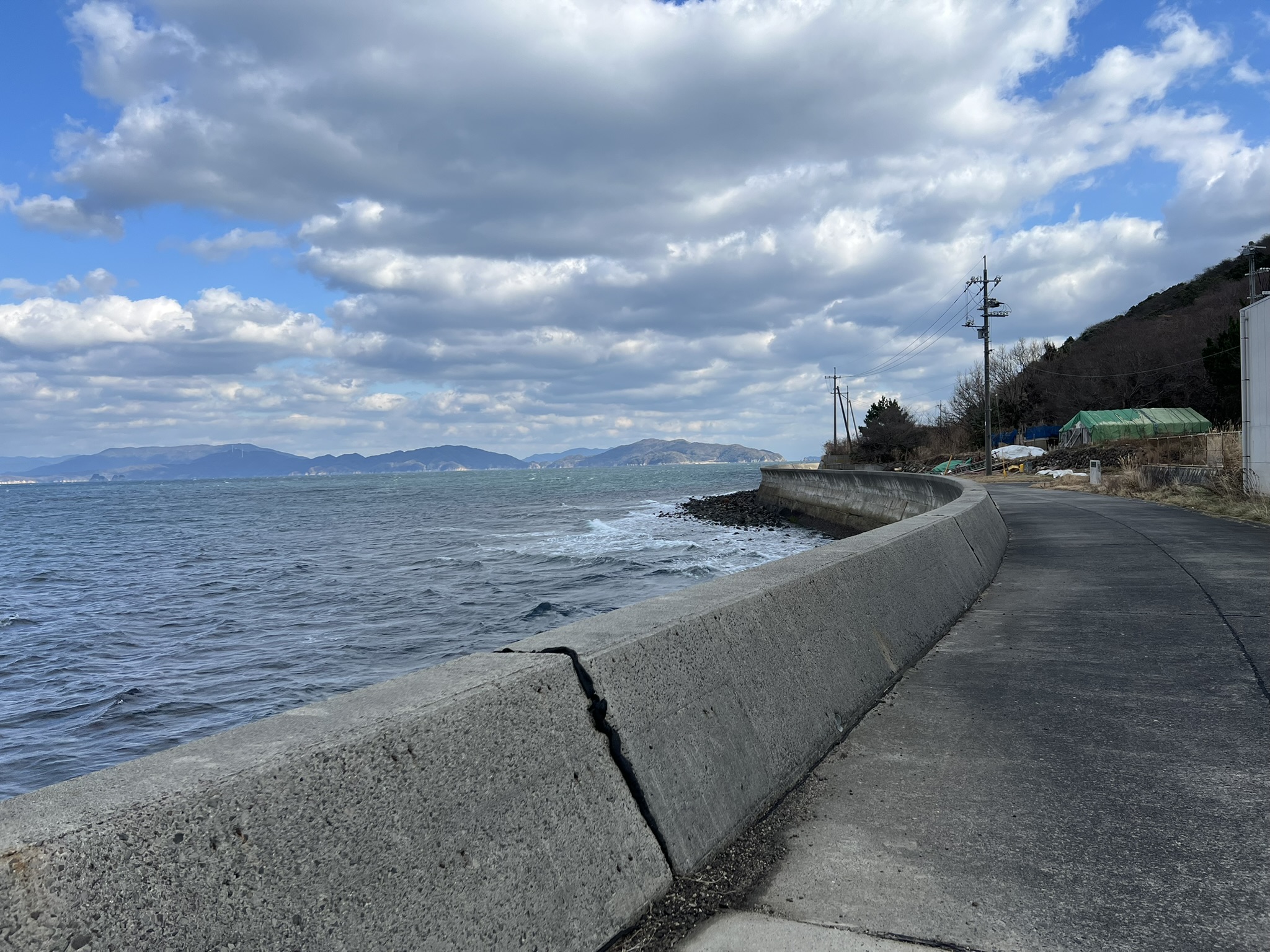 宇野港に戻る道すがら、川西さんが立ち寄ってくれたが、残念ながら満潮から引けてきたばかりだったので岩礁は望めず。
