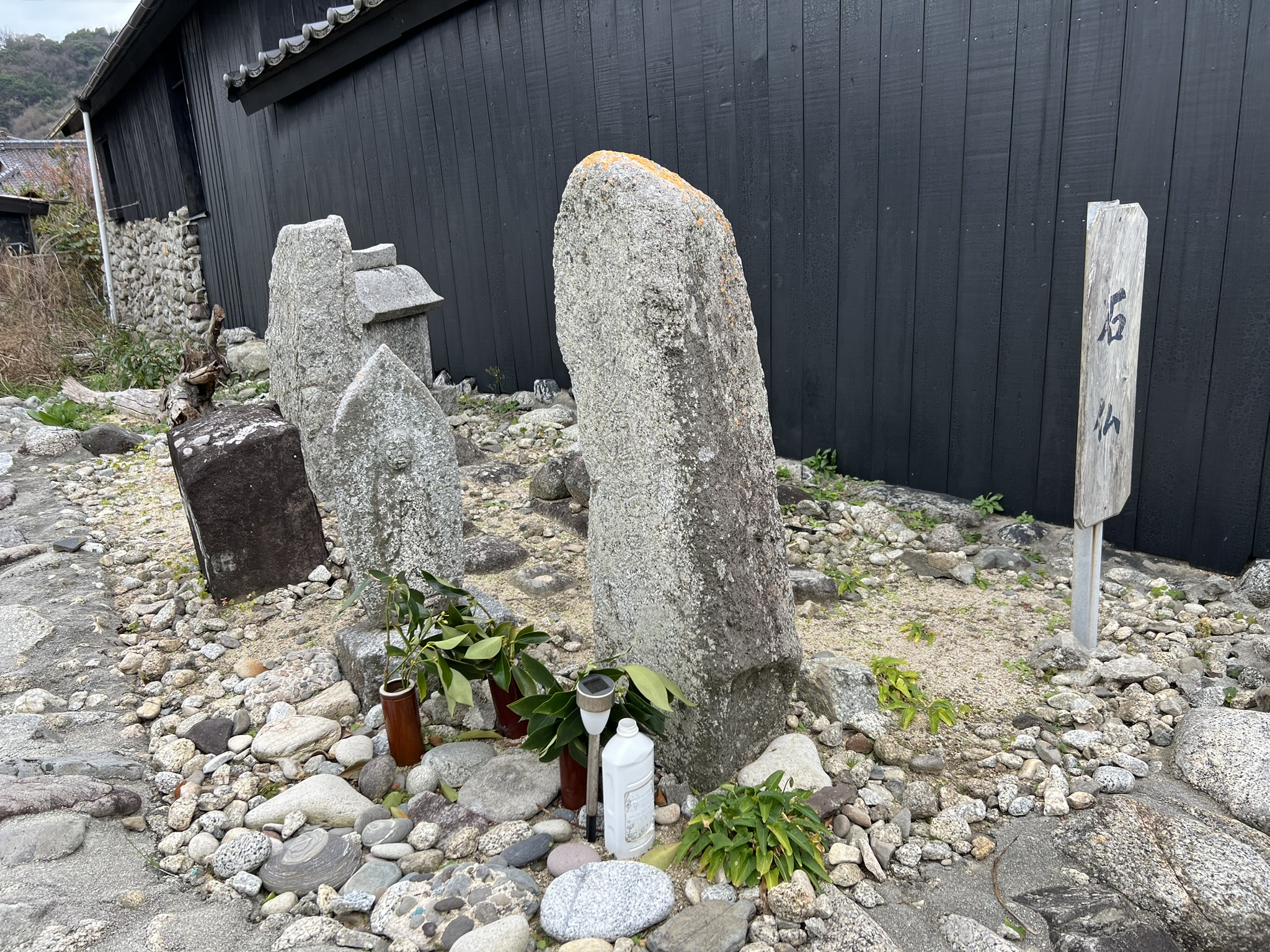 その昔は、島の庄屋の娘「三宅まち」がこの浜で船宿を営み、港として賑わっていたそうで、浜辺の石灯籠がには「三宅まち」の名前が刻まれている。この石灯籠はかつての船宿の庭にあり、灯台の役目をしていたという。