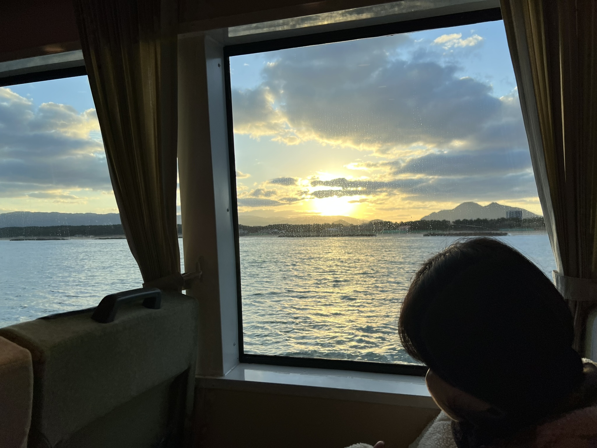 その昔、花嫁だった、島のご婦人と一緒に瀬戸を渡る。
