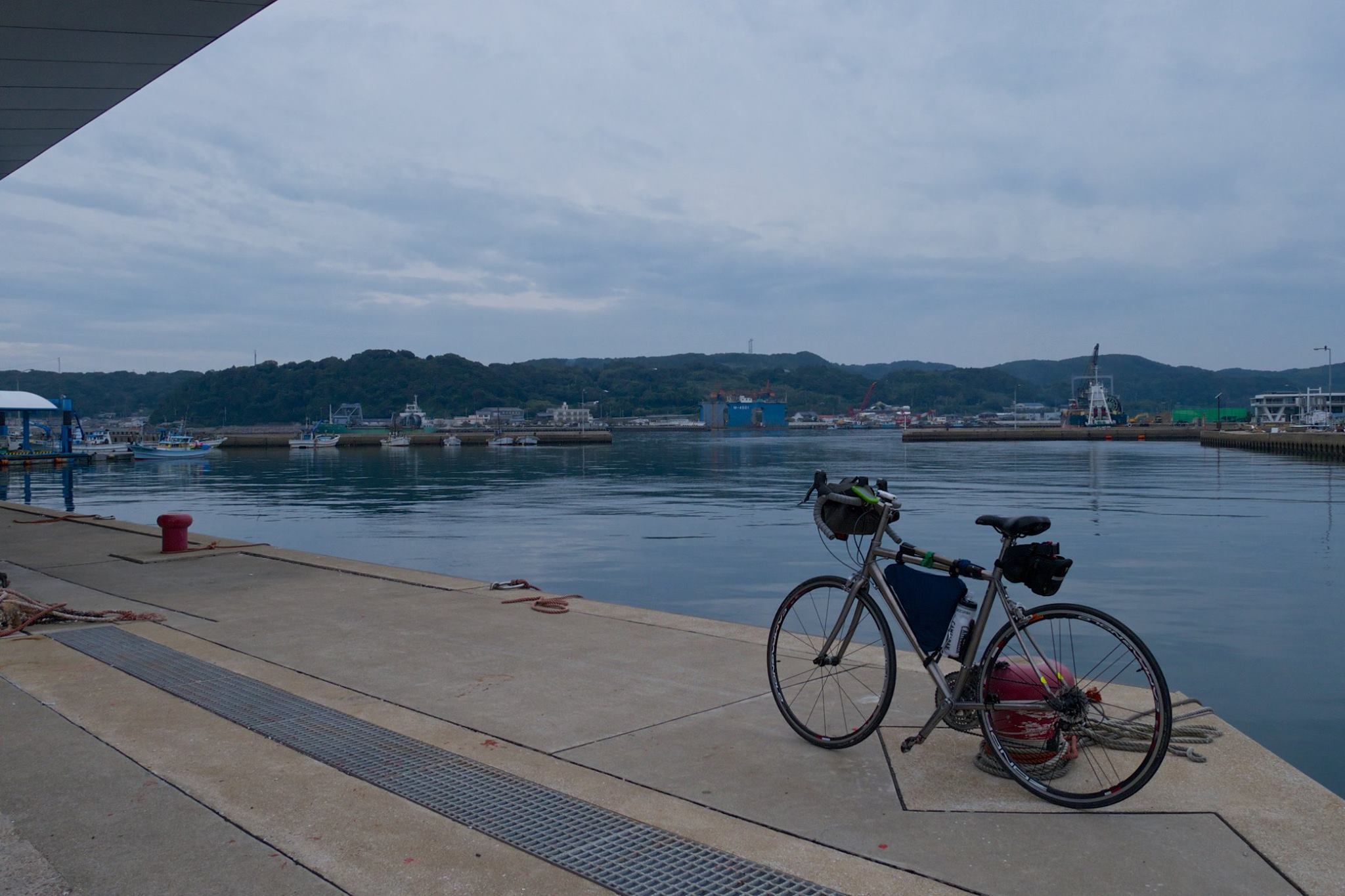 日出の宿から大分空港までを走って、マリンピアむさしのトイレで着替える。空港前で自転車をパッキング。飛行機輪行。