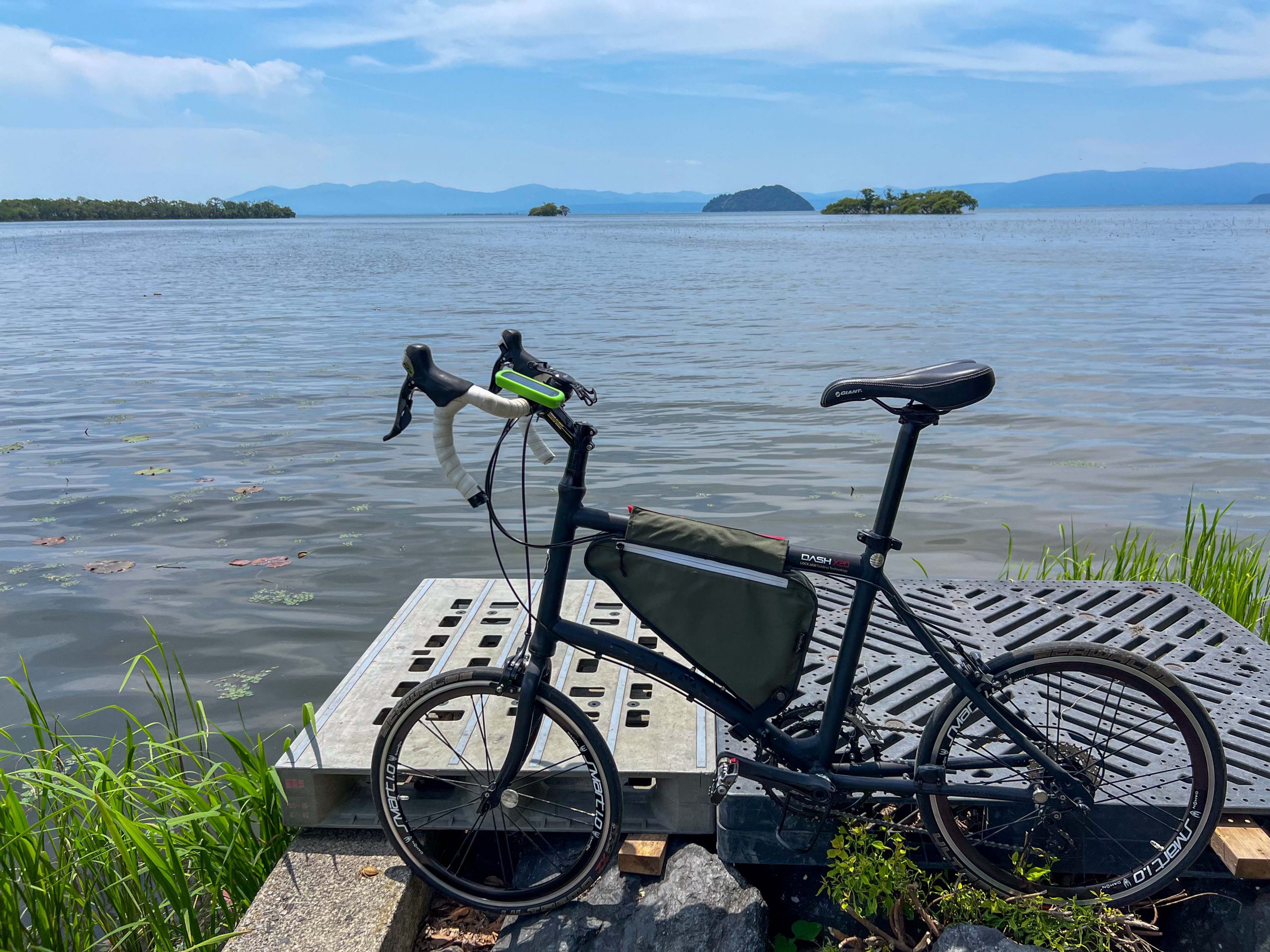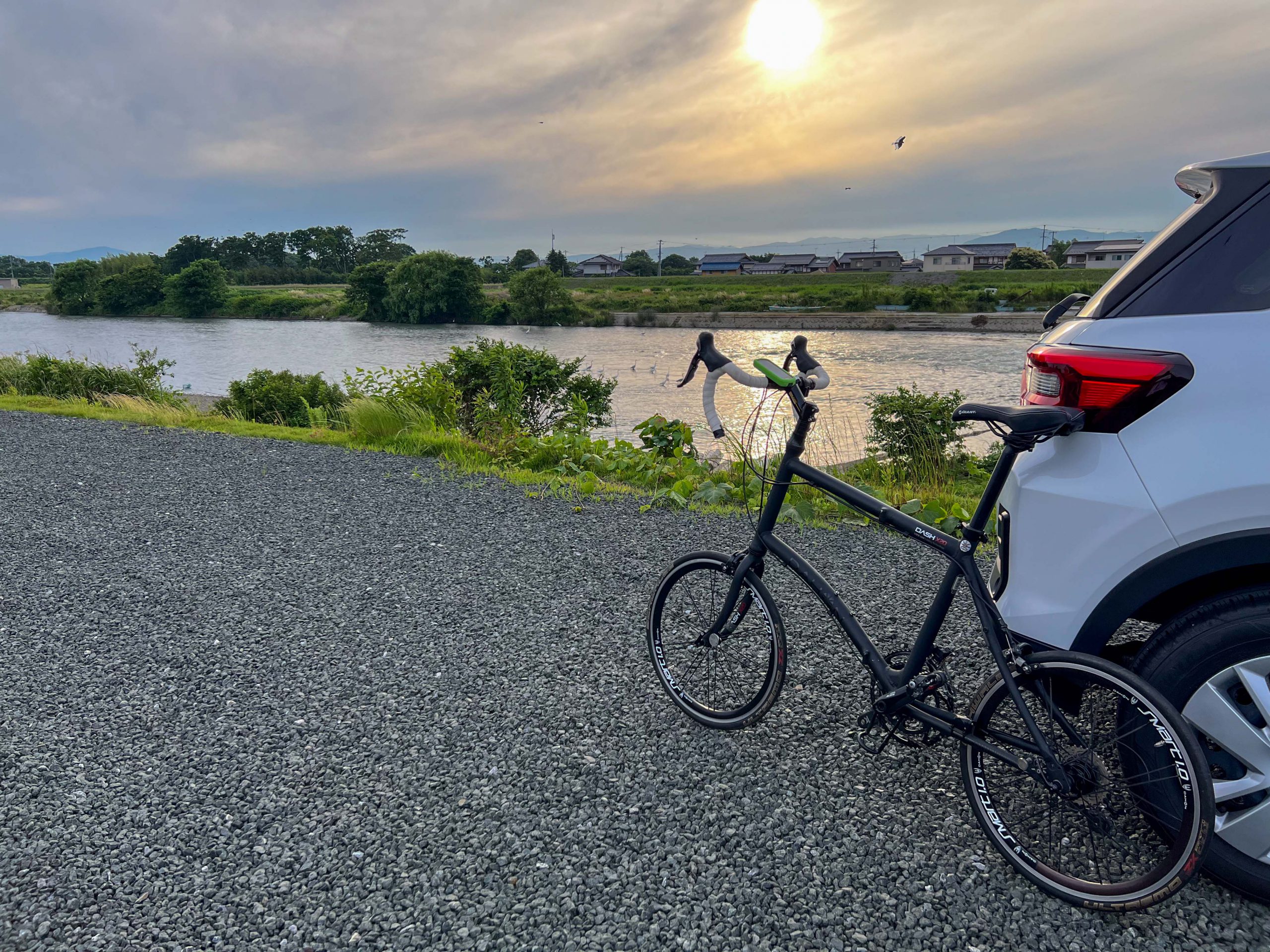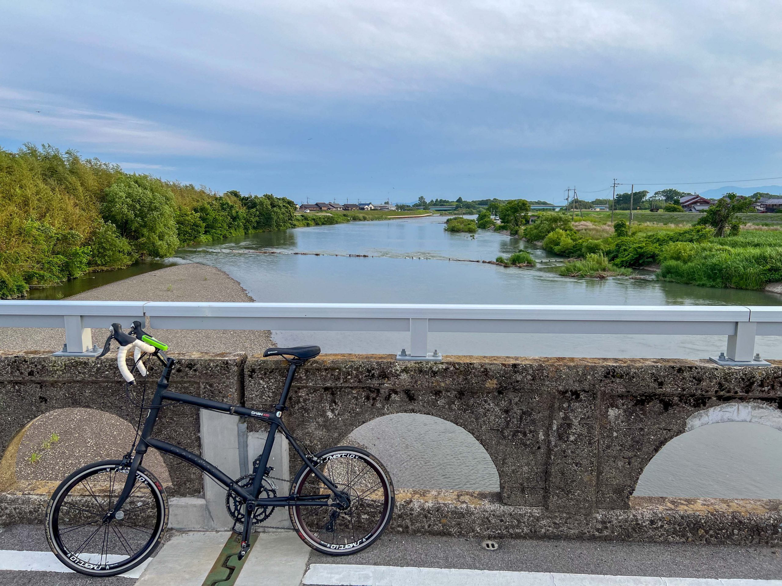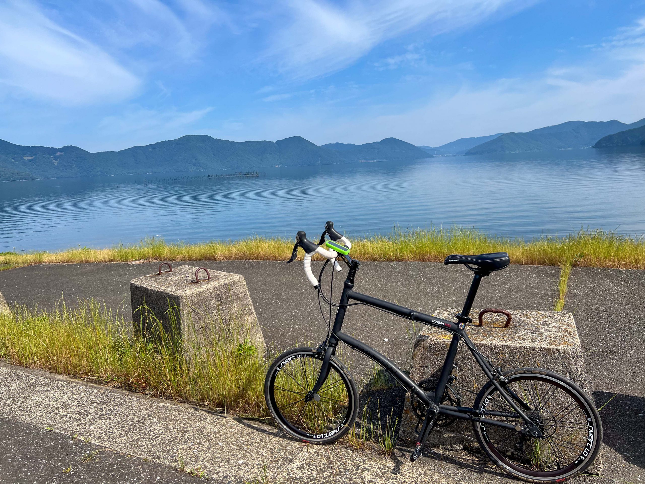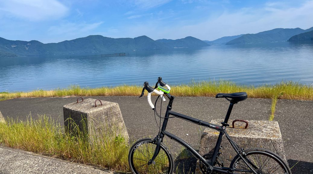 宿泊地の尾上温泉に向かう道すがら、琵琶湖畔長浜市南浜の姉川河畔で自転車を組み上げて、周辺を散策。