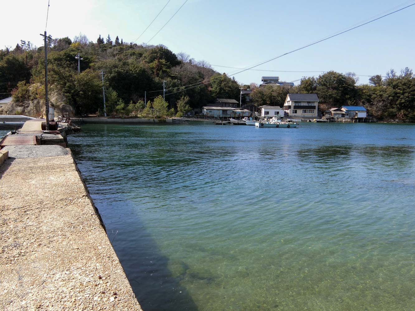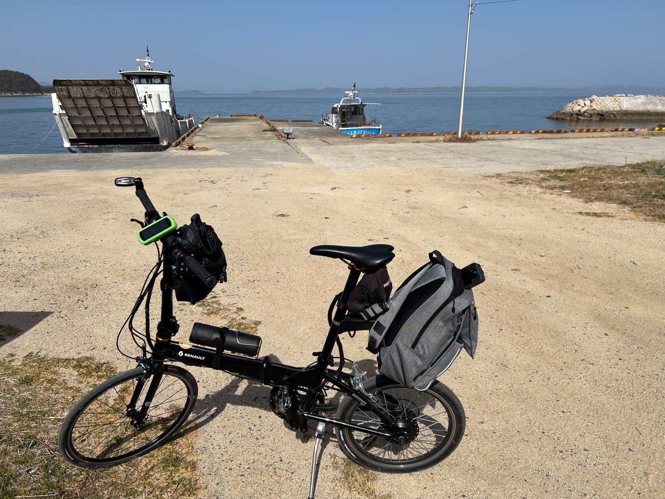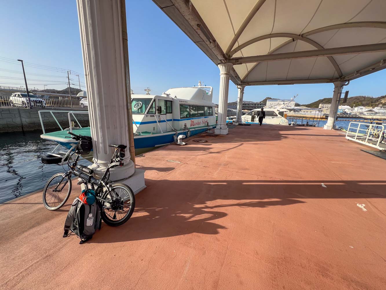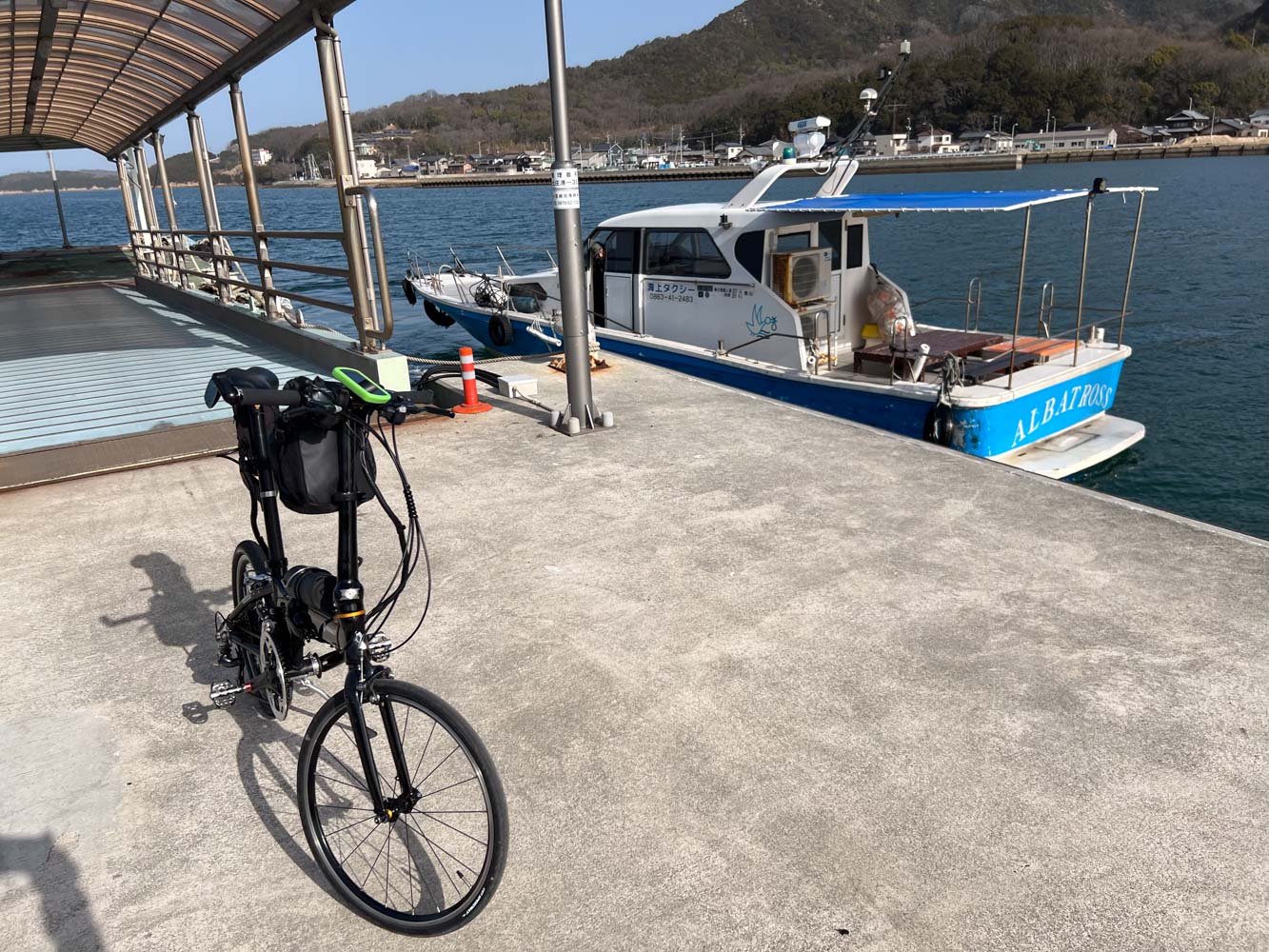 自転車を組み上げ、夕刻発送する荷物の準備を整えてから駐車場を離れ、08:40に川西マリンサービスの専用桟橋に到着。