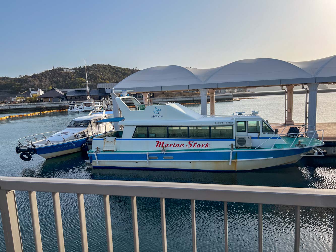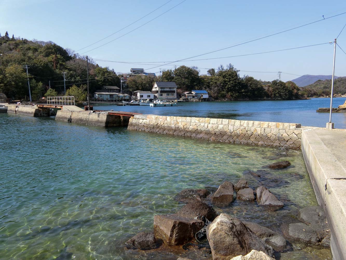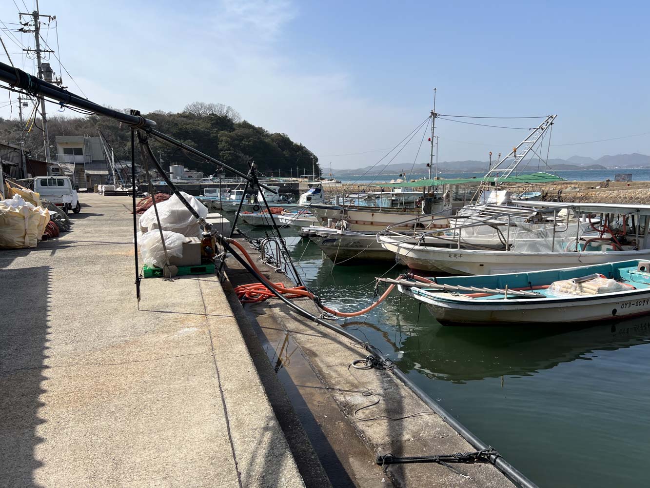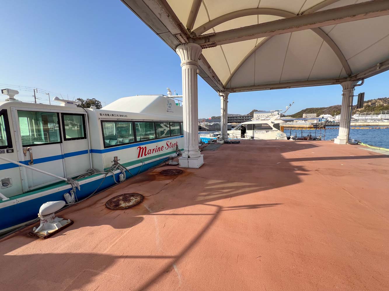 自転車を組み上げ、夕刻発送する荷物の準備を整えてから駐車場を離れ、08:40に川西マリンサービスの専用桟橋に到着。