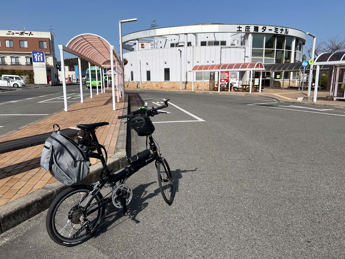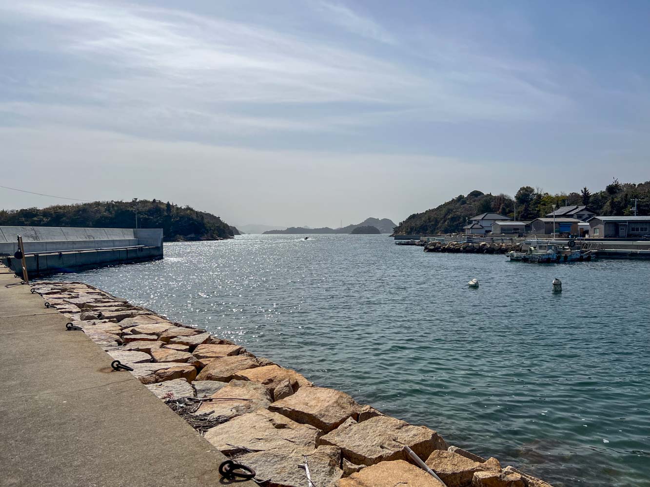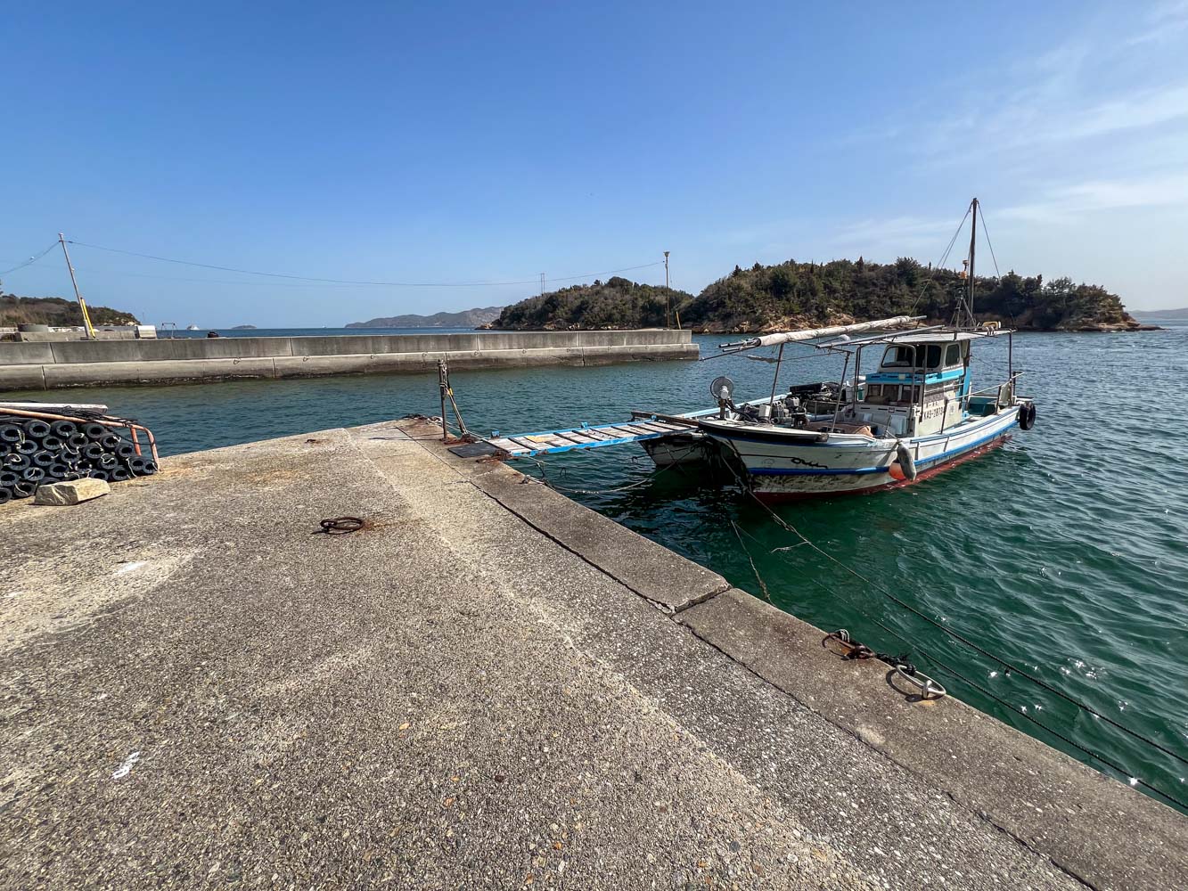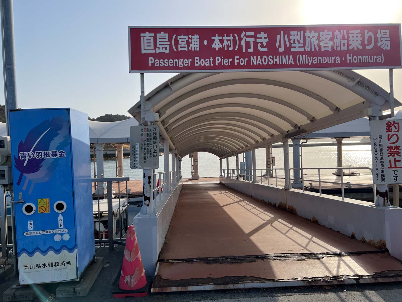 自転車を組み上げ、夕刻発送する荷物の準備を整えてから駐車場を離れ、08:40に川西マリンサービスの専用桟橋に到着。