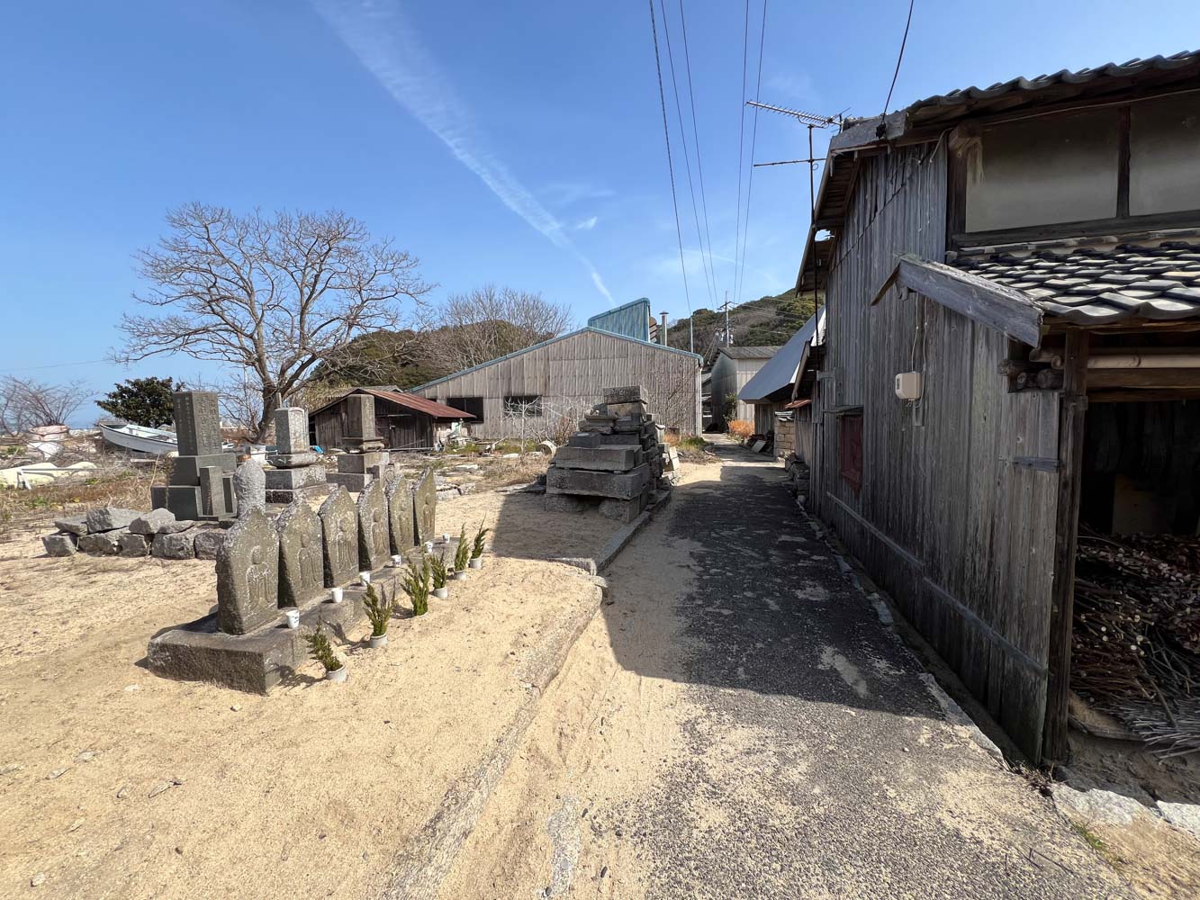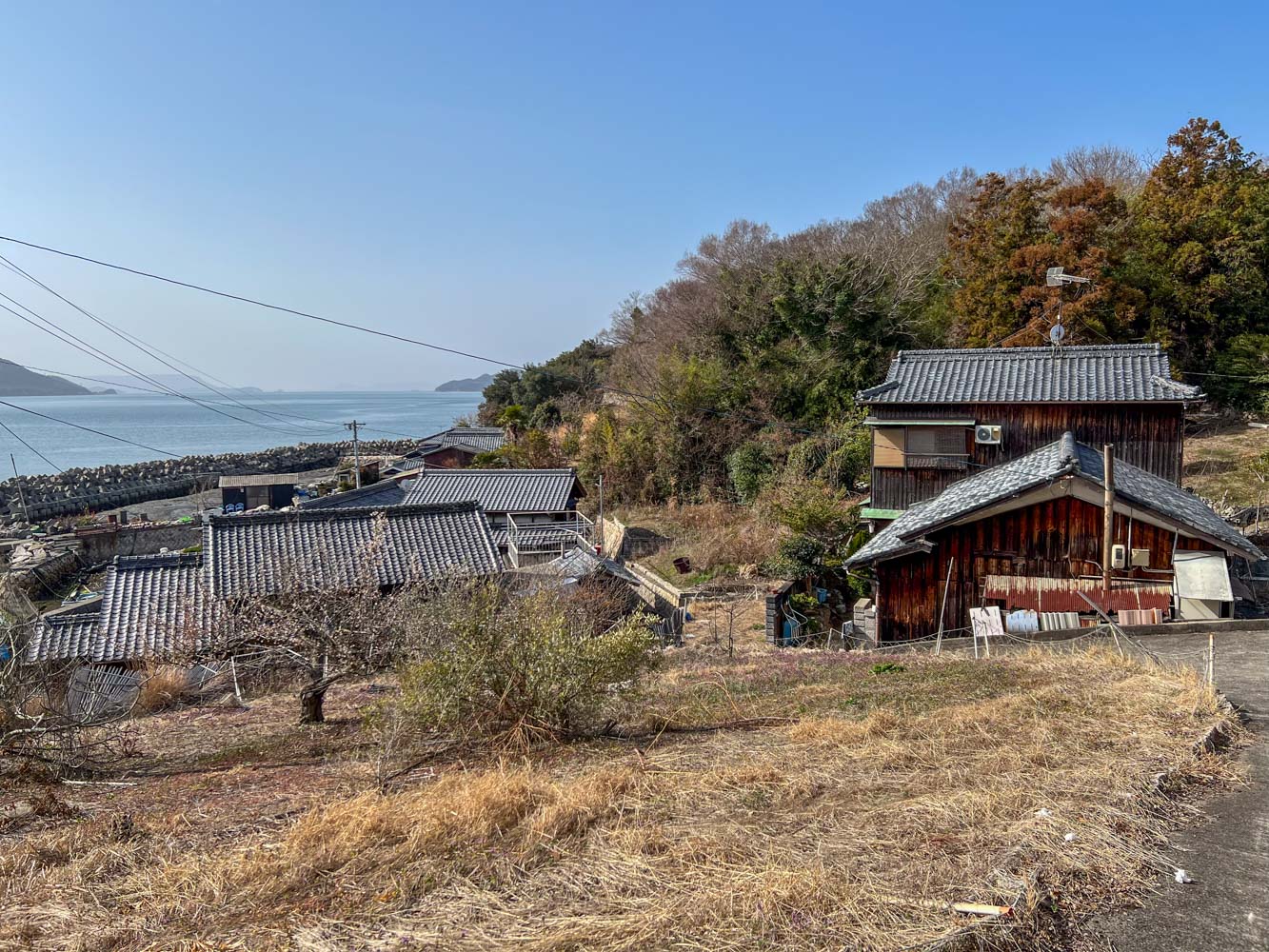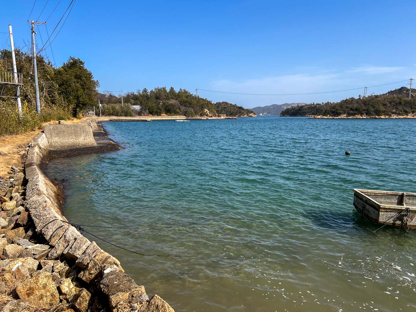 直島本村港の対岸にある島。その昔は、中学生たちは、直島との間の短い瀬戸を、手漕ぎ船をこいで通学したという。