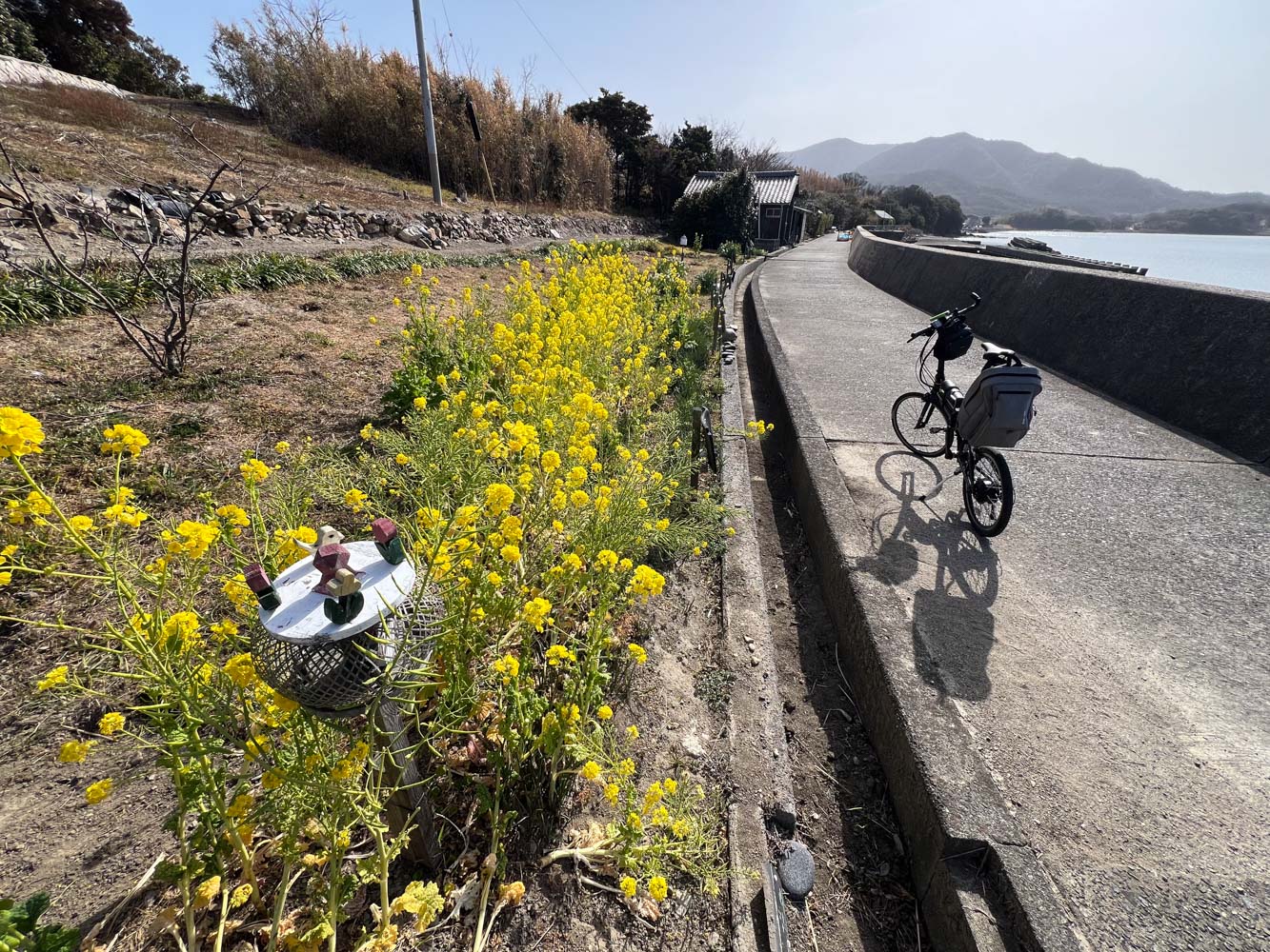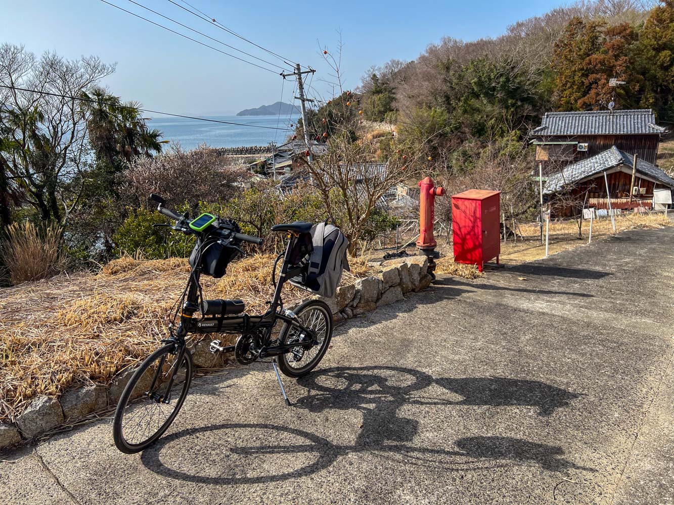 自転車で土庄港から小江港まで走る。