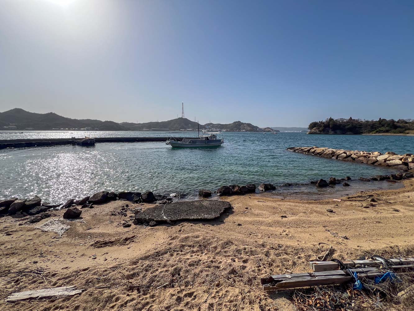 柏島の手前を航行中、直島の南東端に手つかずのビーチをみつけた。ビーチには灯篭が立っていた。不思議に思って帰宅後調べてみたら、以下の通り。