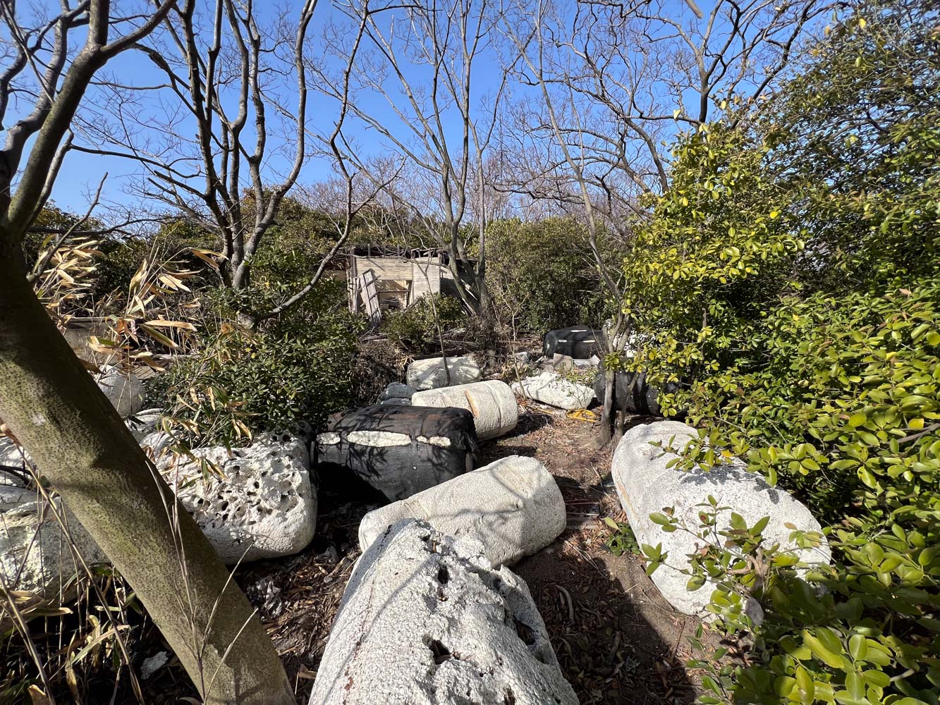【林の浜と灯つかずの石灯籠】