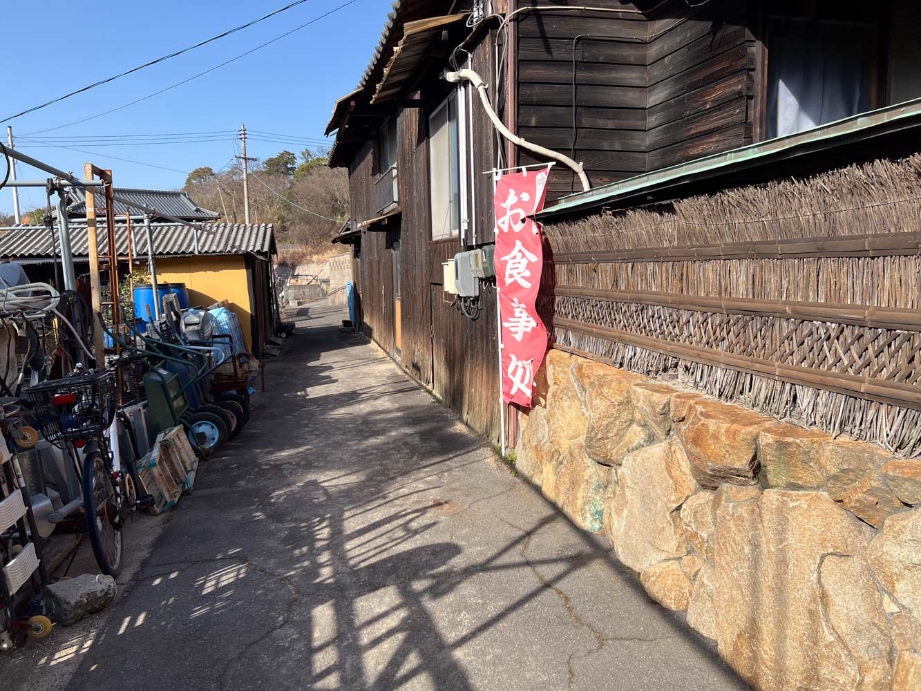 自分を島に残して、川西さんは13:00発の宇野ー石島の定期船運航へでかけた(アルバトロスで行きアルバトロスで帰ってきた)ため、滞在時間が長い。この間に喜兵衛島で昼食に手持ちのツイストドーナツを食べた。