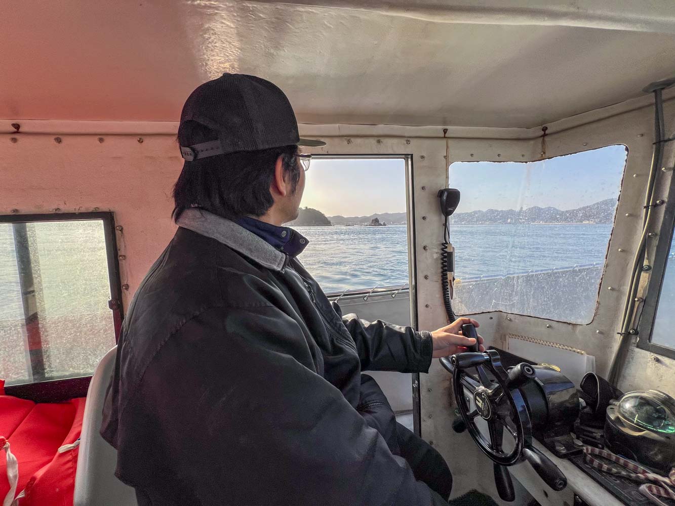 07:55にホテルを出発。この日は鵜の港からチャーター船で出発し、沖ノ島、小豊島、石島、その他の直島諸島をめぐる。