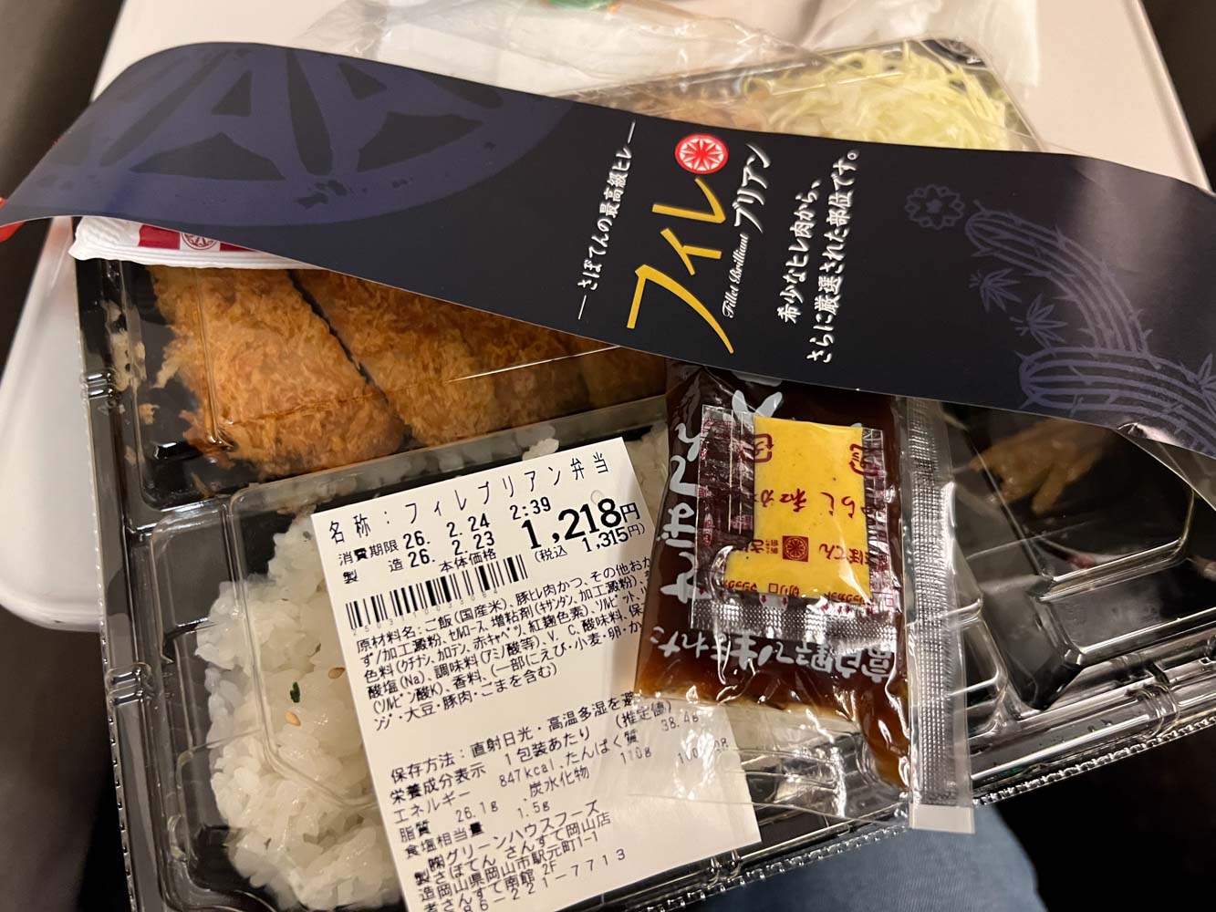 新幹線ホームへ向かいながら、さんすて岡山 南館2Fの「さぼてん」でとんかつ弁当を買う。