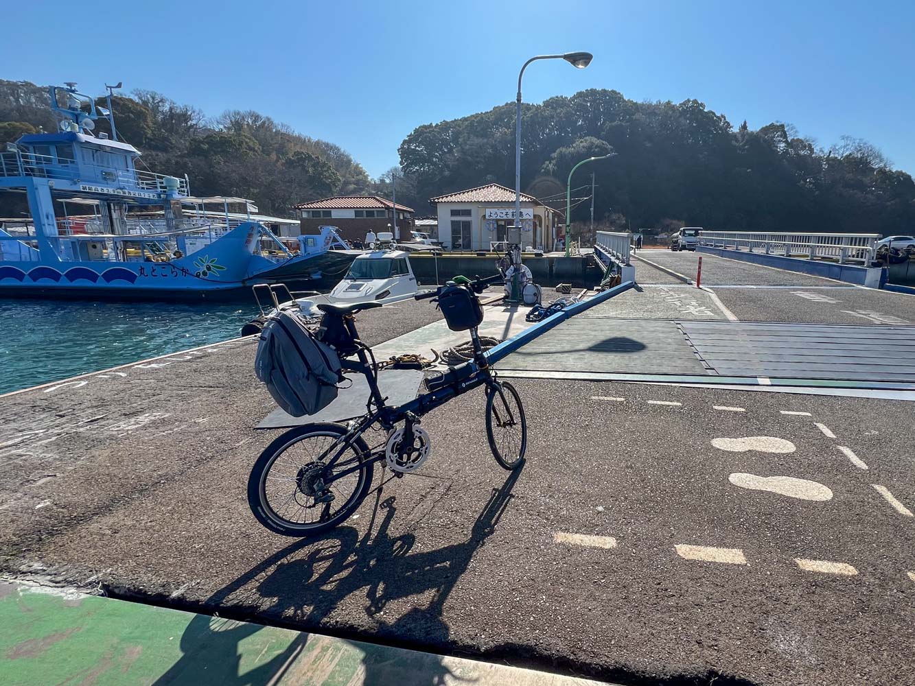 駐車場に車を停めて、港まで自転車で移動。