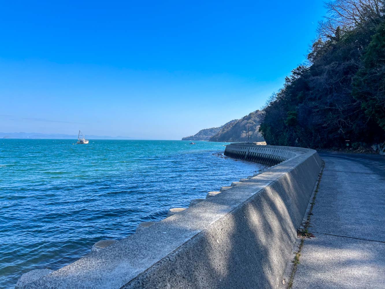 牛窓港からホテルリマーニ駐車場まで自転車で走る。