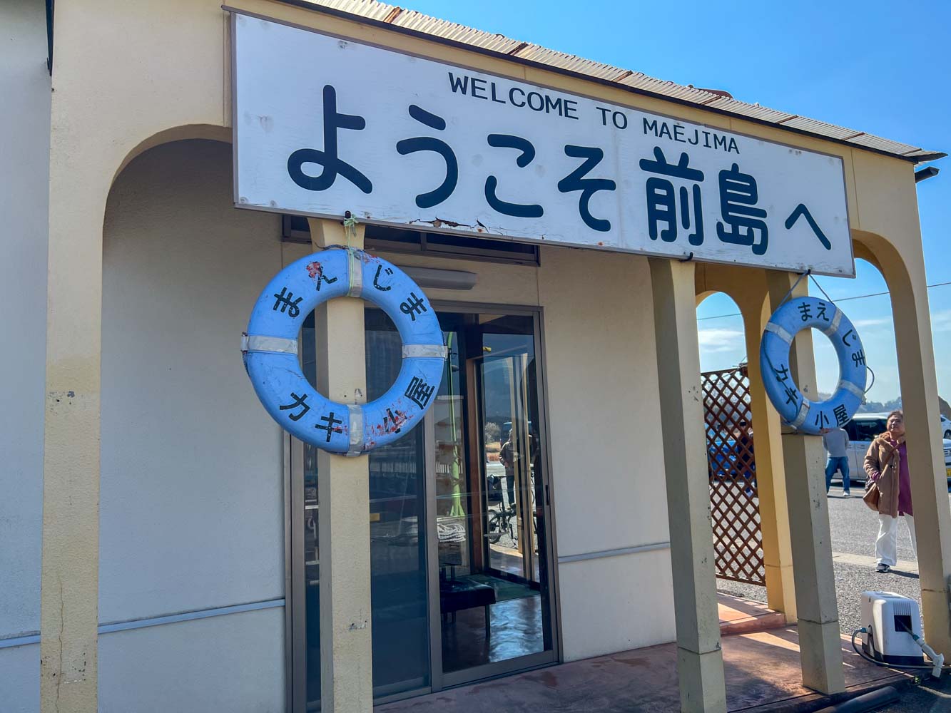 前島フェリーさんが牡蠣小屋営業中の週末で、自家用車やレンタルアシストバイクで島内ふらつく観光客多数。