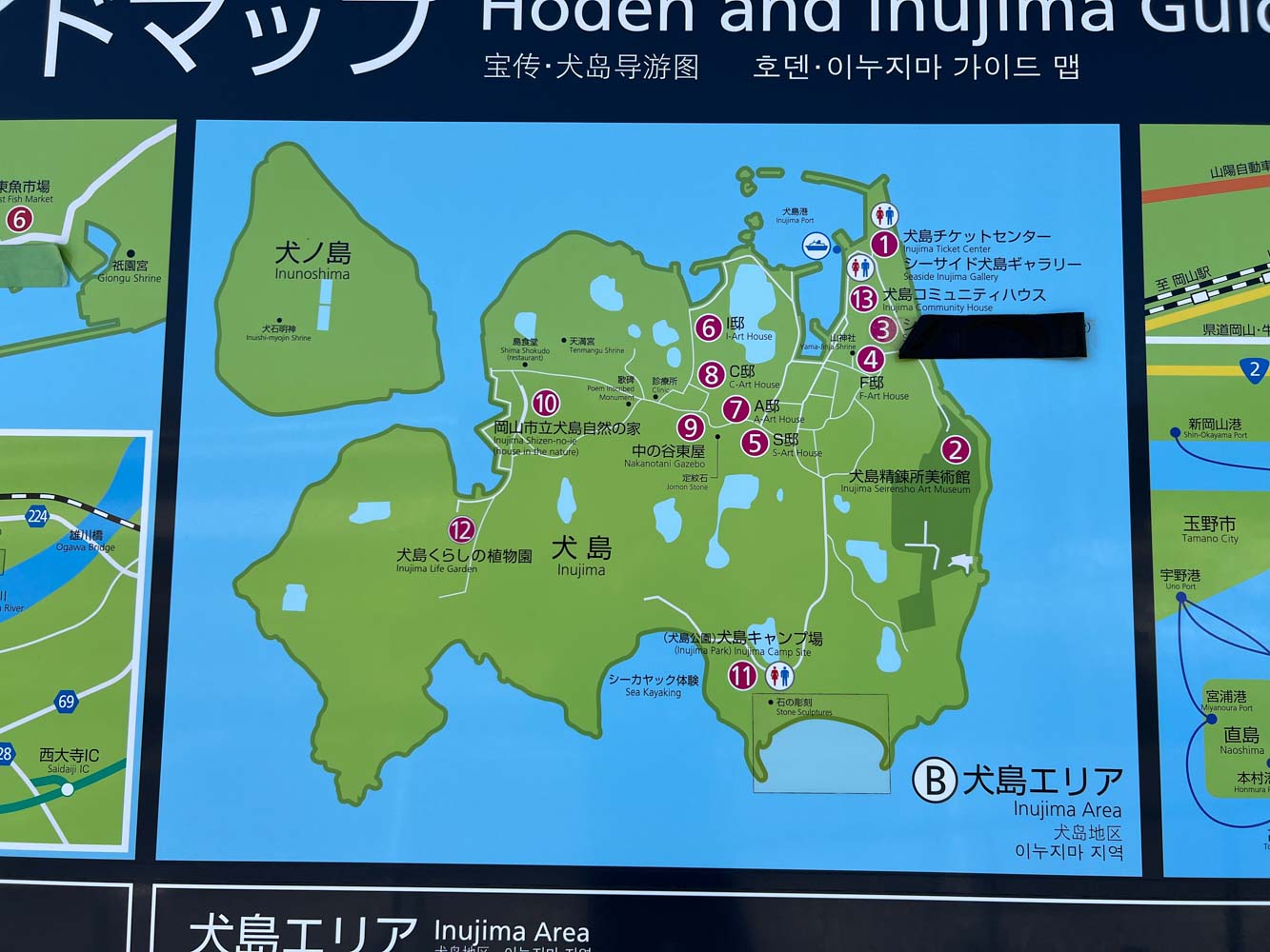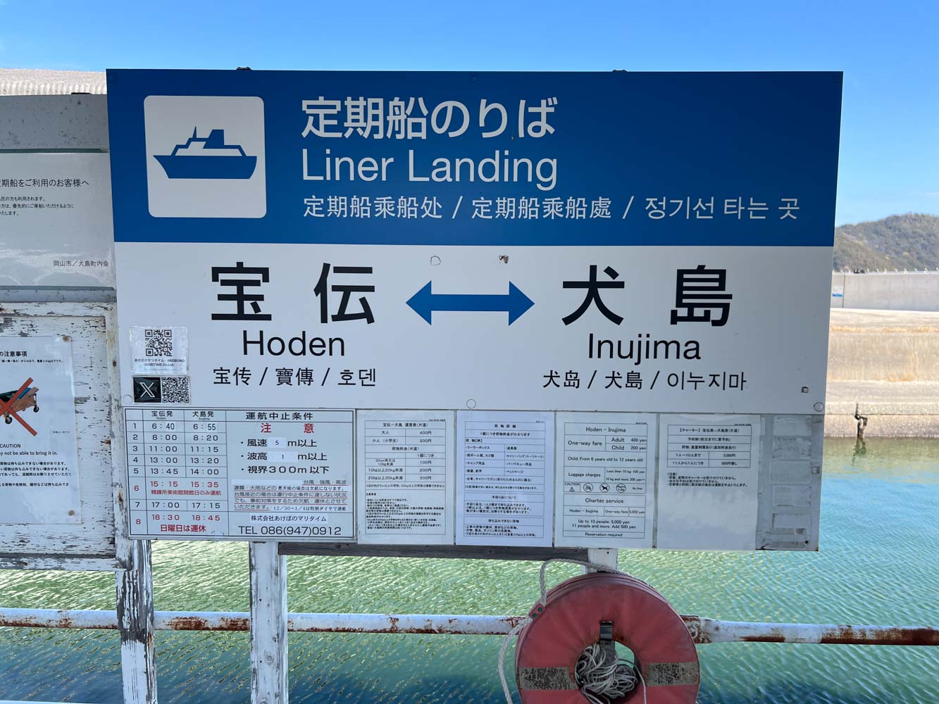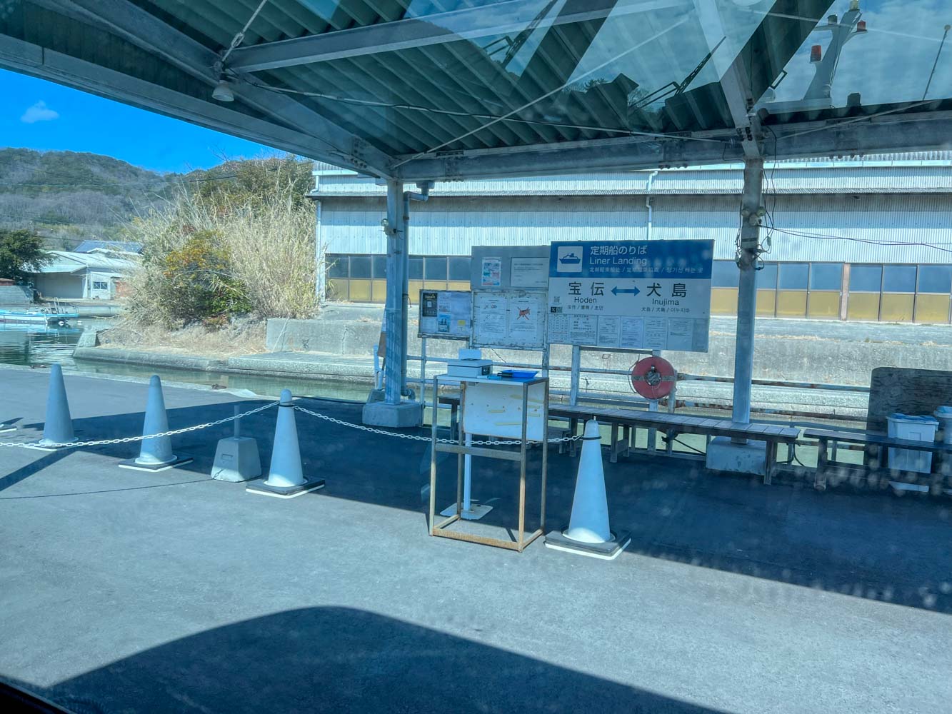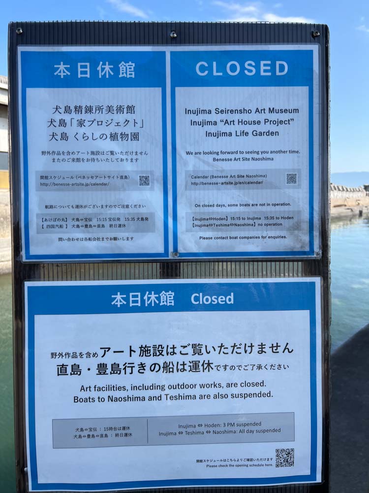 美術館休館のため、15時台の船の便がない、とのこと。14:00犬島発の船で宝伝にもどらないと、次の船は17:15となってしまう。