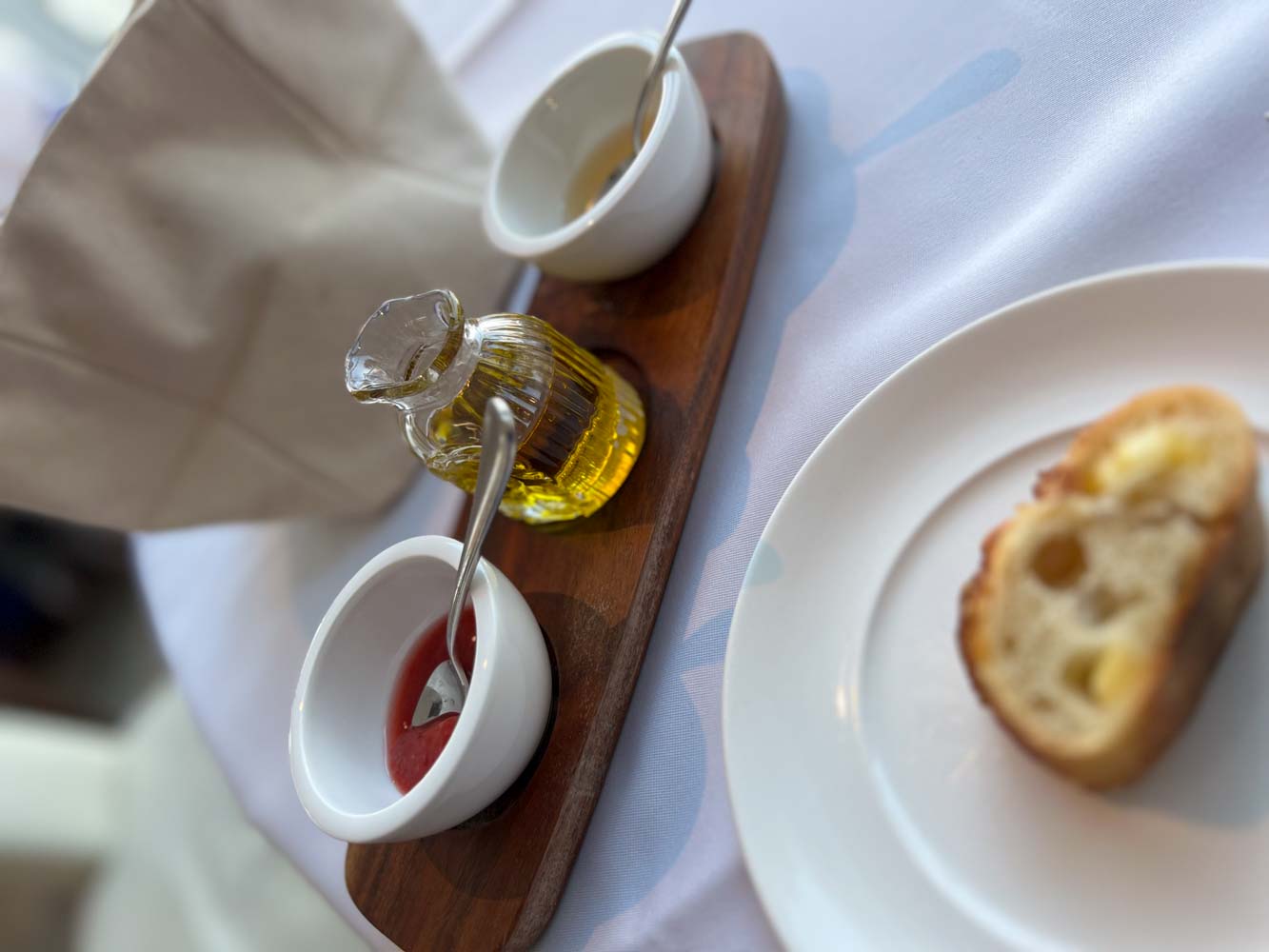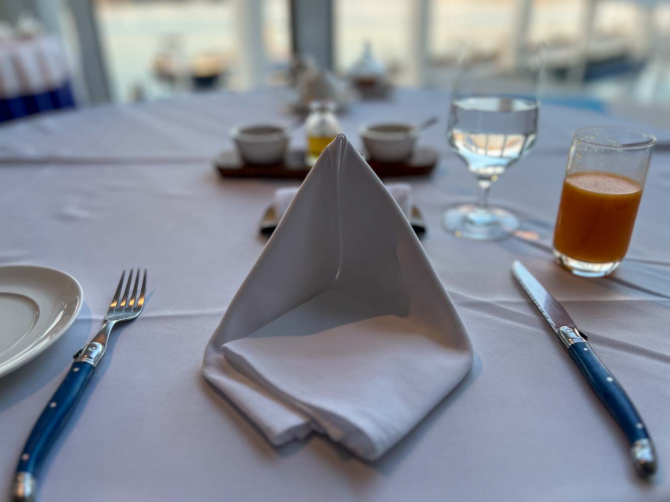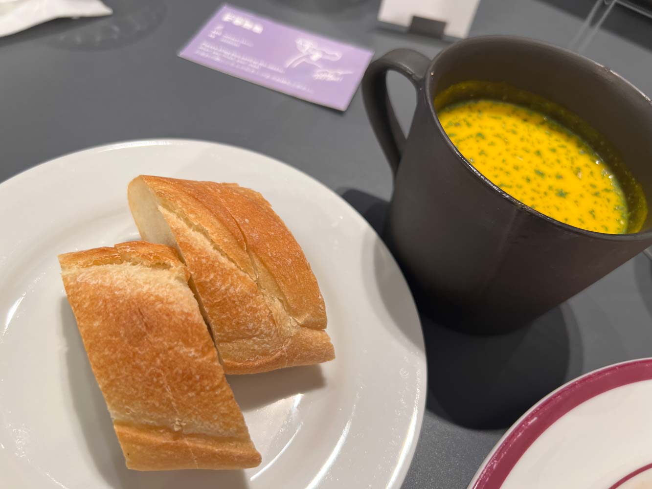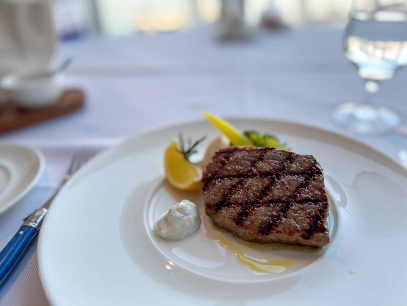レストランでの朝食はコンチネンタル、マッシュオムレツ、魚介と野菜のスープ、ステーキから選択でき、温かい手作りのパンが付く。朝からステーキをがっついた。